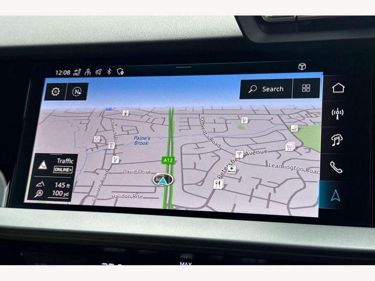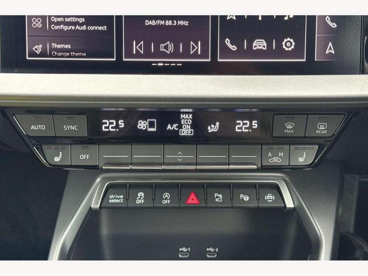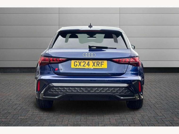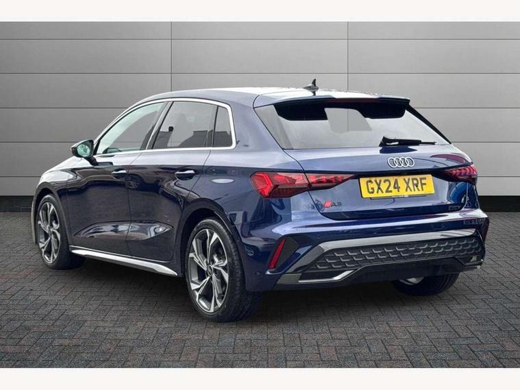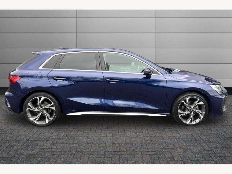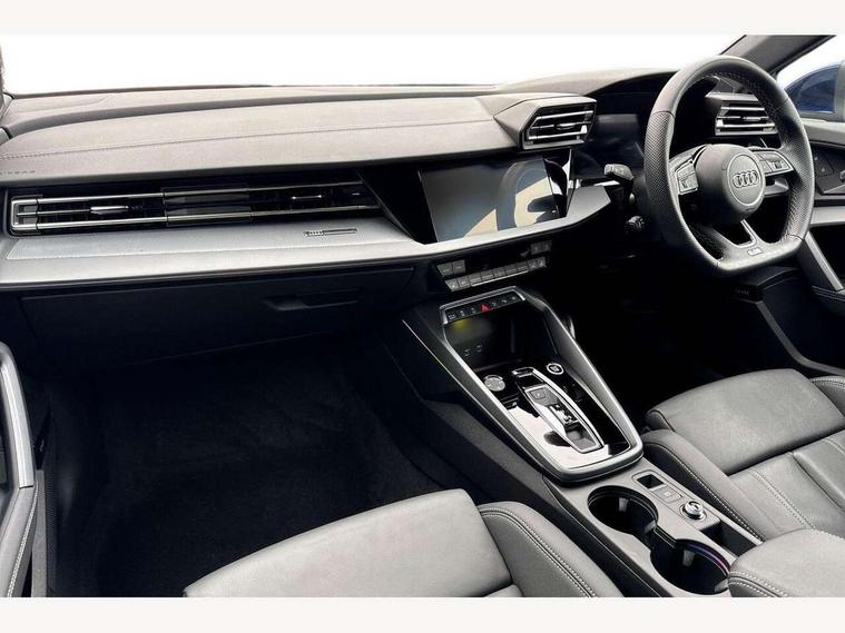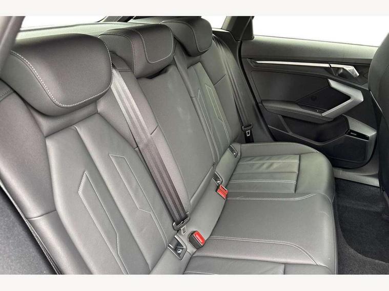 Adjustable speed limiter, Audi drive select, Audi smartphone interface with app store includes wireless Apple carplay, Android auto and Amazon alexa integration, Audi virtual cockpit plus - 12.3" full HD resolution dynamic digital instrument cluster, Automatic start/stop system with recuperation, Bluetooth interface, Camera based traffic sign recognition, Collision avoidance assistant, Cruise control, Distraction and Fatigue warning, e-Call (emergency call), Electromechanical power speed sensitive steering, Lane departure warning system, MMI Navigation Plus with high resolution 10.1" colour touch screen display, Park Assist with parking system Plus, Service indicator, Tailgate, Trip computer, Voice control system with natural language interaction, Sports suspension, Audi Phonebox light with wireless charging, Audi sound system - 10 loudspeakers including centre loudspeaker and subwoofer, DAB Digital radio, USB ports with charging function in the rear, Acoustic glass windscreen, Aluminium window trim, Auto dimming frameless rear view mirror, Body colour exterior mirrors, Chrome exhaust tailpipes, Electrically adjustable/heated/folding/auto dimming door mirrors with integrated LED indications + kerb view function for passenger side, Exterior model badging, Front and rear side air inlets in grained matt black with dark liquid chrome frame, Front electric windows, Front radiator grill in high gloss dark chrome, Heat insulating glass windscreen, Illuminated door sills with aluminium inserts at the front with S logo, LED 3rd brake light, LED daytime running lights, LED headlights with LED rear lights and dynamic rear indicators, Light and rain sensors, Privacy glass - dark tinted rear window, rear door and side windows, Rear diffuser and grill in grained matt black with inlay in dark liquid chrome, Rear electric windows, Rear side wing doors, Rear wiper, S line bumpers, S roof spoiler, Side S line emblems on front wings, Side sill trim in dark liquid chrome, 12V socket and storage compartment in front centre console, 3 seat bench in 2nd row, 3 spoke flat bottomed leather multifunction sport steering wheel with gear shift paddles, 3-zone deluxe automatic air conditioning, 4 way electrically adjustable lumbar support for driver and front passenger, 40/20/40 split folding rear seat bench, Black cloth headlining, Front and rear centre armrest in artificial leather, Front and rear headrests, Front/rear floor mats, Heated front seats, Height and reach adjustable steering wheel, Manual boot compartment lid, Manually adjustable front seats, Rear cup holders, S badging on the steering wheel, Seat side bolsters, Single front passenger seat, Stainless steel pedals and front footrest in black, Twin leather upholstery with front sports seats S embossed logo, Aluminium interior elements pack - A3 Sportback, Multi-coloured LED interior lighting package - A3, 3x3 point rear seat belts, Driver and front passenger airbag with passenger airbag deactivation, Electronic Stabilisation Control (ESC) including ABS, ASR and EDL, First aid kit with warning triangle and 2 safety vests, Front side airbags with head airbags and interaction airbag, Hill hold assist, Pre-sense front with pedestrian and cyclist detection, Seatbelt monitoring, Tyre pressure loss indicator, Anti theft alarm, Anti-theft wheel bolts, Electronically operated child locks, Immobiliser, Remote central locking with safelock, Dash & door Inlay in dark aluminium Spectrum,