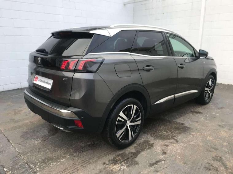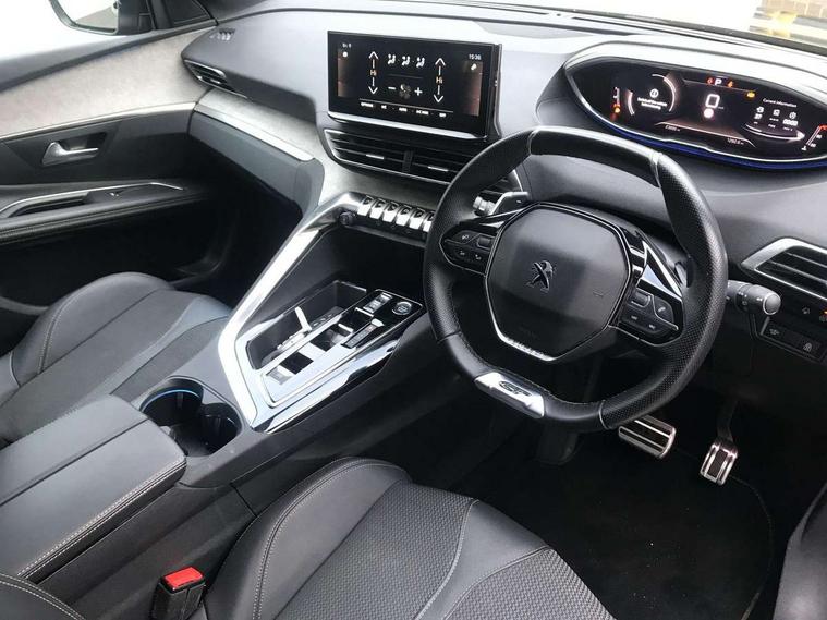3D connected navigation with 10" HD touchscreen + voice recognition system, Apple car play and Android auto, Blind spot detection system, Bluetooth telephone facility, Drive modes select (Eco, normal and sport), Driver Attention Alert level 3, Driving Time Warning (DAA1), Emergency services call system, Extended traffic sign recognition, Exterior temperature indicator with ice warning, Front and rear parking sensors, Lane departure warning system, Lane Keeping Assistance (LKA) with road edge detection, Mirror screen with mirror link, apple carplay and android auto, Multi function trip computer, Peugeot i-cockpit with compact multi-function sports steering wheel, PEUGEOT i-Cockpit with configurable 12.3" Head-up digital instrument panel, PEUGEOT SOS and assistance, Rear passenger USB charging sockets (x2) (type A), Speed limit recognition and recommendation, Dynamic stability control and electronic anti-skid system, Stop/start function, DAB Digital radio, USB socket, Auto self levelling headlights, Automatic hazard light activation upon heavy brake application, Automatic triggered rear windscreen wiper in reverse gear, Black with chrome detailed front wing trim, Body colour door handles, Body colour rear roof spoiler with stainless steel edging trim, Body protectors (bottom of front and rear bumpers + wheel arches + protection at bottom of doors) in black, Dark tinted rear side windows + tailgate window, Diamond Black door mirror shells, Door mirror mounted LED courtesy floor lighting, Electric folding door mirrors with exterior courtesy LED lighting, Electric operated/heated door mirrors, Fog Mode, Front windscreen wiper with magic wash cleaning system, Full LED headlights with LED fog lights with static cornering function, Gloss black B and C pillar and aerodynamic deflector trim, Gloss black front bumper air scoops, Gloss black rear cluster connecting strip, Gloss black windscreen trim, GT emblem in satin copper (front wings and tailgate), Headlights left on audible warning, Heated rear windscreen with integrated antenna, High beam assist, LED daytime running lights, LED front indicator, LED rear number plate lighting, LED side indicator lights integrated into door mirrors, LED third brake light, One touch electric front/rear windows with pinch protection, Rear LED Peugeot signature 'Claw Effect' lights with clear lens and scrolling LED direction indicators, Rear side wing doors, Twin exhaust tailpipe, 1/3 to 2/3 split folding rear seats, 12V Sockets in dashboard, rear cabin and load area, 2 cupholders in front centre console, 2 cupholders in rear armrest, 2 x Rear reading spotlights, 2x Rear coat hooks, 3x Isofix child seat fittings in the front passenger and outer rear seats, 4 Grab handles retractable and damped, Aikinite stitching in armrest, gear lever and dashboard facia, Aluminium pedals, Blue ambient lighting for connecting zone, Blue ambient lighting to front door panels, central storage and cupholders, Blue ambient lighting to headup instrument panel, Centre front armrest with butterfly wing opening and illuminated storage compartment, Driver seat manual adjustment (longitudinal and back rest angle), Dual zone automatic climate control, e-Toggle compact gear selector, Electric power steering with reach and rake adjustable steering column, Flocked front door pocket interior with blue ambient lighting, Flocked glovebox interior, Foldable front passenger seat with picnic table, Footwell illumination, Front interior light with 2 reading spotlights and rear interior light with timer, Front passenger seat manual adjustment (longitudinal and back rest angle), Front seat back map pockets, Gear shift indicator, Illuminated glovebox, Individual left and right controls in boot for seat folding, LED interior lighting in storage spaces and load area, LED roof interior lighting, Mistral floor mats with Aikinite contrast stitching, Mistral full grain perforated leather steering wheel with aikinite stitch detail and satin chrome 'GT' emblem, Rear bench seat with central armrest and ski hatch, Rear centre console ventilation system, Roof lining - Mistral black, Satin chrome dashboard trim, Satin chrome digital instrument panel and touchscreen trim, Satin chrome front door panel recess trim, Satin chrome interior door handles, Satin chrome scorpion's tail and toggle switch trim, Seatbelt not fastened audible and visual alert for front seats, Seatbelt unfastened on the move audible and visual alert for front and rear seats, Sunvisors with illuminated vanity mirrors, Two position boot floor, Drive assist plus pack - 3008, Visibility pack - 3008 GT, 3x Rear three-point retractable seatbelts with force limiters in the outer rear seats, ABS (Anti-lock Braking System) with EBD (Electronic Brakeforce Distribution) and EBA (Emergency Braking Assistance), Adaptive driver and front passenger airbags with passenger airbag deactivation function, Driver and front passenger side airbags, Electric child locking functionality on rear windows and doors, Electric parking brake, Front and rear curtain airbags, Front optimised safety headrests and 3 x rear retractable headrests with height adjustable, Front three point retractable seatbelts with pre tensioners and force limiters, Front ventilated disc brakes and rear disc brakes, Hill start assist, Two tone horn, Automatic door locking when moving off, Electronic immobiliser, key operated exterior door lock from the left hand door, Perimetric and volumetric alarm with lift and tilt sensor, Peugeot Open and Go System, Remote control central locking with two plip keys, Puncture repair kit including compressor, sealant cartridge and towing eye,