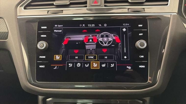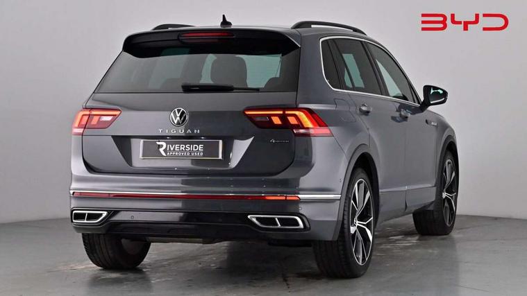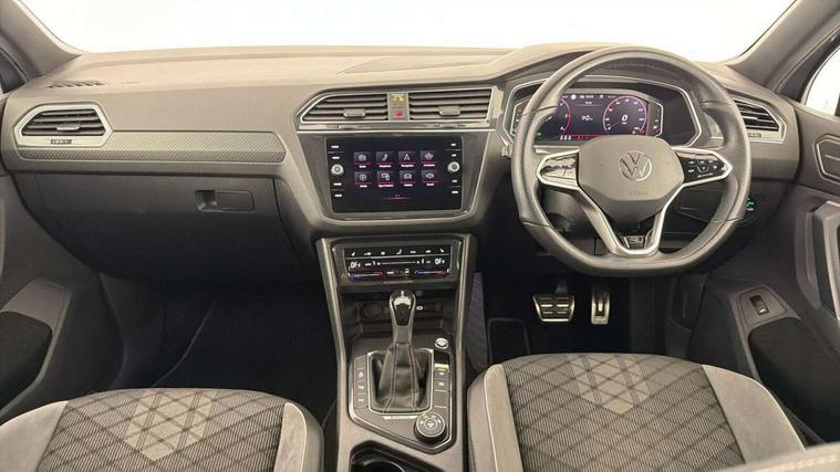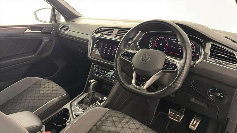 Adaptive cruise control ACC stop and go including speed limiter, App-Connect incl. App-Connect Wireless for Apple CarPlay and Android Auto, Bluetooth phone integration system, Digital Cockpit Pro - Active info display, Distance control assist, Driver alert system, Driver profile selection, Dynamic road sign display, eCall emergency call system, Electromechanical speed sensitive power steering, Engine start/stop button, Lane keeping system Lane Assist, Lights on warning, Multifunction front facing camera, Outside temperature display, Premium multifunction display with multi colour display, Remote control boot opening, Rev counter, Revision / skills operating concept travel assistant, Service interval indicator, Speed limit display, Start/stop system with regenerative braking, Trip computer, Warning sound and light for doors and tailgate open, All wheel drive - 4Motion, Battery regeneration during braking, Diesel particulate filter, Misfuel prevention device for diesel engine, Selective Catalytic Reduction, XDS electronic differential lock for improved traction and handling, 2 USB-C ports in the front, 1 USB-C charging socket on the center console in the rear, Diversity antenna for FM reception, Radio, SD card slot, Simultaneous pairing of 2 compatible mobile devices, SMS functionality - read, compose and send SMS messages using touch-screen display, Title and cover art display, Auto dimming interior rear view mirror, Automatic headlight control system, Black roof rails, Body colour door handles, Body coloured bumpers in R Line style, Body coloured door mirrors with integrated indicators, Chrome moldings on the side windows, Coming/leaving home lighting function, Dynamic headlight range control, Front and rear electric windows, Heated rear window, High level 3rd brake light, Laminated safety glass windshield, heat and sound insulating, LED rear number plate lights, License plate carrier in front and rear, Poor weather light and cornering light, Privacy glass for rear side windows and rear window, R Line body kit, R Line side sills, Rain sensor windscreen wipers, Rear exhaust tailpipe, Rear fog lamp, Rear side wing doors, Rear spoiler in R style, Rear windscreen washer and wiper with interval delay, Side and rear windows in heat insulating glass, Trailer Stability Programme, Unique R Line badging, Windscreen wipers/ intermittent wipe + 4 position delay, 12V outlet in center console rear and in luggage compartment, 12V outlet in front and tray, 2 cup holders in front, 2 LED front reading lights, 2 LED rear reading lights, 3 bench rear seats in 2nd row, 3 rear headrests, 4 load lashing points, 40:20:40 split folding rear seats, Air Care Climatronic 3 zone automatic climate control with enhanced air filter and controls in the rear, Backrest release for left front seat, Black headlining, Brushed stainless steel pedals and footrest, Carpet mats in front and rear with decorative stitching in Gray, Climate control unit rear with touch function, Door and side trim panel in foam film, insert in leatherette, Front centre armrest, Front footwell illumination, Front seats head restraints (x-adjustment), Height adjustable front seats, Height/reach adjust steering wheel, Instrument lighting white adjustable panel illumination, Interior light with delay, Isofix Preparation 2 Rear child seats, Leather gear knob, Lockable cooled glovebox, Luggage compartment lighting, Luggage net, Rear bench seat asymetrically split folding, longitudinally movable and folding with load-through hatch and center armrest, Remote unlocking for rear seat backrest, Removable luggage cover, Removable rear headrests, Safety optimised front head restraints, Single front passenger seat, Sliding/reclining rear seats, Standard rear seat release, Storage compartment in driver's door, Storage compartment in passenger's door, Storage compartment in rear doors, Storage compartments in luggage area left and right, Storage tray on dashboard, Sun visors with illuminated vanity mirrors, Top front comfort seats, Variable boot floor, height adjustable and removable, Ambience pack - Tiguan R Line, Driver assistance pack plus - Tiguan DSG, Park assist pack - Tiguan, 3 point seat belt for centre rear seats, 3 point seat belts with seat belt pretensioners for the outer rear seats, Active bonnet, Curtain airbags for front and rear passengers, Driver/Front Passenger airbags, Drivers knee airbag, Electronic parking brake with auto hold, Electronic Stability Control with driver steering recommendation, ABS, ASR, EDL, EDTC and trailer stabilization, Front assist with autonomous emergency braking (for Adaptive Cruise Control ACC up to 130 mph), Front disc brakes, Front passenger airbag deactivation, Front side airbags, Height adjustable front 3 point seatbelts + pretensioners, Hill hold control, Manual child proof rear door locks, Pedestrian monitoring system, Power assisted brakes, Proactive passenger protection system in combination with front assist, Rear disc brakes, Rigid safety cell with front and rear crumple zones, Two tone horn, Warning sound and light for front seat belts if unfastened, Anti theft alarm system with interior monitoring, backup horn and towing protection, Anti theft wheel bolts, Electronic engine immobiliser, 20" Misano black with diamond turned surface alloy wheels with Airstop tyres, Tool kit,