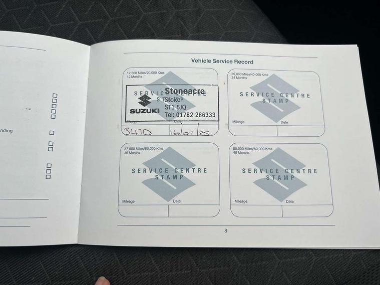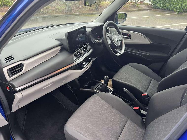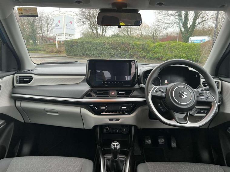 Adaptive cruise control, Automatic start/stop system, Blind spot monitoring, Colour LCD information display, Digital clock, Driver monitoring system, eCall, Fuel consumption display (average/instantaneous) and range display, Intelligent speed control support, Lane departure prevention, Lane departure warning system, Lane keeping assist (LKA), Low fuel level warning light, Navigation system, Outside temperature display, PAS, Rear cross traffic alert, Rear parking camera, Rear parking sensors, Remote fuel cap release, Smartphone integration with Apple CarPlay and Android auto, Suzuki connect, Tailgate, Traffic sign recognition, Weaving alert, 4 speakers + 2 tweeters, 9-inch infotainment display, Auxiliary input socket, Bluetooth audio streaming, DAB Digital radio, Steering wheel audio controls, USB Type A and C, 'Guide me home' headlamps, 1 speed with intermittent rear wiper + washer, 2 speeds front wiper with intermittent + washer, Automatic headlights, Black coloured A & B pillars, Black Upper and lower front grille, Body colour door mirrors and handles, C pillar trim moulding, Door mirrors with built-in turn signal lamp, Electric door mirrors, Electric folding door mirrors, Electric front windows, Electric rear windows, Green tinted glass, Heated door mirrors, High beam assist, LED daytime running lights, LED High mounted stop light, LED number plate light, LED position lamps, LED projector headlamps, LED rear combination lamp, Manual headlamp level control, Rain sensor, Rear fog lights, Rear privacy glass, Rear side wing doors, Rear spoiler, Side spoiler, 1 cup holder in rear, 12V Accessory socket in front console, 2 cup holders in front, 2 Isofix seat anchors, 3 bench rear seats in 2nd row, 3 rear head restraints, 3 spoke leather covered steering wheel, 60/40 split rear seats, Accessory socket, Automatic air conditioning, Centre console storage, Centre lower box, Child seat tether anchorages x 2, Chrome handbrake release button, Chrome interior door handles, Cloth upholstery, Door pockets with bottle holder, Driver/passenger sunvisors with ticket holders + vanity mirrors, Front cabin lights, Front headrests, Front map light, Front passenger side assist grip, Glovebox, Heated front seats, Heater, Height adjustable driver's seat, Luggage area lamp, Painted interior door trim ornament, Parcel shelf, Passenger seat back pocket, Pollen filter, Rear assist grips x2, Rear heater duct, Single front passenger seat, Tilt adjustable steering wheel, Tilt/telescopic adjustable steering wheel, 3 point ELR seatbelts for centre seat, 3 point ELR seatbelts front and rear, ABS+EBD+Brake assist, Curtain airbags, Driver airbag, Dual sensor brake support, ESP + traction control, Front and rear seatbelt reminder, Front passenger airbag, Front passenger airbag deactivation, Front seat seatbelts shoulder height adjuster, Front seatbelt pretensioners with force limiters, Hill hold control, Rear child proof door locks, Rear seatbelts with pre-tensioners and load limiters, Side airbags with incorporated into front seats, Tyre pressure indicator, Deadlocks, Freewheeling key cylinders, Immobiliser, Keyless entry and start, Light - on and Key in reminder, Locking wheel nuts, Remote central locking, Painted instrument panel ornament, 16" Polished alloy wheels, Emergency flat tyre repair kit,
