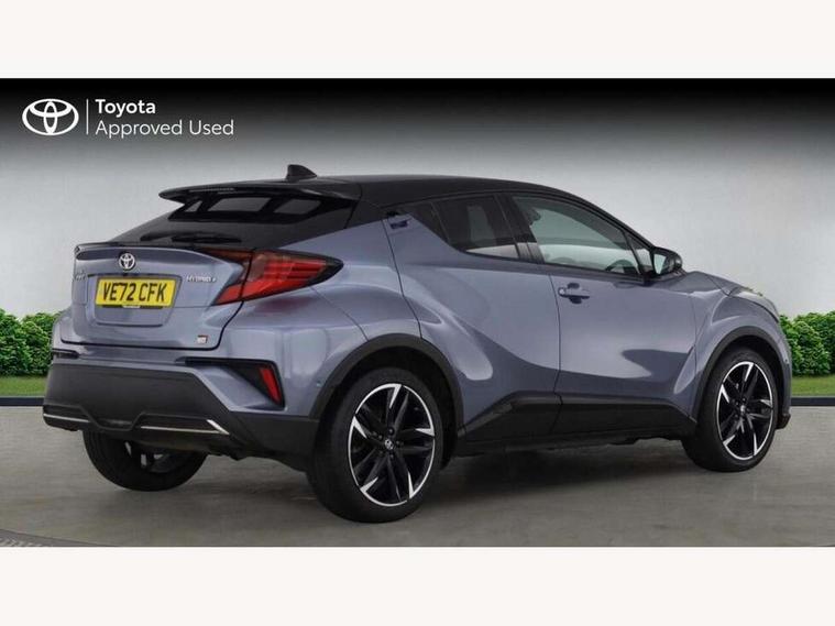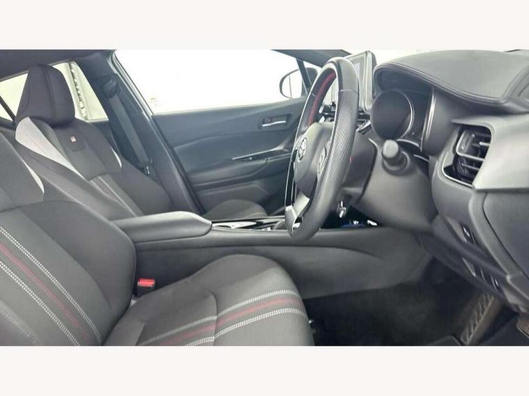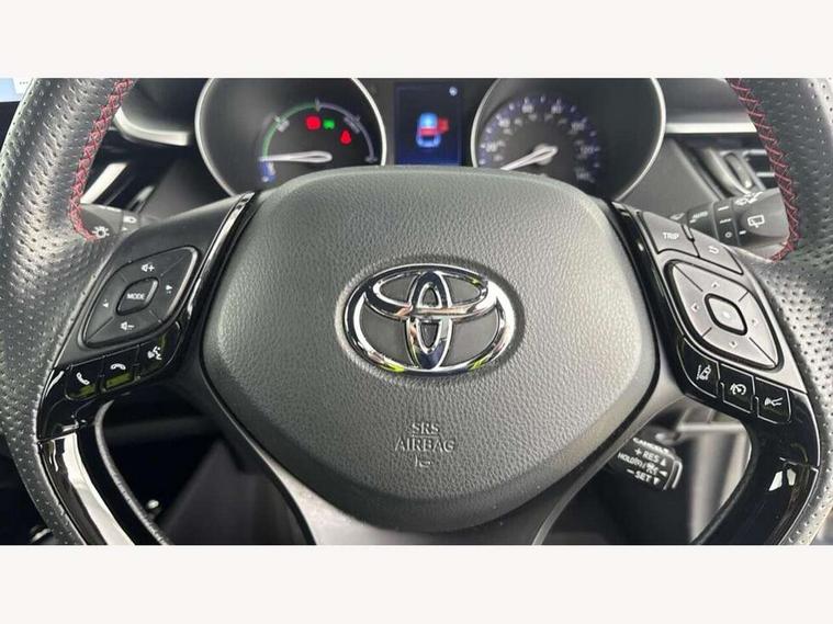 4.2" coloured TFT screen for multi-information display, Adaptive cruise control, Apple car play and Android auto, Bluetooth connectivity, E-call, Electric power steering, Hybrid system indicator, Lane departure alert with steering control, Lane trace assist, Push button tailgate release, Remote boot door release in cabin, Remote boot door release in key, Reversing camera, Road sign assist - RSA, Simple Intelligent parking assist, Smart voice assist, Touch 2 Go navigation system, Trip computer, Voice recognition, Wireless smartphone integration, Vehicle Stability Control (VSC), 6 speakers, AM/FM radio, DAB Radio (Digital Audio Broadcasting), Toyota touch 2 multimedia system with 8" display, USB connector, Wi-fi connectivity, Adaptive front light system, Adaptive LED Headlights, Anti-jam protection on power windows, Auto high beam, Auto up and down function on all power windows, Automatic headlight levelling, Automatic headlights, Automatic headlights cut-off, Black and body coloured rear bumper, Black upper front grille, Body colour door handles, Body colour door mirrors, Body coloured front bumper, Boot door release with push button, Chrome front lower bumper, Electric heated door mirrors, Follow me home headlights, Front and rear power windows, Front spoiler lip in black, Headlight cut off reminder, Honeycomb lower front grille, LED daytime running lights, LED fog lights, LED front light guide, LED High mounted stop light, LED rear brake lights, LED rear combination lights, Noise reduction layer on front windows and windscreen, Power adjustable door mirrors, Privacy glass, Rain sensor, Rear sequential indicators, Rear side wing doors, Rear spoiler, Rear tailgate, Rear window defogger, Rear window wiper, Shark fin antenna, UV-filter on driver and passenger windows, UV-filter on rear windows, Variable front intermittent wipers, 12v power outlet - front, 3 rear headrests, 3 seat bench in 2nd row, 3 spoke perforated leather steering wheel, 60/40 split folding rear seat, Adjustable rear headrests, Adjustable speed limiter switch on steering wheel, Assist grips front and centre pillar, Audio and telephone switches on steering wheel, Black front door assist grips, Blue ambient lighting on front cup holders, Blue ambient lighting on front doors, Boot light, Chrome interior door handles, Cloth upholstery, Driver and front passenger personal light, Driver and front passenger Whiplash Injury Lessening seats, Driver and passenger seatback pockets, Dual zone automatic air conditioning, Floor mats, Front cupholders, Front head restraints, Front sports seats, Glovebox with internal light, Hard tonneau cover, Heated driver and front passenger seats, Hooks for luggage holding net, Humidifying Nanoe air purifier, Illuminated entry system, Isofix attachments on outer rear seats, Leather gearshift, Light on driver sun visor, Light on passenger sun visor, Manual telescopic steering wheel, Manual tilt steering wheel, Manually height adjustable driver seat, Manually height adjustable front passenger seat, Manually reclining driver seat, Manually reclining front passenger seat, Manually sliding driver seat, Manually sliding front passenger seat, Microphone on front personal light, Mirror on driver sun visor, Mirror on passenger sun visor, Multimedia switches on steering wheel, Pollen filter, Power adjustable lumbar support on driver seat, Shopping bag hooks, Single front passenger seat, Slow opening on lower glovebox, Voice recognition switch on steering wheel, Tech with parking sensor pack - C-HR, 16 Disk front wheel brake, 3x3 point rear seatbelts, ABS+EBD+Brake assist, Electronic parking brake, Front and rear seatbelt reminder, Front passenger airbag on/off switch, Hill start assist control (HAC), Pre collision system with pedestrian detection, Pre-tensioners and force limiters, Rear door child safety locks, SRS Airbags - Driver + Front passenger, front side, front and rear curtain and driver's knee airbags, Toyota safety sense, Tyre pressure monitoring system, Tyre pressure warning system, Acoustic vehicle alert system (AVAS), Glass-breaking alarm sensors, Immobiliser, Intrusion alarm, Intrusion sensor, Motion sensor alarm, Power door locks, Power passenger window lock, Remote central locking, Black lower dashboard, Black upper dashboard, Piano black console, Silver deco line on upper dashboard, 19" Black machined alloy wheels, Tyre repair kit,