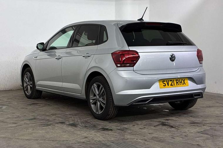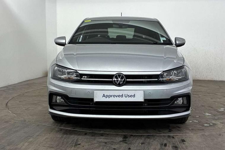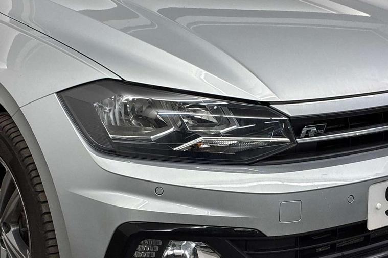 Digital clock, Driver alert system, Emergency call service, Lights on warning, Multifunction computer plus, Power assisted speed sensitive steering, Speedo and rev counter, electronic odometer, trip, service interval display and fuel gauge, Start/stop system, Volkswagen connect, Warning buzzer and light for front seatbelts unfastened, Wireless app connect, Battery regeneration during braking, Galvanished body, DAB digital audio broadcast, Diversity antenna for FM reception, Black grille with chrome surround, Body colour door handles, Body coloured side sills, Chrome trimmed strip on lower bumper, Electric front windows, Electrically foldable, adjustable and heated door mirrors with reverse activated kerb view adjustment on passenger's side, Front windscreen washers and wipers with 4 speed intermittent delay, Heated rear window with auto timer, High level 3rd brake light, LED darkened rear light clusters, LED daytime running lights, LED rear number plate lights, Left and right chrome effect trapezoid fascia exhaust tailpipe surrounds, Rear diffuser, Rear electric windows, Rear windscreen washer and wiper with interval delay, reverse activated, Unique R Line badging, 2 bag hooks in luggage compartment, 2 front cupholders and 12 V socket with cover, 3 rear head restraints, 60/40 split folding rear seat, Ambient lighting in front foorwell, front/rear door and dashboard light strips, Carbon flag cloth upholstery, Centre console storage with open storage compartment, Chrome-plated electric mirror adjustment switch surround, Chrome-plated electric window button surround, Driver and front passenger seat height adjustment, Driver and front passenger sunvisors with illuminated vanity mirrors, Dust/pollen filter, Folding rear seat backrest, Front + rear carpet mats, Front centre armrest with 2 x USB-C ports in front and 2 x USB-C ports in the rear, Front head restraints, Front seat backrest storage pockets, Front sport seats with lumbar adjustment and R line logo on seat backrest, Gear change selection via paddle shift on steering wheel, Gear lever gaiter in black trim surround, Glovebox, Handbrake grip button in chrome effect, Height/reach adjustable steering column, Instrument lighting, adjustable panel illumination, Interior light with delay, Isofix Preparation 2 Rear child seats, Leather gear knob and handbrake grip, LED interior lighting - 2 reading lights front and rear with interior delay and dimming function, Luggage compartment cover, removable, Luggage compartment lighting, Luggage compartment with variable load floor, Stainless steel pedals, Storage compartment in front doors, Storage compartment in rear doors, Storage compartment under front seats, Three spoke leather trimmed multifunction steering wheel with aluminium inserts and R Line Logo, Titanium black roof lining and sun visors, Unique R Line door sill protectors, Light and sight pack - Polo, R Line styling pack - Polo, 3 point height adj front seatbelts + pretensioners, 3x3 point rear seatbelts, ABS, Automatic post collision braking, Driver/front passenger airbag, Drivers and front passengers safety optimised head restraints, ESP with EDL + ASR, Front and rear passenger curtain airbags, Front passenger airbag deactivation, Front seat side impact airbags, Front/rear disc brakes, Hill hold control, Hydraulic Brake Assist (HBA), Single tone horn, Tyre pressure monitoring system, Alarm with interior protection and deactivation via infotainment system, Electronic engine immobiliser, Remote central locking with 2 remote folding keys, Chrome plated air vent surround, Chrome plated instrument surrounds, Shadow steel decorative inserts,