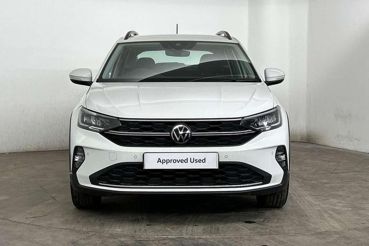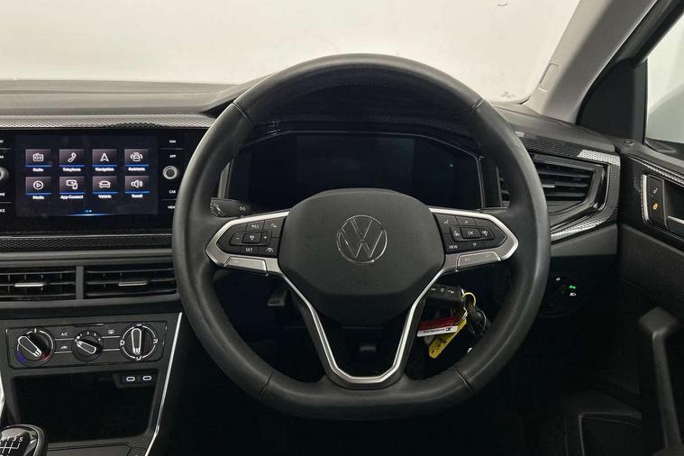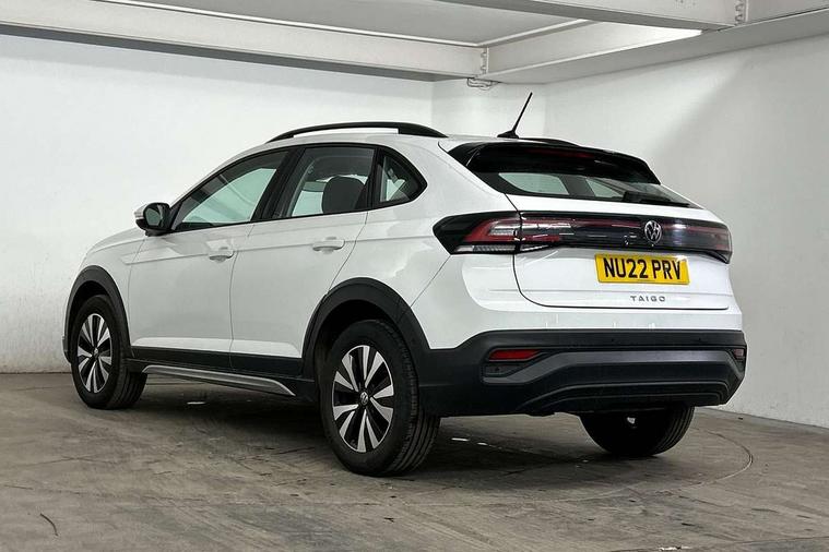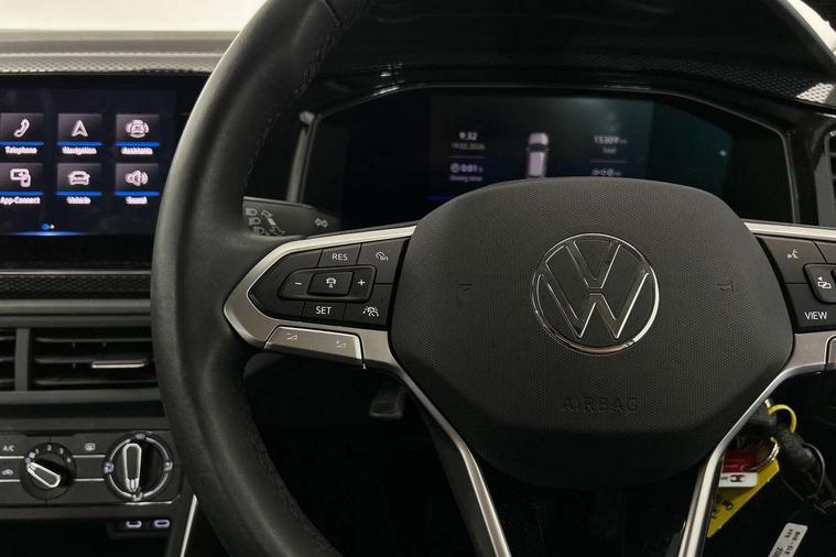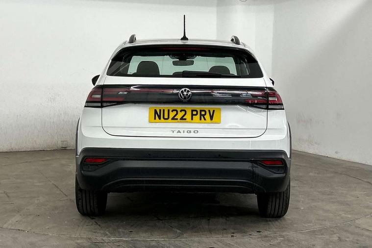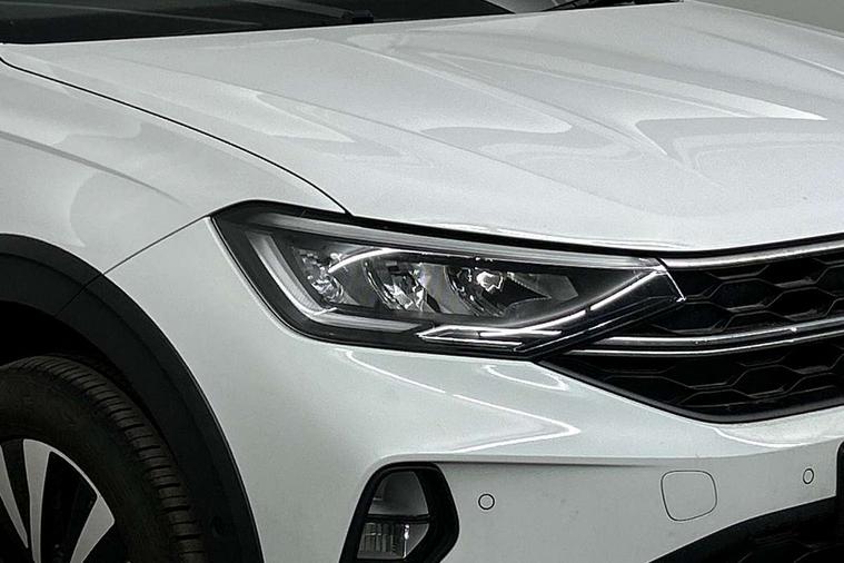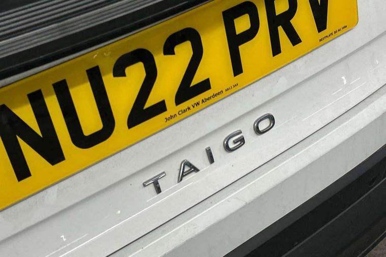 App-Connect including App-Connect Wireless, Driver alert system, e-Call (emergency call), Power Steering, Travel assist including emergency assist, Washer fluid level indicator, Wireless Charging including Bluetooth, Start-stop system with battery regeneration (recuperation - energy recovery during braking), Digital radio reception (DAB+), Diversity antenna for FM reception, WeConnect plus, Ambient lighting with logo projection, Aspherical driver's exterior mirror, Auto headlights, Body coloured bumpers, Body coloured exterior mirror housings and door handles, Electric windows, External USB type C socket and charging sockets, Front fog lamps with cornering function, Headlight range control, Heat insulating glass windscreen, LED headlamps, LED rear combination lamp, LED third brake light, Left convex exterior mirror, Power folding adjustable/heated exterior mirrors and front passenger exterior mirror lowering function, Rear fog light on one side, reversing light on both sides, Rear side wing doors, Rear wash/wipe with intermittent wipe setting, 'Slash/ Austin' Cloth upholstery, 12V socket in centre console, 2 front reading lights, 3 rear head restraints, 3 seat bench in 2nd row, Black carpets, Child seat anchor for child seat system i-Size, 2x top tether and child seat anchor in front on front passenger side, Door and side trim panels in titan black, Driver and front passenger seat height adjustment, Front centre armrest, Handbrake lever handle in leather, Height and reach adjustable steering wheel, Leather trimmed gear knob, Leather wrapped multifunction steering wheel, Luggage compartment floor, Luggage compartment light, Lumbar support for driver's and front passengers seat, Seat covers in titanium black, Single front passenger seat, Split folding backrest with centre armrest and unsplit rear seat bench, Storage compartment under front seats, Sun visors with illuminated vanity mirrors, Chrome Package - Taigo, Drivers assistance pack - Taigo, Light and Sight pack including High beam assist - Taigo, 2 x 3-point seatbelts/outer rear seats with ECE label, 3-point seat belts in front with pretensioner and height adjustment, 3-point seatbelt for centre rear seat, Driver and front passenger airbags with front passenger airbag de-activation, front side and curtain airbags, Driver and front passenger safety-optimised head restraints, Electronic stability control, Extended and predictive pedestrian/ cyclist protection, Front and rear disc brakes, Front curtain and side airbags with center airbag, Hill start assist, Manual rear child locks, Single tone horn, Tyre pressure loss indicator, Anti-theft alarm system with interior monitoring, backup horn, and towing protection, Anti-theft wheel bolts, Lava stone black gloss/matt decorative inserts in dash and front door panels, Low rolling resistance tyres,