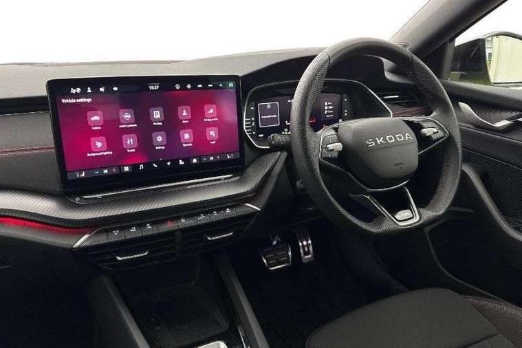 1x USB Typc C port in rear view mirror, 4x USB Type C ports - 2x in front centre console and 2x in rear (45W), Drive mode selection, Driver fatigue sensor, eCall emergency system, Electrically operated boot with virtual pedal, Front assist system, Progressive dynamic steering, Traffic sign recognition, Turn Assist, Virtual Cockpit - 10.25" digital display, Voice control system, Wireless charging (15W) with cooling function, Wireless SmartLink for Apple CarPlay and Android Auto, Electronically controlled limited slip differential, vRS suspension, 13" touchscreen display with navigation, DAB Digital radio, Aero front windscreen wipers with intermittent function, Auto dimming rear view mirror, Black sport exhaust pipes, Body colour bumpers, Body colour door handles, Electric front and rear windows, Exterior gloss black sports styling including front grille, window surrounds, door mirrors and badging, Gloss black diffuser, Gloss black spoiler, Heated rear windscreen, High beam control, High level third brake light, Ice scraper in fuel cap, LED daytime running lights, Logo projection in front doors, Rain and light sensors, Rear fog light on one side, Rear privacy glass, Rear side wing doors, Unique vRS bumpers and exterior styling, 12 volt socket in boot, 3 rear headrests, 3 seat bench in 2nd row, 4 foldable roof handles, Aluminium pedals, Front head restraints, Front sport seats, Heated front seats, Illuminated glovebox, Interior door handles in dark chrome, Jumbo Box storage, Luggage compartment lighting x2 lights, Mechanical rear seat release from boot, Parcel shelf - folding, Single front passenger seat, Steering wheel in black leather with black stitching, Storage compartments in left and right of boot, Sun visors with mirrors, Sunglasses storage, Ticket holder, Umbrella in door panel, Unsplit rear bench seat, split folding backrest with centre armrest with cupholder, Waste bin in door panel, Comfort package - Octavia, Family package - Octavia, Light and view package plus - Octavia, vRS Design Selection pack - Octavia, 3x3 point rear seat belts, Alarm with interior monitoring, tilt sensor and back up horn, Curtain airbags and front side airbags, Driver and front passenger airbags, Drivers knee airbag, Electronic parking brake, ESC including ABS, EBV, MSR, ASR, EDS, HBA, DSR, Front central airbag, Hill hold assist, ISOFIX on front passenger seat and outer rear seats, Passenger airbag deactivate switch, Red brake calipers, Three point seat belts in front and rear, Two tone horn, Tyre pressure monitor, Visual and acoustic seat belt reminder, Warning reflectors in front door, Anti-theft wheel bolts, Keyless start/stop, Remote central locking, Gloss black air vent surrounds, 19" Elias anthracite alloy wheels,