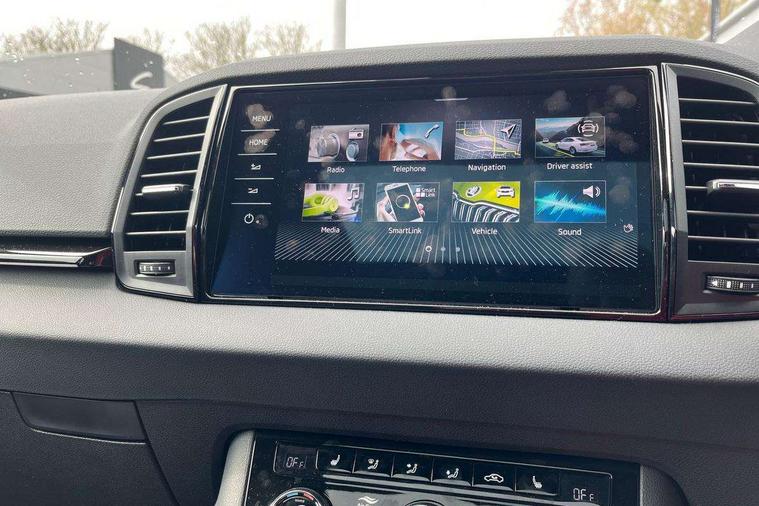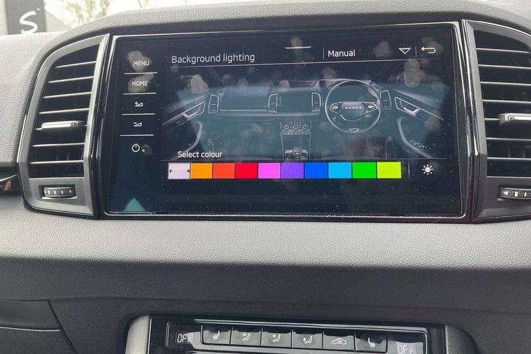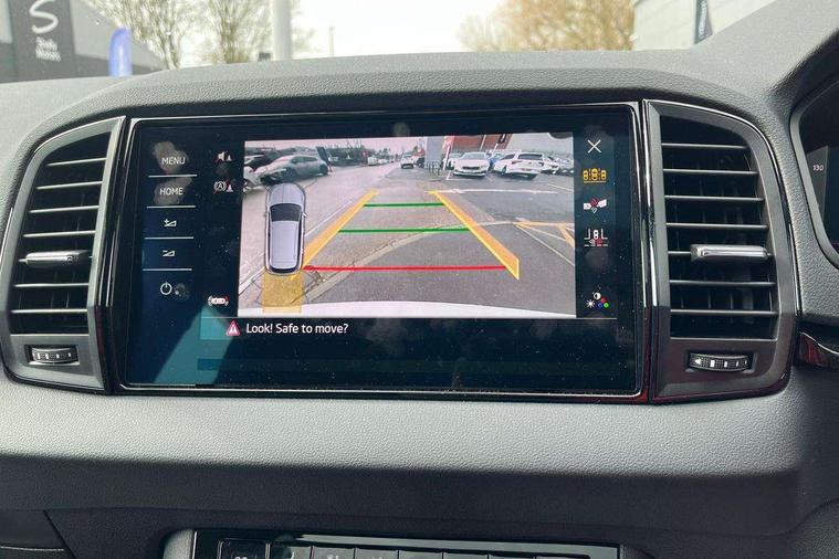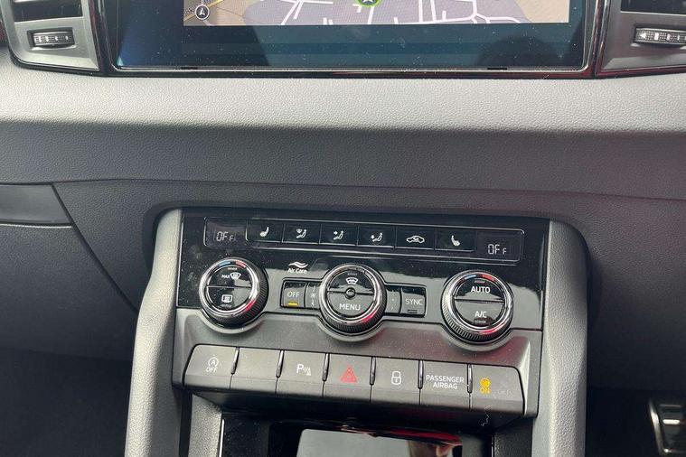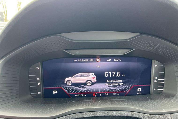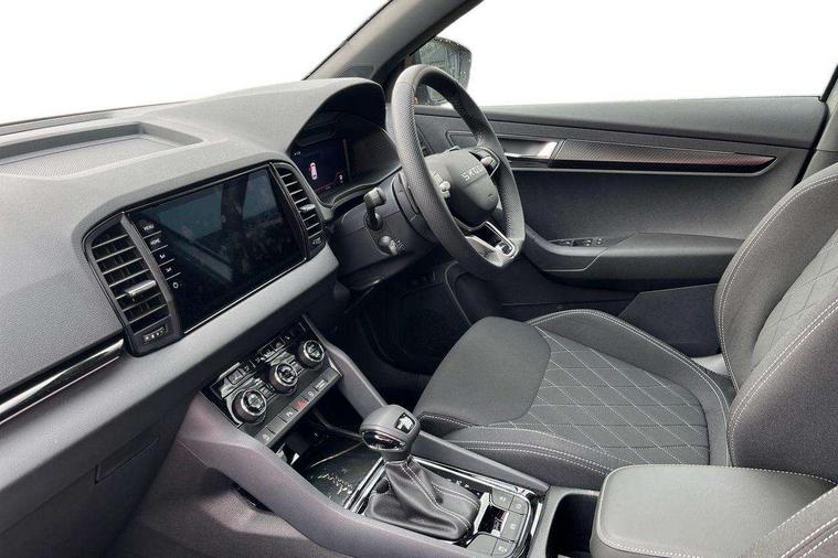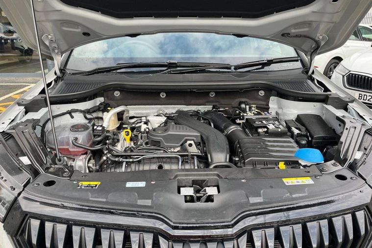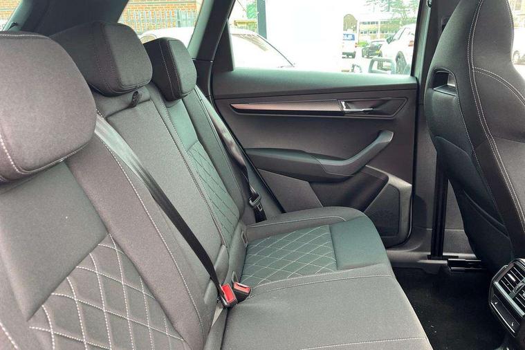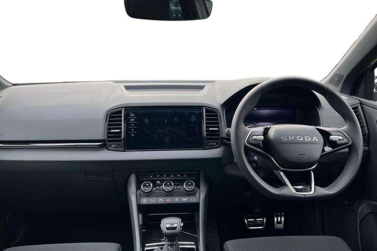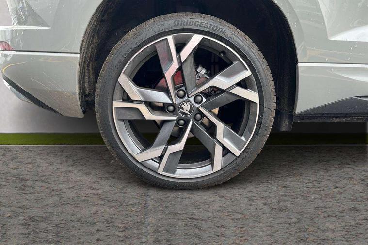 Advanced driver attention and drowsiness monitor, Emergency services call system, Outside temperature gauge, Sensor for driver assistance systems, Service interval indicator, SmartLink wireless for Apple and wired for Android, Start/stop system with regenerative braking, Traffic sign recognition, USB C Port x 2 in front centre console, Virtual Cockpit - 10.25" digital display, Virtual pedal with electrically operated boot door, Wireless smartphone charging, DAB radio with Bluetooth, USB connection, Acoustic glass, Aero front windscreen wipers with intermittent function, Auto dimming rear view mirror with light and rain sensors, Black door mirrors, Black electric window control buttons, Black radiator grille, Black roof rails, Body colour door handles, Electric front and rear windows with child proof lock, Extended rear roof spoiler, Front door steps with SportLine logo, Heated rear windscreen, LED daytime running lights, LED rear lights with high functionality welcome effect and dynamic indicators, Light assistant (coming/leaving home/tunnel light), Panoramic sliding sunroof, Plastic scuff plates in door apertures, Privacy glass, Protective door side sills in body colour, Rear diffuser, Rear side wing doors, Rear window wiper with washer system and intermittent control, Safety reflectors on front doors, Skoda lettering on tailgate in black, Sportline badge on front fender, Sports front and rear bumpers, Third brake light, Unique dark chrome design logo on alloy wheels, 1.5 litre bottle holders in driver and front passenger door panels, 12V socket in boot, 12v socket in front centre armrest with storage compartment and rear air vents, 2 x Tablet holder, 3 rear height adjustable headrests, 3 seat bench in 2nd row, 3 spoke sports leather heated multifunction steering wheel with DSG paddles, 4 foldable roof handles with rear coat hooks, Black floor carpet, Cargo elements in boot, Chrome inner door handles, Foldable hooks in the boot, Front head restraints, Height adjustable front three point seats belts with tensioners, Height/reach adjust steering wheel, Ice scraper, Illuminated glovebox, Illuminated luggage compartment, Isofix child seat preparation for front passenger seat, Isofix child seat preparation outer rear, Manual lumbar support for front seats, Pen holder, Pollen filter, Rear backrest release from boot, Rear boot cover, Rear package tray, Rear reading lights, Rear seats fixed folding and divided 60:40, Rubbish bin door, Safety vest holder, Single front passenger seat, Skoda lettering on steering wheel, Sportline decorative inserts, Storage box in upper central dashboard closed, Sunvisors with illuminated vanity mirrors, Textile floor mats, Ticket holder, Titan black interior ceiling, Umbrella under passenger seat, Under passenger seat storage compartment, Columbus pack - Karoq, LED Interior lighting pack with Skoda welcome logo - Karoq, Light Pack - Karoq, Non Smokers pack, Performance pack - Karoq, Winter plus pack with heated front and rear seats - Karoq, Automatic door unlocking in case of crash, Automatic fuel cut off in case of crash, Driver airbag, Electronic parking brake with auto hold function, Emergency rear braking signal, ESC (incl. ABS+MSR+ASR+EDS+HBA+DSR+RBS+MKB), Front side airbags, Head airbags, Hill hold control, Knee airbags, Passenger airbag with switch-off function, Pedestrian monitor, Power operated child safety locks, Seatbelt reminder signalisation and pretensioner for all seats, Three point seatbelts rear, Two tone horn, Tyre pressure monitor, Alarm with interior monitoring, back up horn and tilt sensor with safe function, Electronic engine immobiliser, Keyless entry and start/stop, Remote central locking with 2 remote folding keys, Black air vent surround, Black centre console, carbon door decor, Satin black dashboard, Satin black door trim, 19" Sagittarius anthracite alloy wheels, Anti-theft wheel bolts protection, Breakdown and tool kit,