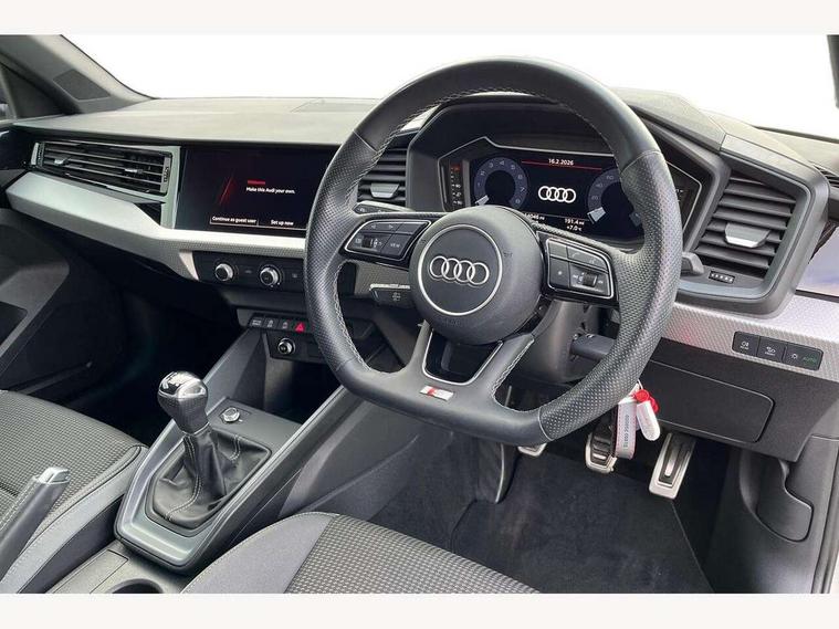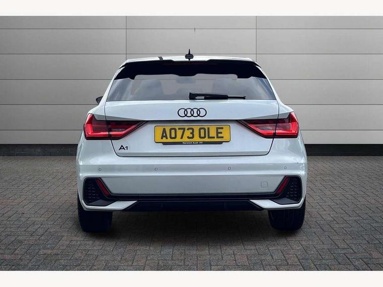 10.25" Digital instrument cluster display classis style instrument dials + speed, odometer, time, outside temperature, telephone menu + fuel level warning, Audi drive select - power steering assistance + engine, Audi smartphone interface with connect compatible smartphone via USB directly MMI display + Nav, music, third party apps controlled via MMI controller, Automatic start/stop system, Bluetooth interface, Cruise control, Driver's information system, Electromechanical power steering, Emergency e-call, Lane departure warning system, Rear parking sensor, Service interval indicator, Speed limiter, Voice control system, Washer fluid level indicator, Sports suspension, 2 x USB type C connection points, 6 passive loudspeakers, DAB Digital radio, MMI radio plus with 10.1" colour MMI display screen and MMI touch, Auto dimming rear view mirror, Black side skirts, Body coloured bumpers, Door sill trims with aluminium inlays and logo, Electric front and rear windows, Electrically adjustable, heated, folding door mirrors with integrated LED side indicator, Front side air inlets in grained matt black and C frame in anthracite black, Front wing badges, Heat insulating glass windscreen and side windows, Heated rear windscreen, High level LED brake light, LED headlights with LED rear lights + dynamic rear indicators + headlight adjustment and high beam, turning light + LED daytime running lights, Privacy glass, Rain and light sensors, Rear fog lights, Rear side wing doors, Rear wiper, Side front spoiler lips in grained matt black, 12V socket in centre console with two cup holders, 3 rear seats with headrests, 3 seat bench in 2nd row, 3 spoke flat bottomed multi-function plus leather steering wheel with S badging, grips in preforated leather and contrast stitching, 40:60 Split folding rear seat or folded fully, Black cloth headlining, Driver and passenger seat with manual height adjust with forward and backwards adjustment, Front and rear black floor mats with contrast stitching in fine silver, Front head restraints, Front passenger seat, Height and reach adjustable steering wheel, ISOFIX child seat mounting for front passenger and outer rear seats including top tether attachment point of outer rear seats, Leather gear knob with aluminium trim, Leather handbrake grip, Luggage compartment light with front and rear reading lights, Manual air conditioning, Manually adjustable lumbar support in front seats, Stainless steel pedals, Black styling pack - A1 Sportback Black Edition, LED interior lighting pack - A1, Luggage compartment pack - A1, 3x3 point rear seatbelts, Audi pre-sense front with pedestrain and cyclist recognition, Brake assist function, Driver and front passenger airbag with front side and head airbags, Electronic Stability Control including ABS, EBD, ASR and EDL, Front passenger airbag deactivation switch, Hill hold assist, Manual rear child locks, Seatbelt height adjustment for front seats, Seatbelt monitoring, Tyre pressure warning light, Warning triangle and first aid kit, Anti theft alarm, Anti theft wheel bolts and loose wheel warning, Immobiliser, Remote central locking with 2 foldaway keys, Aluminium trim for control switches, air vents and digital instrument cluster, Black dashboard, Silver grey inlays polygon structure in diamond paint finish, Structured grey accent areas including air vents, door handle recesses and centre console in quartz paint finish,