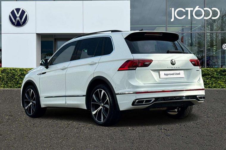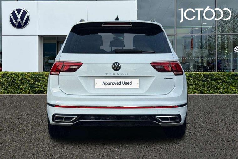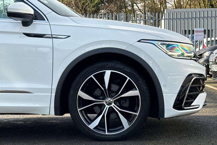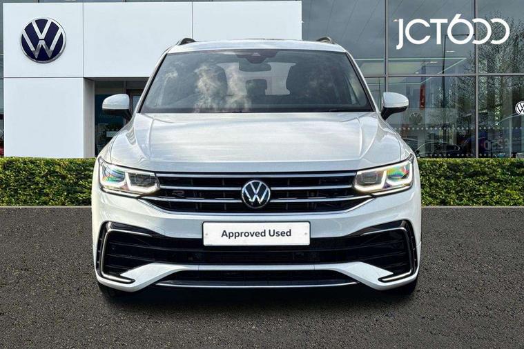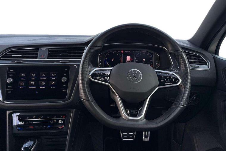 Adaptive cruise control ACC stop and go including speed limiter, App-Connect incl. App-Connect Wireless for Apple CarPlay and Android Auto, Bluetooth phone integration system, Distance control assist, Driver alert system, Driver profile selection, Dynamic road sign display, eCall emergency call system, Electromechanical speed sensitive power steering, Engine start/stop button, Lane keeping system Lane Assist, Lights on warning, Multifunction front facing camera, Outside temperature display, Premium multifunction display with multi colour display, Remote control boot opening, Rev counter, Revision / skills operating concept travel assistant, Service interval indicator, Speed limit display, Start/stop system with regenerative braking, Trip computer, Warning sound and light for doors and tailgate open, All wheel drive - 4Motion, Battery regeneration during braking, Diesel particulate filter, Misfuel prevention device for diesel engine, Selective Catalytic Reduction, XDS electronic differential lock for improved traction and handling, 4 X 20 watt output, 8 Speakers, Diversity antenna for FM reception, Radio, SD card slot, Simultaneous pairing of 2 compatible mobile devices, SMS functionality - read, compose and send SMS messages using touch-screen display, Title and cover art display, USB C ports, Auto dimming interior rear view mirror, Automatic headlight control system, Body colour door handles, Chrome moldings on the side windows, Coming/leaving home lighting function, Dynamic headlight range control, Front and rear electric windows, Heated rear window, High level 3rd brake light, Laminated safety glass windshield, heat and sound insulating, LED headlamps with LED separate daytime running light and dynamic cornering light, LED rear combination lamps, LED rear number plate lights, License plate carrier in front and rear, Poor weather light and cornering light, R Line body kit, R Line side sills, Rain sensor windscreen wipers, Rear exhaust tailpipe, Rear fog lamp, Rear side wing doors, Rear spoiler in R style, Rear windscreen washer and wiper with interval delay, Side and rear windows in heat insulating glass, Trailer Stability Programme, Unique R Line badging, Windscreen wipers/ intermittent wipe + 4 position delay, 12V outlet in center console rear and in luggage compartment, 12V outlet in front and tray, 2 cup holders in front, 2 LED front reading lights, 2 LED rear reading lights, 3 bench rear seats in 2nd row, 3 rear headrests, 4 load lashing points, 40:20:40 split folding rear seats, Air Care Climatronic 3 zone automatic climate control with enhanced air filter and controls in the rear, Backrest release for left front seat, Black headlining, Brushed stainless steel pedals and footrest, Carpet mats in front and rear with decorative stitching in Gray, Climate control unit rear with touch function, Door and side trim panel in foam film, insert in leatherette, Front centre armrest, Front footwell illumination, Front seats head restraints (x-adjustment), Height adjustable front seats, Height/reach adjust steering wheel, Instrument lighting white adjustable panel illumination, Interior light with delay, Isofix Preparation 2 Rear child seats, Leather gear knob, Lockable cooled glovebox, Luggage compartment lighting, Luggage net, Rear bench seat asymetrically split folding, longitudinally movable and folding with load-through hatch and center armrest, Remote unlocking for rear seat backrest, Removable luggage cover, Removable rear headrests, Safety optimised front head restraints, Single front passenger seat, Sliding/reclining rear seats, Standard rear seat release, Storage compartment in driver's door, Storage compartment in passenger's door, Storage compartment in rear doors, Storage compartments in luggage area left and right, Storage tray on dashboard, Sun visors with illuminated vanity mirrors, Top front comfort seats, Variable boot floor, height adjustable and removable, Driver assistance pack plus - Tiguan DSG, 3 point seat belt for centre rear seats, 3 point seat belts with seat belt pretensioners for the outer rear seats, Active bonnet, Curtain airbags for front and rear passengers, Driver/Front Passenger airbags, Drivers knee airbag, Electronic parking brake with auto hold, Electronic Stability Control with driver steering recommendation, ABS, ASR, EDL, EDTC and trailer stabilization, Front assist with autonomous emergency braking (for Adaptive Cruise Control ACC up to 130 mph), Front disc brakes, Front passenger airbag deactivation, Front side airbags, Height adjustable front 3 point seatbelts + pretensioners, Hill hold control, Manual child proof rear door locks, Pedestrian monitoring system, Power assisted brakes, Proactive passenger protection system in combination with front assist, Rear disc brakes, Rigid safety cell with front and rear crumple zones, Two tone horn, Warning sound and light for front seat belts if unfastened, Anti theft alarm system with interior monitoring, backup horn and towing protection, Anti theft wheel bolts, Electronic engine immobiliser, Tool kit,