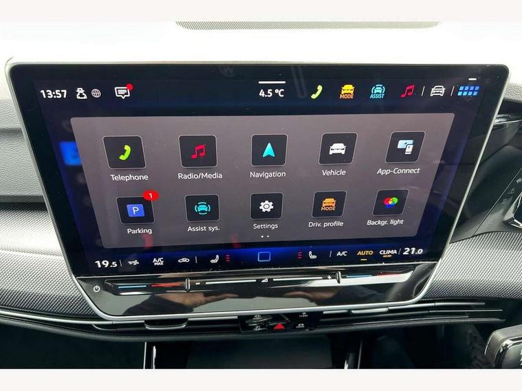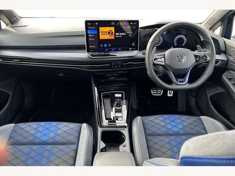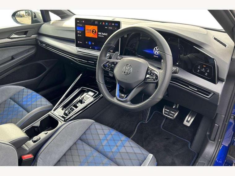 Activated carbon canister, Adaptive cruise control (ACC), Advanced driver attention and drowsiness monitor, Dynamic road sign display, E-Sim card for online connectivity, eCall emergency call system, Multi-color Digital cockpit pro, selection of different info profile possible, Multifunction front facing camera for distance control, Navigation system, Oncoming vehicle braking when turning including swerve support, Side assist blind spot lane change system, rear traffic alert and exit warning system, Speed limiter, Speedo, rev counter, electronic odometer, trip, service interval display, exterior temperature and fuel gauge, Traffic jam assist, Voice enhancer and voice control, Warning signal and warning light for front and rear seatbelts not fastened, We connect plus preparation, We connect preparation, Wireless app connect, All wheel drive - 4Motion, Petrol Particulate Filter, Start-stop system with battery regeneration (recuperation - energy recovery during braking), XDS electronic differential lock for improved traction and handling, 2 USB C ports in front, 2 USB charging sockets on the centre console in the rear charging capacity upto 45W, Digital radio reception (DAB), Diversity antenna for FM reception, Gaming platform via car app, Infotainment system with 12.9" display, Mobile phone interface with inductive charging feature, 3rd brake light, Auto dimming rear view mirror, Automatic headlamp activation with Coming home and Leaving home feature, Body colour door handles, Exterior mirror housings in matte chrome, Exterior mirrors convex on the left and aspherical on the right, Front and rear electric windows, Front fog lamps and cornering light, Heat insulating windshield made of laminated glass, Illuminated lighting animation with wake up/goodbye scenario, LED matrix headlights with ambient light V2, advanced high beam, dynamic range contol with cornering, LED rear lamp with indicator, poor weather, LED separate daytime running light, Light assist with High beam control, R name plate, Rain sensor, Rear fog light on one side and reversing lights on both sides, Rear side wing doors, Rear tinted glass 65% light absorbing from B pillar backwards, Rear windscreen washer and wiper with interval delay, Remote electrically foldable door mirrors, puddle lights and reverse activated passenger's door mirror, Welcome light with surround lighting, 12V socket in front centre console, 12V socket in luggage compartment, 3 rear head restraints, 3 seat bench in 2nd row, 30 colour ambient lighting, illuminated center console storage compartment in front, Air care climatronic 3 Zone automatic climate control with rear air conditioning control panel, Aluminium gearshift handle, Brushed stainless steel pedals, Chrome plated radiator grille inserts, air vent surrounds and light switch surrounds, Entry lights, Front + rear black carpet mats, Front centre armrest, Integrated front head restraints, ISOFIX anchors for child seats on outer rear bench seats and on front passanger seat compatible for i-Size, Luggage compartment lighting, Rear cupholder and loadthough, Single front passenger seat, Soul black instrument panel, Soul black roof lining, Split folding backrest with centre armrest and unsplit rear seat bench, Sun visors with illuminated vanity mirrors, Driver assistance pack - Golf Estate/Hatchback Auto, R styling pack - Golf, Technology park and comfort pro package - Golf Hatchback, 3 point height adj front seatbelts + pretensioners, 3 rear three point seatbelts, ABS, Autonomous emergency braking front assist with pedestrian and cyclist monitoring, Child locks on rear doors, Driver and front passenger airbag with front passenger airbag deactivation, Electronic parking brake with auto hold, ESC (Electronic Stability Control), Extended pedestrian protection measures, Front blue brake callipers with R logo, Hill start assist, Rear disc brakes, Two tone horn, Tyre pressure loss indicator, Volkswagen roadside assistance, Anti theft wheel bolts, Preparation for alcohol interlock, Sporty vehicle dynamics, Tool kit for tyre mobility set, Tyre mobility kit Includes 12V compressor and tyre sealant,