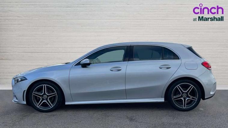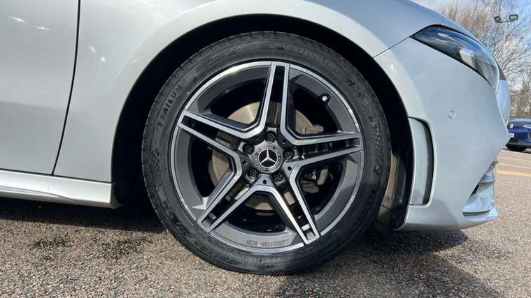10.25" media display, 180 degree rear view camera with parking guidelines, 7" colour screen in instrument panel, Active lane keep assist, Active park assist with parktronic system including front and rear parking sensors, Attention assist, Brake pad wear indicator warning light, Direct steering, Direction indicators with lane change function, DYNAMIC SELECT with a choice of driving modes (ECO, Comfort, Sport, Sport+ and Individual), Fluid level warning indicator for fuel, oil, coolant and washer fluid, Hard-disk navigation, Lamp failure indicator, Mercedes me connect including emergency call system, accident recovery, breakdown and maintenance management, Outside temperature gauge, Radio aerial integrated into roof spoiler, Service indicator (ASSYST), Speed sensitive power steering, Stop/start system, Trip computer, Voice activation, Lowered comfort suspension, DAB Digital radio, Dual bluetooth interface, 2 USB ports (type C), MBUX multimedia system with DAB digital radio and touchpad including satellite navigation, Active aerodynamics with AIRPANEL in the front apron, Adaptive brake lights, AMG front, rear apron and side skirts, Blue tinted glass, Body colour bumpers, Body colour door handles, Body colour side skirt, Body coloured door mirrors, Chrome beltline trim, Diamond radiator grille with chrome pins and silver louvre + chrome insert, Electric adjustable and heated door mirrors with integrated LED side indicators, Electric front windows, Electric rear windows, Exhaust system - Twin trapezoidal tailpipes in polished stainless steel, Headlamp assist automatic headlamp activation, Heated glass rear windscreen + timer control, LED high performance headlamps with integrated LED daytime running lights, LED tail lamp, LED third brake light, Rain sensor windscreen wipers, Rear fog lights, Rear wiper, 12V socket, 3 Spoke flat bottom leather multi function steering wheel with perforated leather in grip area, 40:20:40 split folding rear seats, Air vents surround and cruciform nozzle in silver chrome, AMG floor mats with red stitching, Artico man-made leather/Microfibre Dinamica upholstery with red contrast stitching, Auto Mercedes-Benz child seat recognition sensor, Black roof lining, Brushed stainless steel sports pedals with rubber studs, Controller on centre console with chrome surround, Cup holder and stowage compartment lighting, Front centre armrest with storage compartment, Front door sills with Mercedes Benz lettering, Front doors with ambient and signal light, Front footwell lights, Front reading lamps, Front seat backs luggage nets, Front seat cushion length adjustment, Front signal exit lamp, Front vanity lights, Gearshift paddles on steering wheel, Handle recess/closing light, Heated front seats, Height/reach adjustable steering column, Illuminated glovebox, ISOFIX Child seat top tethers and anchor fixings, Load securing rings in luggage compartment, Luggage compartment cover, Manual height adjustable front seats, Oddments tray lighting, Rear head restraints, Rear Reading Lamps, Seat occupancy sensor for front passenger seat, Sports seats with integrated headrests, Storage compartment under load area floor, Sunvisors with illuminated vanity mirrors, Touchpad, Touchpad illumination, Twin front cupholders, Two zone thermotronic luxury automatic climate control, Mirror package - A Class, Seat comfort pack - A Class, 3 rear 3 point seatbelts, ABS with Brake Assist, Active bonnet, Adaptive brake assist with hold function and hill start assist, Black seatbelts, Brake calipers with Mercedes-Benz lettering + perforated brake discs, Childproof locks manually operated for rear doors and electrically operated for rear power windows, Crash responsive emergency lighting, Driver and passenger head and side airbags, Drivers knee airbag, Dual stage driver/passenger airbags, Electronic parking brake, ESP curve dynamic assist, ESP with ASR, Front and rear seatbelt reminder, Tyre pressure monitoring system, Warning triangle and first aid kit, Window airbags, Alarm system/interior protection/immobiliser, Keyless Go, Remote central locking and crash sensor with emergency opening function, 18" AMG 5 twin spoke light alloy wheels in titanium grey with highsheen finish, Tirefit sealant kit,