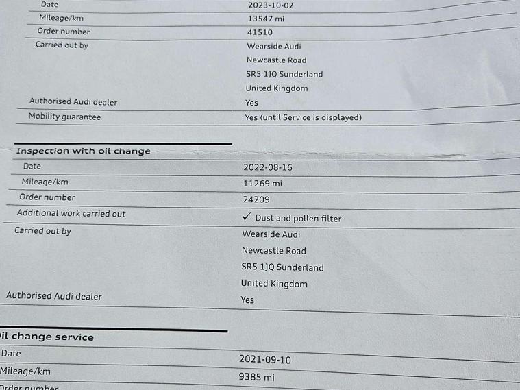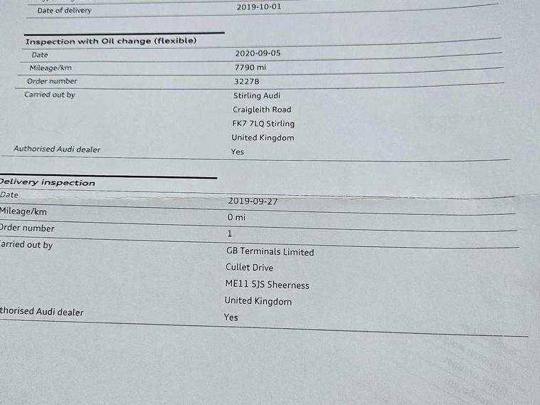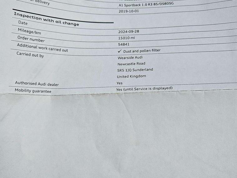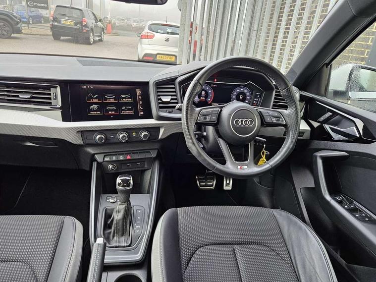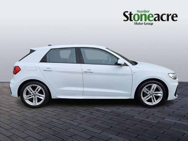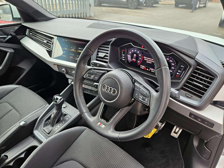10.25" Digital instrument cluster display classis style instrument dials + speed, odometer, time, outside temperature, telephone menu + fuel level warning, Audi connect safety emergency and service including E-call, Audi drive select - power steering assistance + engine + gear shift 3 preset modes (auto, dynamic, efficiency and an Individual mode), Audi smartphone interface with connect compatible smartphone via USB directly MMI display + Nav, music, third party apps controlled via MMI controller, Automatic start/stop system, Bluetooth interface, Cruise control, Driver's information system, Electromechanical power steering, Lane departure warning system, Rear parking sensor, Service interval indicator, Speed limiter, Voice control system, Washer fluid level indicator, Sports suspension, 1 x SDXC card reader, 1 x USB type C and 1 USB type A charging points, DAB Digital radio, MMI radio plus with 8.8" colour MMI display screen and MMI touch, Auto dimming rear view mirror, Body coloured door mirrors, Door sills with aluminium inlays and S Line logo, Electric front and rear windows, Electrically adjustable, heated, folding door mirrors with integrated LED side indicator, Front side air inlets in grained matt black and C frame in titanium black, Heat insulating glass windscreen and side windows, Heated rear windscreen, LED headlights with LED rear lights + dynamic rear indicators + headlight adjustment and high beam, turning light + LED daytime running lights, Radiator grille and rear diffuser in matt titanium black, Radiator protective grille frame in matt aluminium silver, Rain and light sensors, Rear fog lights, Rear wiper, S line badges on front wings, Side front spoiler lips in grained matt black, 12V socket in centre console with two cup holders, 3 rear seats with headrests, 40:60 Split folding rear seat or folded fully, Black cloth headlining, Driver and passenger seat with manual height adjust with forward and backwards adjustment, Front and rear black floor mats with contrast stitching in fine silver, Front head restraints, Height and reach adjustable steering wheel, ISOFIX child seat mounting for front passenger and outer rear seats including top tether attachment point of outer rear seats, Leather gear knob with aluminium trim, Luggage compartment light with front and rear reading lights, Manually adjustable lumbar support in front seats, Stainless steel pedals, LED interior lighting pack - A1, Luggage compartment pack - A1, S line exterior styling pack - A1 Sportback, 3x3 point rear seatbelts, Audi pre-sense front with pedestrain and cyclist recognition, Brake assist function, Driver and front passenger airbag with front side and head airbags, Electronic Stability Control including ABS, EBD, ASR and EDL, Front and rear seatbelt reminder, Front passenger airbag deactivation switch, Hill hold assist, Seatbelt height adjustment for front seats, Seatbelt monitoring, Tyre pressure warning light, Warning triangle and first aid kit, Anti theft alarm, Anti theft wheel bolts and loose wheel warning, Immobiliser, Remote central locking with 2 foldaway keys, Aluminium trim for control switches, air vents and digital instrument cluster, Silver grey inlays polygon structure in diamond paint finish, Structured grey accent areas including air vents, door handle recesses and centre console in quartz paint finish,