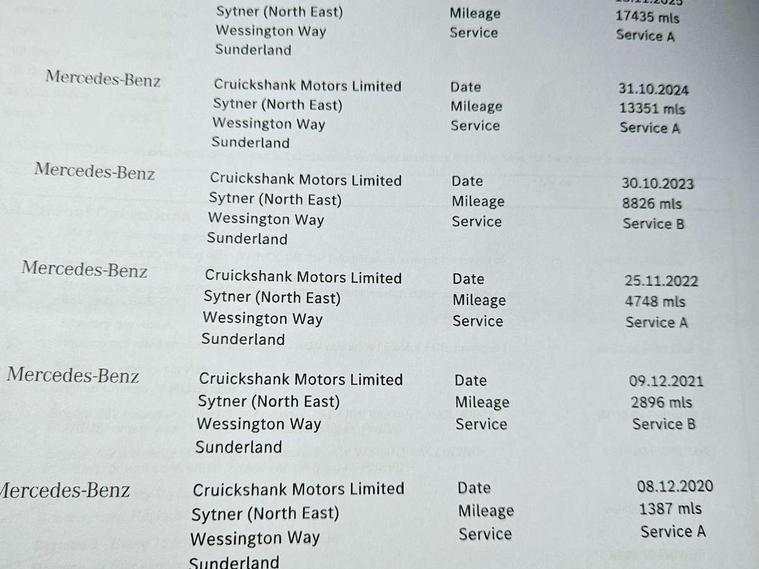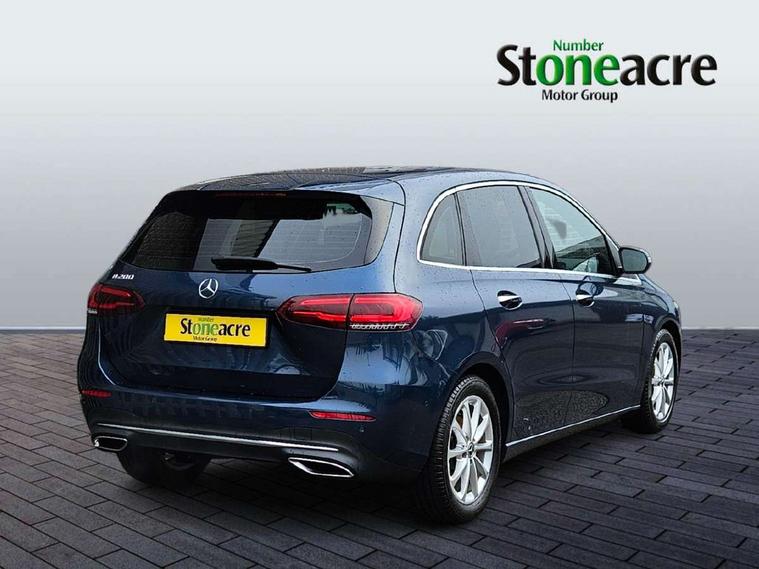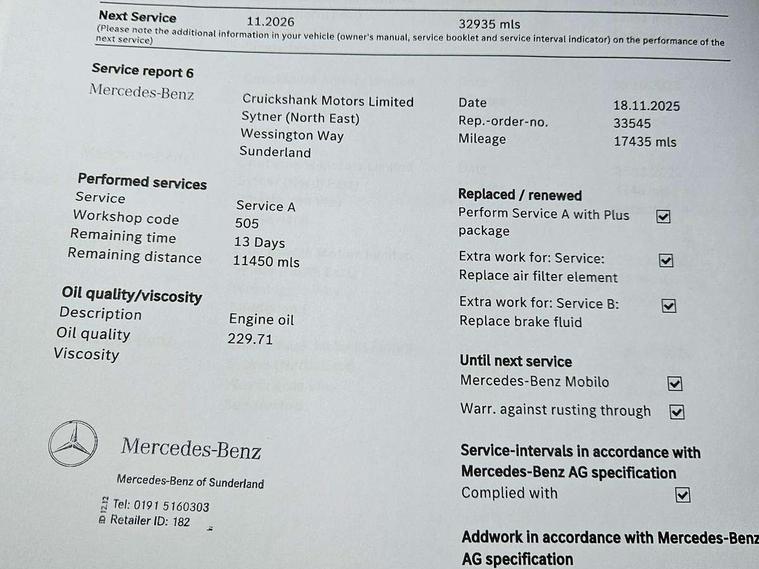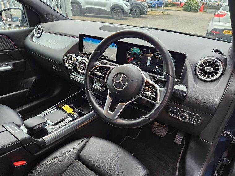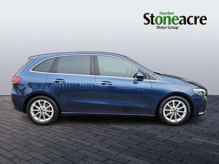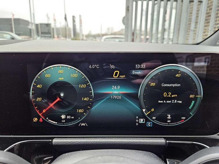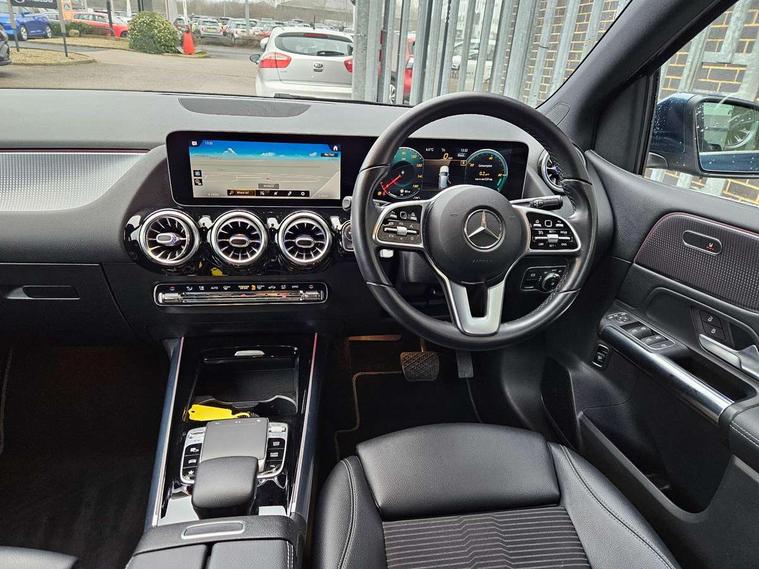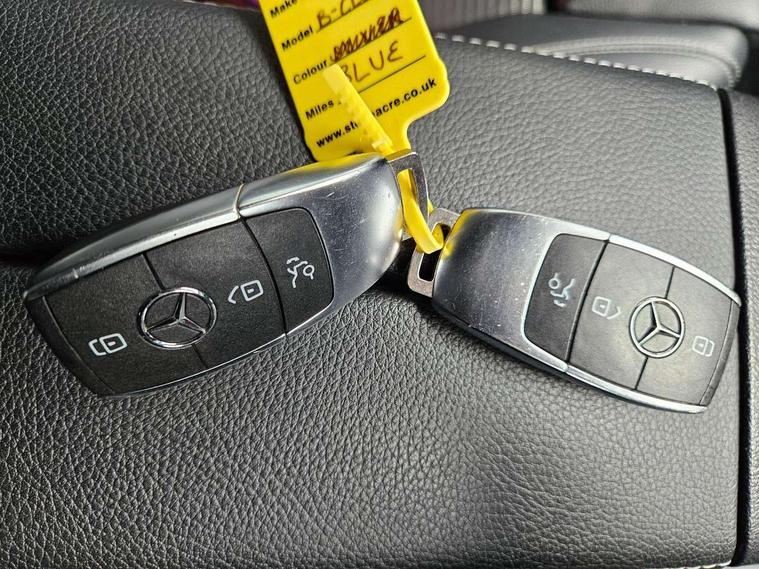 10.25" Digital instrument cluster display screen, 10.25" media display, 180 degree reversing camera with parking guidelines, Active lane keeping assist, Active park assist with parktronic system including front and rear parking sensors, Attention assist - Monitors steering behaviour and long journey fatigue, Brake pad wear indicator warning light, DYNAMIC SELECT with a choice of driving modes (ECO, Comfort, Sport, Sport+ and Individual), Easy-pack tailgate, ECO start/stop function, Fluid level warning indicator for fuel, oil, coolant and washer fluid, Hard-disk navigation, Hey Mercedes Voice activation, Lamp failure indicator, Mercedes me connect including emergency call system, accident recovery, breakdown management and maintenance, Outside temperature gauge, Pre-installation for car sharing, Preinstallation for Mercedes Benz link, Service indicator (ASSYST PLUS), Trip computer in multifunction display with current consumption indicator, Comfort suspension, Rear axle torsion beam, DAB digital radio tuner, Dual bluetooth interface, 2 USB ports (type C), MBUX multimedia system with DAB digital radio and touchpad including satellite navigation, Mid-range sound system, 4 Electric Front and Rear windows, Active radiator shutters open for cooling air and close when not needed to improve aerodynamics and fuel efficiency, Adaptive brake lights, Aerial for GPS, Body coloured bumpers, Body coloured door handles, Body coloured side skirts, Chrome beltline strips, Chrome weather strip, Diamond radiator grille pins in black with two louvres painted in silver and chrome insert, Electric adjustable and heated door mirrors with integrated LED side indicators, Exhaust system - Twin trapezoidal tailpipes in polished stainless steel, Headlamp assist automatic headlamp activation, Heated glass rear windscreen + timer control, High level LED third brake light, LED high performance headlamps with integrated LED daytime running lights, LED tail lamp, Rain sensing windscreen wipers with two sensitivity settings, Rear fog lamp, 40:20:40 split folding rear seats with backrest, Air vents with surround in silver chrome, Artico man-made leather/Fleron fabric upholstery, Automatic child seat recognition sensor, Black roof lining, Cup holder and stowage compartment lighting, Folding rear armrest, Freight packaging without tie-down hooks, Front and rear Handle recess/closing handle light in left and right, Front and rear head restraints, Front centre armrest with stowage, Front comfort seats, Front door sills with Mercedes Benz lettering, Front footwell lights, Front reading lamps in left and right console downlighter, Front seat cushion length adjustment, Front signal exit lamp in left and right, Front vanity light in left and right, Gearshift paddles on steering wheel, Heated front seats, Illuminated door sills, Illuminated glove compartment stowage, Interior lighting - 64 colour Ambient lighting, Luggage net on driver/front passenger seat backrest, Manually adjustable front seats, Manually height and reach adjustable steering column, Multifunction sports leather steering wheel with black topstitching and bezel in silver chrome, Oddments tray lighting, Rear reading lamp in support plate in left and right, Seat occupancy sensor for front passenger seat, Seats with adjustable head restraints, Spectacles compartment for driver, Sunvisors with illuminated vanity mirrors, Thermatic single zone climate control, Touchpad illumination, Touchpad on center console, Twin front cupholders, Two outer rear seat isofix and top tether child seat fixing points, Velour floormats, Light and sight package - B Class, Mirror package - B Class, Seat comfort pack - B Class, 3 rear three point seatbelts, Active bonnet pedestrian safety measure which detects an impact and raises bonnet, Active brake assist includes forward collision warning system with autonomous braking, Adaptive brake assist with hold function and hill start assist, Airbags - kneebag for driver, Anti-lock braking system (ABS) with brake assist, Childproof locks manually operated for rear doors and electrically operated for rear power windows, Crash responsive emergency lighting, Driver and front passenger head and sidebags, Driver and front passenger windowbags, Dual stage driver/passenger airbags, Electric parking brake, Electronic stability programme with acceleration skid control, ESP curve dynamic assist, Front and rear seatbelt reminder, Tyre pressure monitoring system, Warning triangle and first aid kit, Alarm system with immobiliser and interior protection -Thatcham category 1, Keyless entry lock/unlock, Remote central locking and crash sensor with emergency opening function, Light switch in high-gloss black with ring in silver chrome, Spiral look trim, 17" 10 spoke design alloy wheels painted in vanadium silver, Summer tyres, Tirefit tyre sealant kit,