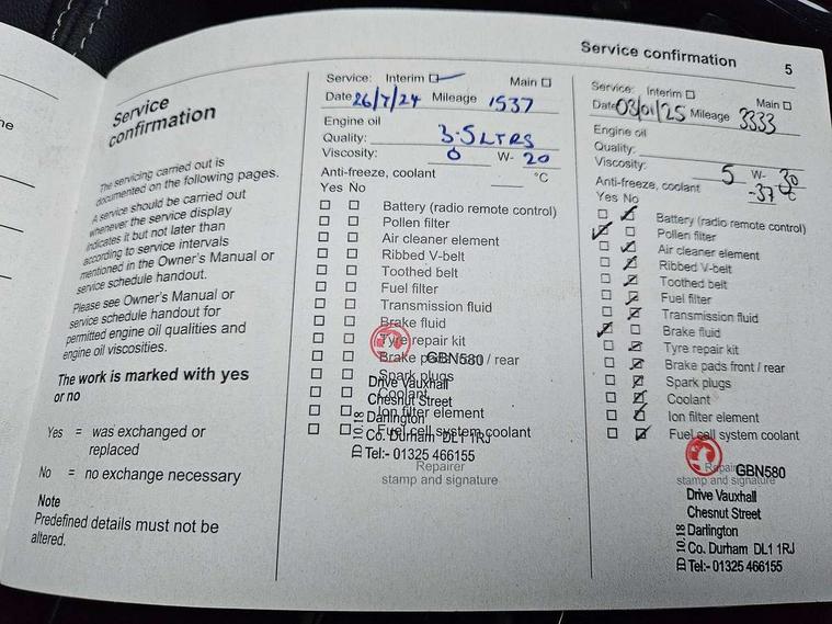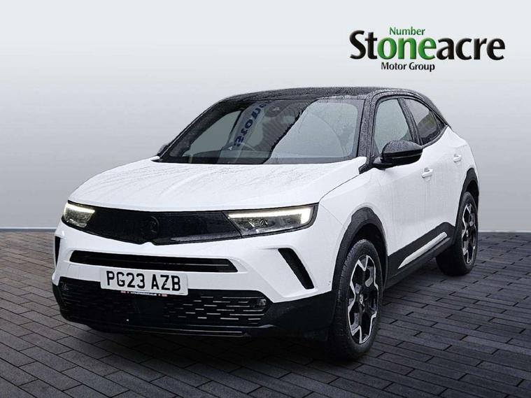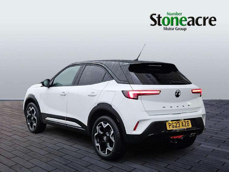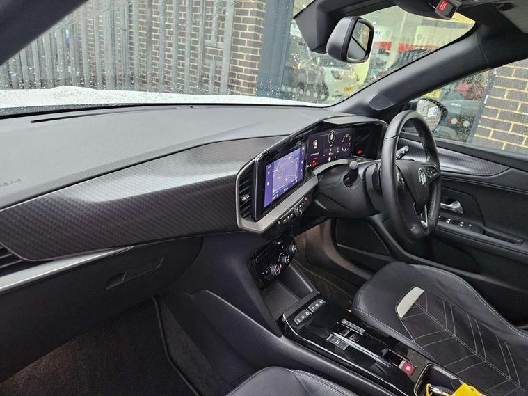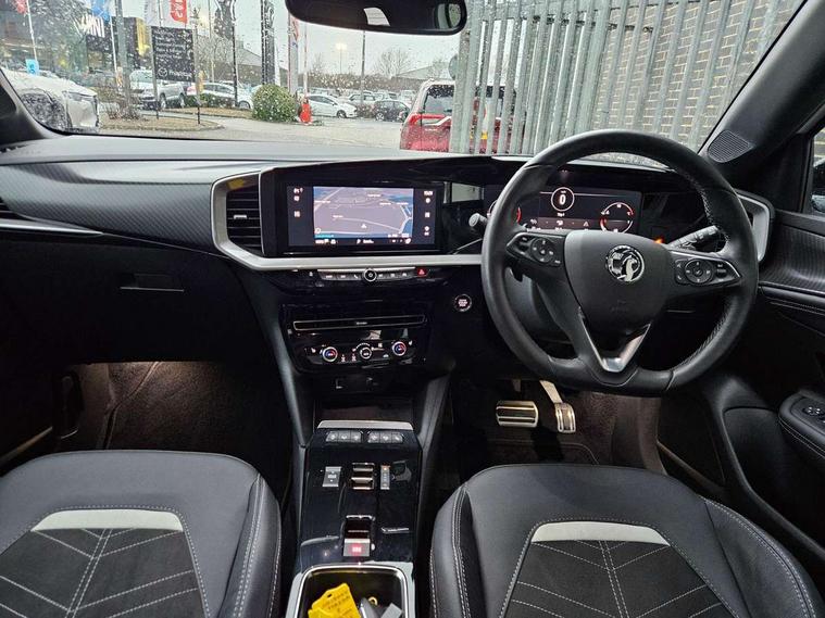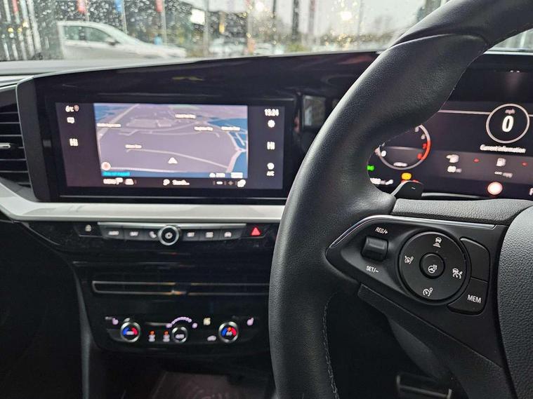12" digital instrument cluster, Adaptive cruise control with speed limiter, Advanced Park Assist, Digital instrumentation with digital speedometer, rev counter, fuel and water temperature gauge, Driver information display with multi function trip computer, audio info, digital clock and outside air temperature with ice warning function, Engine start/stop button, EV information display, Extended traffic sign recognition, Front and rear parking distance sensors, Front camera and radar system, Lane keep assist system (LAS) with Lane departure warning system (LDWS), Lane positioning assist, Lights on audible warning, Panoramic rear view camera, Power assisted speed sensitive steering, RDS with traffic programme, Side blind spot alert and flank guard, Smartphone integration compatible with Apple CarPlay and Android Auto, Sports switch with engine sound enhancement, Start/stop system, Vauxhall connect with e-Call, Wireless charging for smartphone, 8 speed automatic transmission, 6 speakers, AM/FM stereo radio with 36 station presets, DAB Digital radio, Flexible Roof Mounted Radio Aerial, Front USB connection, Mobile phone portal - bluetooth connect, vehicle microphone, handsfree calls, SMS read out and reply, phone book access, Multimedia Navi Pro with 10" colour touchscreen, Steering wheel mounted controls, Two rear USB sockets, Adaptive brake lights, Automatic headlamp levelling, Automatic lighting control with tunnel detection, Automatically dimming anti dazzle rear view mirror, Black door mirror housings, Black front and rear bumper inserts, Black Griffin logo and vizor frame, Black upper window moulding, Body colour door handles, Body colour front and rear bumpers, Dark tinted rear side windows + tailgate window, Electric adjustable/heated/folding door mirrors + puddle lights, Electrically operated front and rear windows with safety auto reverse and one touch up/down facility, Hazard warning lights, Heated rear window+rear wash/wipe, High beam assist with anti glare, Integrated black tailgate spoiler, IntelliLux Matrix LED headlights with adaptive forward lighting, LED 3rd brake light, LED daytime running lights, LED front fog lamps, LED side repeat indicators, LED tail lights, Rear foglight, Rear side wing doors, Reversing light, Solar heat absorbing windscreen and windows, Two speed rain-sensitive windscreen wipers with variable intermittent wipe, Windscreen and side window demist vents, 12V Accessory socket, 3 seat bench in 2nd row, 3 spoke flat bottomed leather steering wheel with satin chrome bezel, 4 speed fan with illuminated controls, 6 way manual adjustable driver fore/aft, up/down with reclining seatback, 6 way manual adjustable front passenger fore/aft, up/down with reclining seatback, 60/40 split folding rear seat, Air recirculation system, Alcantara/leather upholstery, Alloy sports pedals, Black headliner, Cabin particulate filter - removes dust, airborne particles and pollen, Centre console with two cup holders at front and one in rear, Chrome effect interior door handles, Door pockets with two litre capacity, Driver and passenger sun visors with vanity mirror, Driver seat with lumbar and massage function, Electronic climate control (ECC), Four adjustable facia vents, Four load restraint lashing eyes, Front centre armrest with storage, Front head restraints, Front map reading lights, Front seat back storage pockets, Fully carpeted load area, Heated front seats, Heated steering wheel, Interior courtesy light, Interior tailgate handle, Luggage compartment cover, Luggage compartment lighting, Movable boot floor, Reach + rake adjustable steering column, Single front passenger seat, Steering wheel mounted paddle shift, Three height adjustable rear seat head restraints, Twin gas assisted tailgate struts, Black Pack with badge - Mokka, 2x Isofix child seat fitting on outer rear seats, 3x3 point rear seat belts, Anti-lock braking system (ABS), Child proof locks on rear doors, Cornering brake control, Deactivation switch for front passenger front and side impact airbags, Drag torque control, Driver and front passenger airbags, front seat side impact airbags, full size curtain airbags, Driver drowsiness alert system, Electronic brake force distribution, Electronic Stability Programme (ESP), Emergency brake assist, Enhanced automatic emergency braking with pedestrian detection, Forward collision alert at all speed, Hill start assist, Inertia reel lap and diagonal seatbelts for all seats, Seatbelt unfastened audible warning and warning light, Straight line stability control, Traction control, Tyre pressure monitoring system, Electronically protected audio equipment, Engine deadlock immobiliser, Freewheeling door locks, Key left in ignition audible warning, Keyless entry and start, Locking wheel nuts, Remote control central locking, Remote control ultrasonic security alarm system, Visible vehicle identification number, Atlantis black trim inserts of front doors, Black facia with silver trim insert, Instrument panel bar in polar silver, 18" bi colour alloy wheels,