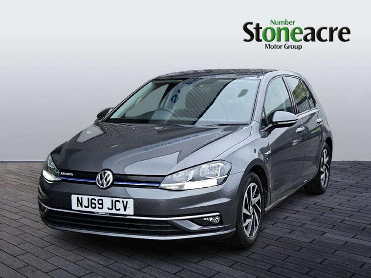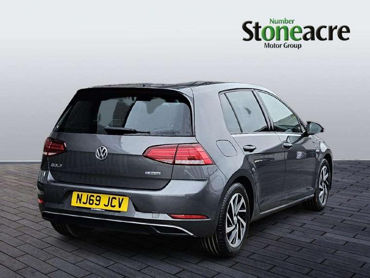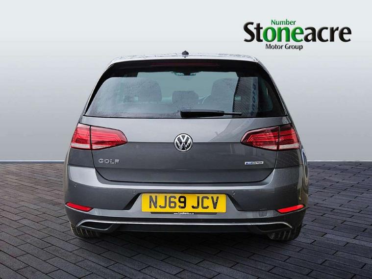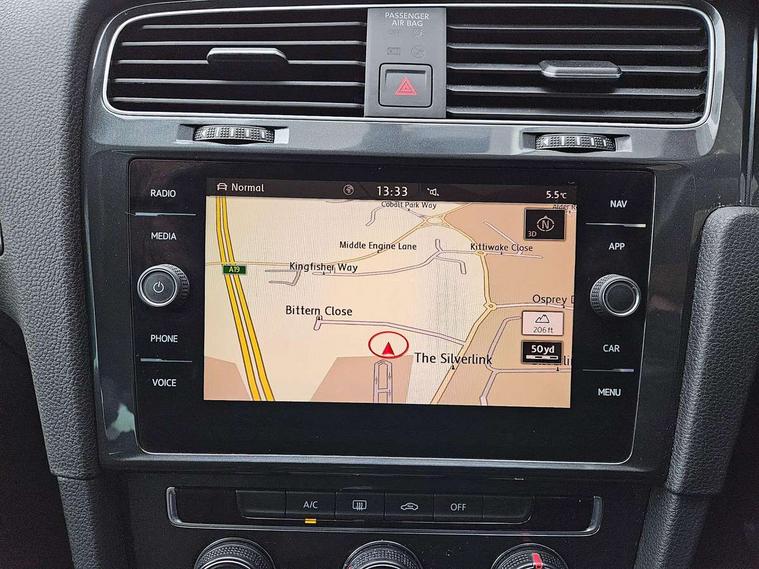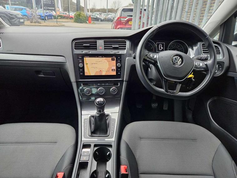 'Lights On' Reminder warning buzzer, ACC - Adaptive cruise control with front assist, forward collision warning, distance monitoring, city emergency brake and speed limiter, Bluetooth telephone and audio connection for compatible devices, Brake pad wear indicator warning light, Driver alert system, Driving Mode Selection with four preset modes - Eco, normal, sport or individual modes, Instrument cluster in white, Multifunction computer with visual gear change recommendation for fuel consumption, Power assisted speed sensitive electro-mechanical steering, Push tank flap, Speed limit display, Speedo, rev counter, electronic odometer, trip, service interval display, exterior temperature and fuel gauge, Stop/start system, Think blue trainer driver tips and journey analysis, Warning buzzer and light for front seatbelts unfastened, We Connect Go Dongle, Battery regeneration during braking, Standard suspension, XDS electronic differential lock, Composition media system, DAB Digital radio receiver, Driver Personalisation profile selection, MP3/WMA compatability, Multi device interface (MDI) with USB connection, Personalisation 1.1 profile for media, Premium USB cable in choice of either Apple or Android smartphone compatibility, SMS Functionality, Title and cover art display, 4 X 20W output, USB connection and socket, USB and SD card connectivity, Aerodynamic black radiator grille with chrome trimmed insert, Auto dimming rear view mirror, Black rear diffuser, Body colour bumpers, Body colour door handles, Body colour door mirrors with integrated indicators, Dusk sensor + automatic driving lights, Electric front windows, Electric rear windows, Electrically adjustable and heated door mirrors, Fully galvanised body, Heated rear windscreen, Hidden exhaust pipe, High level 3rd brake light incorporating LED Technology, LED front fog lights with static cornering light function, Range adjustable headlights via infotainment system with LED daytime running lights, Rear fog lamp, Rear number plate lights incorporating LED technology, Rear tinted glass 65% light absorbing from B pillar backwards, Rear window aerial, Rear window wash/wipe with intermittent wipe, Reflectors in all doors, Remote electrically foldable door mirrors, door mirror puddle lights and reverse activated kerb-view adjustment on passengers door mirror, Tailgate with integrated rear roof spoiler, Windscreen wipers/ intermittent wipe + 4 position delay, 12V socket in luggage compartment, 3 rear headrests, 4 load lashing points in luggage compartment, 60/40 split folding rear seat backrest, Auto fold down lever in rear seat backrest, Bag hook in luggage compartment x 2, Cooled glovebox, Cover for storage compartment in centre, Cupholder cover, Dust/pollen filter, Front and rear reading lights X 2, Front centre armrest with storage compartment and two rear air vents, Front seat back storage pockets, Grab handles front x 2, rear x 2 with integrated coat hooks, Height and reach adjustable steering wheel, Illuminated vanity mirrors, Instrument lighting white adjustable panel illumination, Interior light delay, Isofix preparation for 2 rear child seats, Load through provision with rear centre armrest and cupholders x2, Luggage compartment lighting, Overhead storage box, Passenger underseat drawer, Pearl grey headlining, Storage box in luggage compartment, Storage compartment in roof console with cover, Storage compartments in centre console, Storage compartments in front doors, Storage compartments in rear doors, Stowable luggage compartment cover, Sun visors, Variable boot floor, height adjustable and removable, Convenience Pack - Golf, Light and Sight pack - Golf, Mirror pack - Golf, 3 rear three point seatbelts, Airbags - Driver's and front passenger's, curtain airbag, Driver's knee, front side impact and passenger's airbag deactivation switch, Anti-lock Braking System (ABS) with Hydraulic Brake Assist (HBA), Automatic post collision braking system, Child locks on rear doors, Driver/Passenger optimised head restraints, Electronic parking brake with auto hold, Electronic stability control (ESC) including Electronic differential lock (EDL) and ASR (Traction control) with deactivation via infotainment system, Front ventilated disc brakes and rear disc brakes, Pre crash preventive occupant protection, Three point height adjustable front seatbelts with tensioners, Tyre pressure loss indicator, Alarm with interior protection and deactivation via infotainment system, Electronic engine immobiliser, Brushed dark silver decorative inserts in dash and door panels, Chrome plated air vent surround, Chrome-plated light switch surround, Polar night black decorative inserts in centre console, Steel space saver spare wheel,
