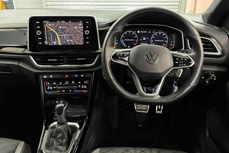 10.25" Digital cockpit pro, Bluetooth mobile phone interface, Driver alert system with fatigue detection, Driver tips and journey analysis, Emergency call service, Lane keeping system Lane Assist, Modified key software - reduce switch off time for key status change to Long no motion, Online services, Park assist including front and rear parking sensors, Service interval indicator, Tailgate/trunk lid release from outside, Think blue trainer driver tips and journey analysis, Warning sound and light for front seatbelts unfastened, Wireless app connect, Battery regeneration during braking, Start/stop function with battery regeneration, Diversity antenna for FM reception, Front and rear 6 speakers, Music playback - MP3, WMA and AAC files, Premium USB cable in choice of either Apple or Android smartphone compatibility, SD card slot, Simultaneous pairing of 2 compatible mobile devices, Title and cover art display, We Connect and We Connect Plus functionality, 3rd brake light, Auto dimming interior rear view mirror, Automatic hazard lights activation under emergency braking, Automatic headlight control with LED separate daytime running lights with coming/leaving home function, Extended roof spoiler, Exterior mirrors aspherical on driver side, convex on front passenger side, External USB type C socket and charging sockets, Front windscreen wiper with intermittent wipe and 4 position delay, Heated rear window, LED Plus headlamps, LED rear combination lamps, LED rear number plate lights, LED tail lamp rear comination lamps, Power windows with comfort operation and circuit breaker, R-Line design body coloured bumpers, Rain sensor, Rear exhaust tailpipe, Rear fog light on one side and reversing lights on both sides, Rear side wing doors, Rear wash/wipe with intermittent wipe setting, Remote electrically foldable door mirrors, puddle lights and reverse activated passenger's door mirror, 12V power socket in centre console, 3 rear head restraints, 3 seat bench in 2nd row, 4 load lashing points in luggage compartment, Air care climatronic air conditoning system with active combination filter and 2-zone temperature control, Black roof lining, Chrome plated radiator grille inserts, air vent surrounds and light switch surrounds, Door and side trim panel with leatherette insert, Drawer under drivers seat, Front + rear carpet mats, Front centre armrest, Front cupholders x 2, Front footwell illumination, Front reading light, Front scuff plates with R logo, Instrument lighting, white adjustable panel illumination, Interior ambient lighting and surround lighting, Interior light delay, Isofix child seat preparation, Leather gearshift handle, Load-through provision with cup holder when folded down ('Unsplit rear seat bench, split folding backrest, with centre armrest), Luggage compartment lighting, Single front passenger seat, Stainless steel pedals, Storage compartment in left and right luggage area, Storage compartment in rear doors, Storage compartments in driver and front passenger doors, Sunvisors with illuminated vanity mirrors, Variable boot floor, height adjustable and removable, Driver assistance pack without proactive passenger protection - T-Roc, 3 point height adj front seatbelts + pretensioners, 3 point seatbelts in outer rear with ECE label, ABS, Child locks on rear doors, Driver and front passenger airbag with front passenger airbag deactivation, Driver and front passenger safety-optimised head restraints, Drivers seatbelt reminder, Electronic parking brake, Electronic Stability Control (ESC) inc EDL (Electronic Differential Lock) and ASR (Traction Control), Front and rear passengers curtain airbag system including front side airbags, Front assist with city emergency braking and pedestrian monitoring, Front seat side impact airbags, Hill start assist, Predictive pedestrian protection, Rear disc brakes, Single tone horn, Tyre pressure loss indicator, Volkswagen roadside assistance, Alarm with interior protection, Anti-theft alarm system with interior monitoring, backup horn, and towing protection, Remote central locking with SAFELOCK, radio remote control with 2 remote control folding keys, Trims for alloy wheels,