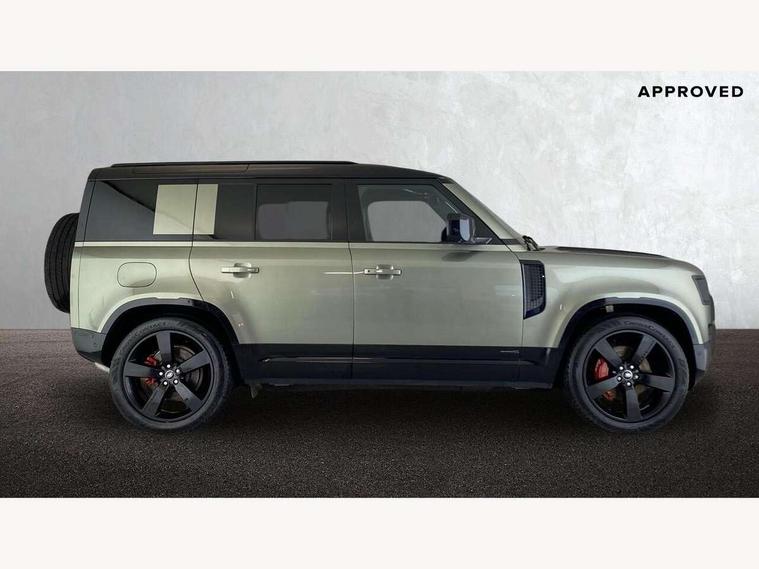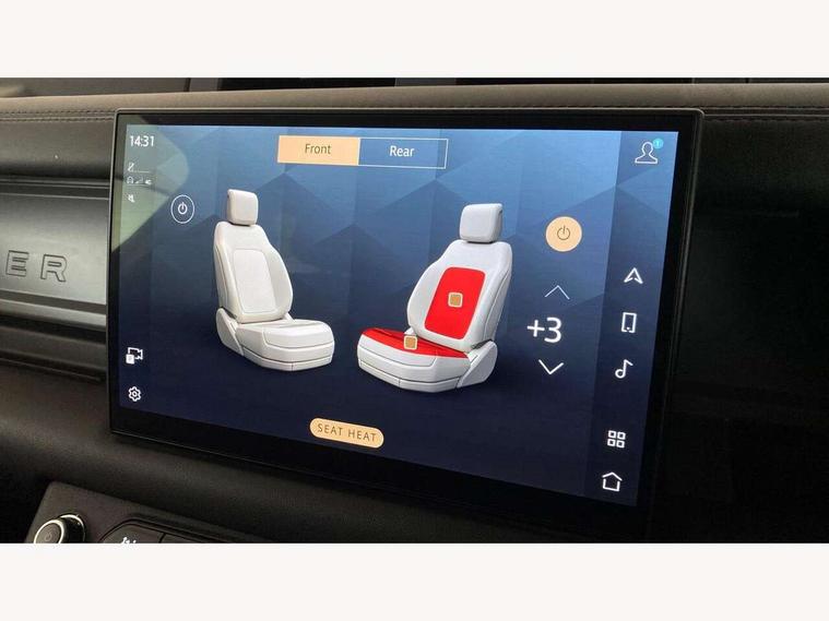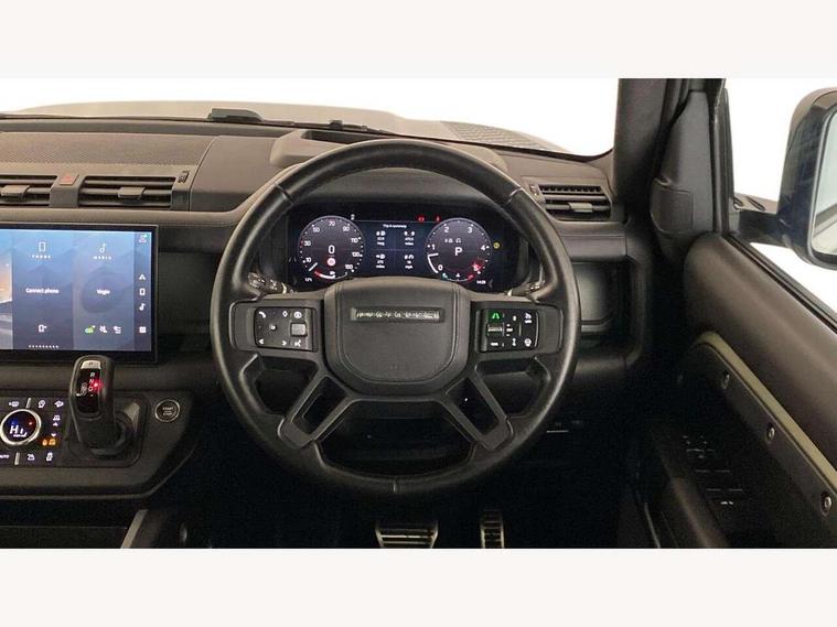 1 x USB-C (power only) & 1 x USB-C (power & data) in Row 1, 2 x USB-C in Row 2, 11.4" touchscreen, 2 x USB-C in Row 3, 360 degree parking aid, 3D Surround Camera with 360 View, 180 Rear View, Front Traffic Detection, Forward Vehicle Guidance, Tow Hitch Assist and clear sight Ground View, Adaptive cruise control, Android Auto, Apple CarPlay, Blind spot assist, Bluetooth system, Brake pad wear indicator, Clear exit monitor, Connected navigation pro, Driver condition monitor, Electric power assisted steering (EPAS), Head up Display, Interactive driver display, Lane keep assist, Push button start, Rear collision monitor, Rear traffic monitor, Traffic sign recognition with adaptive speed limiter, Trip computer, Wade Sensing, Wireless device charging, 8 speed automatic transmission, Adaptive dynamics, All terrain progress control, All wheel drive system, Configurable Terrain Response, Electronic active differential with brake torque vectoring, Electronic air suspension, Terrain Response 2, Twin speed transfer box, DAB Radio (Digital Audio Broadcasting), Meridian 700w surround sound audio system with 15 speakers, Pivi pro connected, Automatic headlight levelling, Automatic headlights, Centre high mounted stop light, ClearSight interior rear view mirror, Darkened LED tail lights, Electric heated/power fold door mirrors with approach lights and auto dimming driver side, Electric windows with one touch open/close and anti-trap, Follow me home lighting, Front fog lights, Heated rear window with timer, Heated windscreen, Illuminated metal treadplates with brand name script, Matrix LED headlights with signature DRL, Privacy glass, Puddle lights, Rain sensing windscreen wipers, Rear fog lights, Rear side wing doors, Rear wiper, Side hinged tailgate, Sliding panoramic roof, Standard tail door, Trailer stability assist, X badge, 12V power socket in loadspace, 14 way heated and cooled electric memory front seats with 4 way manual winged headrests, 2 seat bench in 3rd row, 3 seat bench in 2nd row, 60:40 load through climate rear seats with winged headrests, manual slide and recline and centre armrest, Alpine lights, Bright metal pedals, Configurable cabin lighting, Domestic plug socket, Durable rubber cabin flooring, Durable rubber loadspace flooring, Electric reach + rake adjustable steering column, Electrically adjustable steering column, Footwell lights, Front head restraints, Front passenger isofix child seat attachment, Heated steering wheel, Loadspace cover, Loadspace Hook, Multifunction steering wheel, No flat load floor storage, Overhead stowage for sunglasses, Rear headrests, Rear ISOFIX, Rear reading lights, Signature interior upgrade, Single front passenger seat, Soft close tail door, Storage glovebox, Sunvisors with illuminated vanity mirrors, Twin front cupholders, Family Comfort Pack - Defender 7 Seat, Non-smoker package, Online pack with data plan - Defender, 7 three point seatbelts, ABS, Brake hold function, Cornering brake control (CBC), Cross car beam in metallic grey powder coat brushed finish, Customer configurable autolock, Driver and passenger airbags, DSC - Dynamic Stability Control, EBD - Electronic brakeforce distribution, Electric parking brake (EPB), Emergency brake assist, Emergency braking, ESP + traction control, Front airbags with passenger seat occupant detector, HDC - Hill descent control, Hill launch assist, Low traction launch, Orange brake calipers, Power operated child locks, Remote for (e-Call, Optimised assistance call, InControl app, Climate, beep and flash and door), RSC - Roll stability control, Seat belt reminder, TPMS (Tyre pressure monitoring system), Alarm, Immobiliser, Intrusion sensor, Keyless entry, Locking wheel nuts, Secure tracker pro,
