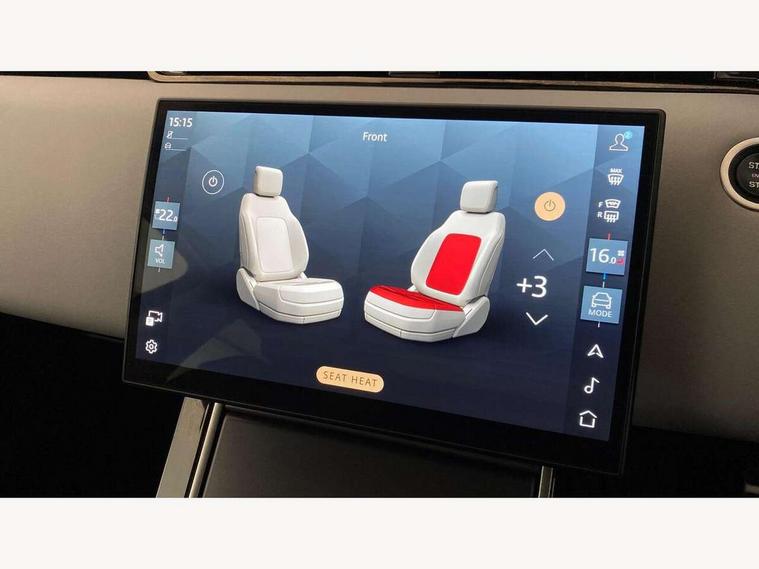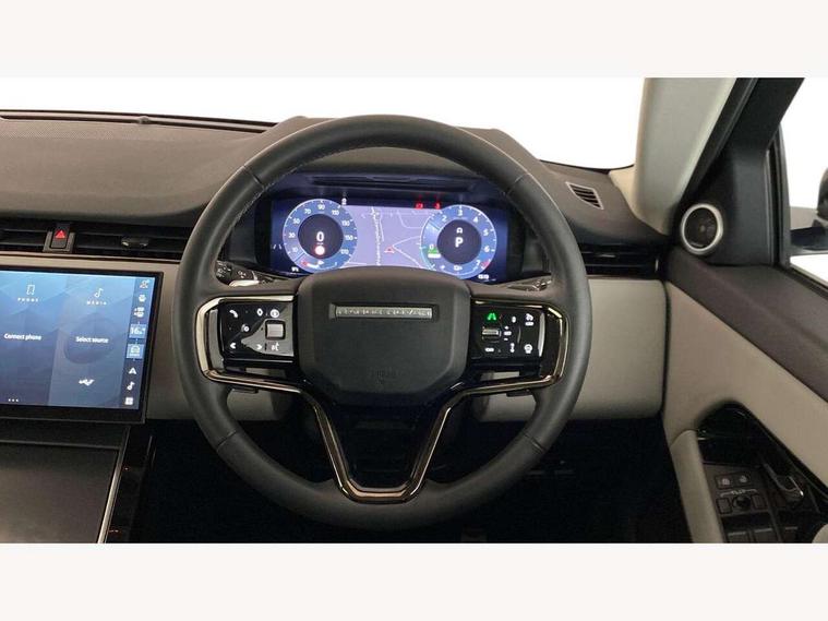 11.4" touch screen, Adaptive cruise control, Android Auto, Apple car play, Blind spot assist, Bluetooth connectivity, Brake pad wear indicator warning light, Driver condition monitor, eCall emergency system, Eco mode, Electronic power assisted steering (EPAS), Front and rear parking aid, InControl remote, Interactive driver display, Land Rover InControl apps, Lane keep assist, Pivi pro connected includes diamond pivi variant, smart settings, connected navigation pro, nuance speech licence, Powered tailgate/boot lid, Rear collision monitor, Rear traffic monitor, Traffic sign recognition with adaptive speed limiter, Voice control system, Wireless device charging, All terrain progress control, Electric rear axle drive, Home charging cable, Large fuel tank, Passive suspension, Public charging cable, Terrain Response 2, Digital Audio Broadcast radio-DAB, Steering wheel mounted controls, Acoustic laminated windscreen, Auto headlights, Auto high beam assist, Automatic headlight levelling, Electric windows with one touch open/close and anti trap, Flush deployable exterior door handles, Front and rear recovery eyes, Heated rear window with timer, Heated washer jets, Heated windscreen, LED headlights with signature DRL and LED tail Lights, Power fold, auto-dimming, heated door mirrors with approach lights and auto dimming driver side, Rain sensing windscreen wipers, Rear animated directional indicators, Rear fog lights, Rear side wing doors, Rear wiper, Side repeater indicators in mirror, Tailgate spoiler, Third brake light, Winter wiper park position, 12 way driver memory and 10 way passenger electric front seats with 2 way manual headrest + 4 way lumbar support, 40:20:40 split folding rear seats with centre headrest and armrest, Ambient interior lighting, Bright metal pedals, Carpet mats, Chrome tread plates with range rover branding Includes stainless steel loadspace scuff plate with etched graphic, Customer configurable single point entry, Front and rear cupholders, Heated front seats, Heated steering wheel, Isofix system on outer rear seats, Manually adjustable steering column, Overhead lighting console, Overhead stowage for sunglasses, Passive front head restraints, Rear air vents, Rear head restraints, Satin chrome gearshift paddles, SE Grained leather upholstery, Single passenger seat, Standard steering wheel with Moonlight Bezel, Sunvisors with illuminated vanity mirrors, Twin sliding front centre armrest, Online pack with data plan - Evoque, Power socket pack 2 - Evoque, 3 rear 3 point seatbelts, Anti-lock braking system (ABS), Brake hold function, Customer configurable autolock, DSC - Dynamic Stability Control, Electronic brake force distribution, Electronic parking brake, Electronic traction control, Emergency braking, Front and rear seatbelt reminder, Hill descent control, Hill launch assist, Low traction launch, Occupant protection assist, Passenger seat occupant detector, Power operated child locks, Roll stability control, Six airbags - Driver and passenger airbags/driver knee airbag/front side airbag and curtain airbags, Torque vectoring brake, Tyre pressure monitoring system, Alarm, Immobiliser, Intrusion sensor, Keyless entry, Locking wheel nuts,