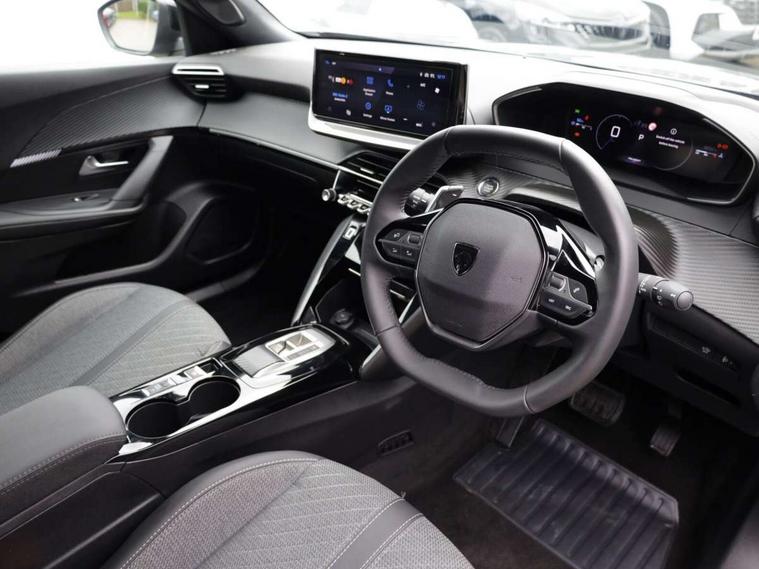 Bluetooth telephone facility, Driver attention warning, E-call, Exterior temperature indicator with ice warning, Front and rear parking sensors, Multi function trip computer, PEUGEOT i-Cockpit with 10" high definition capacitive touchscreen, PEUGEOT i-Cockpit with compact steering wheel, PEUGEOT i-Cockpit with configurable headup instrument panel, Speed limit recognition and recommendation, Wireless mirror screen with apple carplay and android auto, Petrol Particulate Filter, 1x USB-C socket in rear and 1x USB-A socket in rear, 2 USB-C ports in the front, 6 speakers radio with mp3 compatible, DAB Radio (Digital Audio Broadcasting), 2 X Rear number plate lights, Automatic hazard light activation upon heavy brake application, Black front wing trim with gloss black detail, Body coloured exterior door handles, Colour coded rear roof spoiler, Colour coded roof, Dark tinted rear side and tailgate windows, Diamond black mirror shells, Eco LED headlights, Electric, heated, and power folding door mirrors, Electrochrome rear view mirror, Front bumper - Meteor grey lower trim, Gloss black finish on B pillar, Gloss black rear cluster connecting strip, Gloss black roof bars, Headlights left on audible warning, LED daytime running lights with distinctive 3 claw signature, LED side indicator lights integrated into door mirrors, LED third brake light, Model designation badges front and rear, One touch electric front/rear windows with pinch protection, Radiator grille - Body coloured top edge trim, Radiator grille - body coloured vertical chequered grille, Rear full LED 3D peugeot signature claw effect lights with daylight function, Rear reversing lights, Rear side wing doors, Rear windscreen wiper triggered automatically in reverse gear, Tailgate with heated rear windscreen and wiper blade, Twin chromed exhaust pipes, Wheel arch extensions, 1/3 to 2/3 split folding rear seats, 12V socket, 3 seat bench in 2nd row, Automatic air conditioning with pollen and active carbon filter, Central front armrest with storage compartment, Driver and front passenger comfort seats, Driver seat manual adjustment - height, longitudinal and back rest angle, Electric power steering with reach and rake adjustable steering column, Front LED interior light with 2 reading spotlights and rear interior light with timer, Front passenger seat manual adjustment - height, longitudinal and back rest angle, High centre console, Leather steering wheel, Multifunction steering wheel, Piano keys: Gloss black and chrome toggle switches to access main functions of the vehicle and touchscreen functions, Roof lining - Mistral black, Seatbelt unfastened on the move audible and visual alert for front and rear seats, Single front passenger seat, Tri material cloth/leather effect upholstery, Visibility pack - 2008, 2x 2nd row ISOFIX child seat mountings, ABS (Anti-lock Braking System) with EBD (Electronic Brakeforce Distribution) and EBA (Emergency Braking Assistance), Active safety brake with night function/cyclists/pedestrians, Adaptive driver and front passenger airbags with passenger airbag deactivation function, Child locking functionality on rear doors, Driver/front passenger side airbags, Electric parking brake, ESP (Electronic Stability Program) + Hill Start Assist, Front and rear curtain airbags, Front and rear disc brakes, Front and rear three-point retractable seatbelts, with force limiters, Front optimised safety headrests and rear retractable headrests (x3), height adjustable, Tyre pressure sensor, Automatic door locking when moving off, Deadlocks, Electronic code immobiliser, Thatcham category 1 alarm, Carbon effect Dashboard, front and rear door panel finish, 17" Karakoy diamond cut alloy wheels,