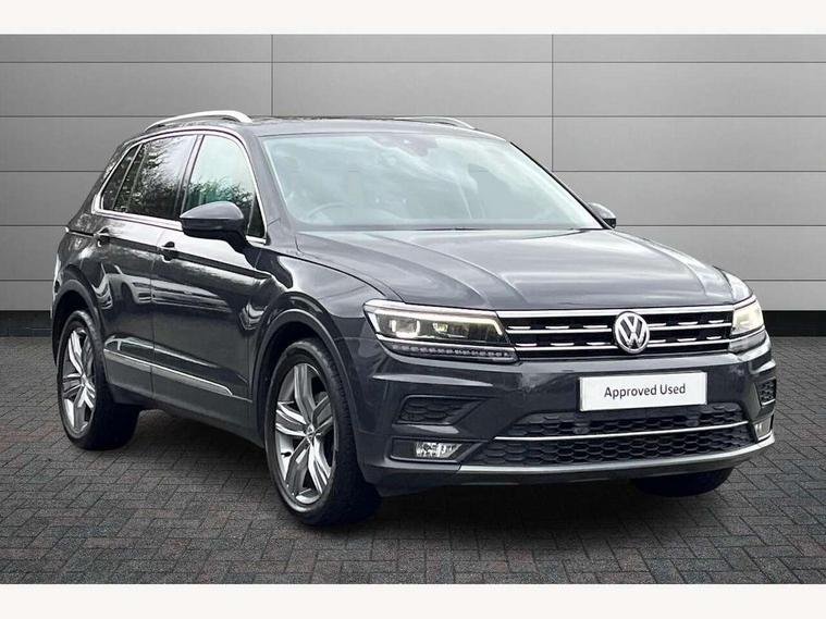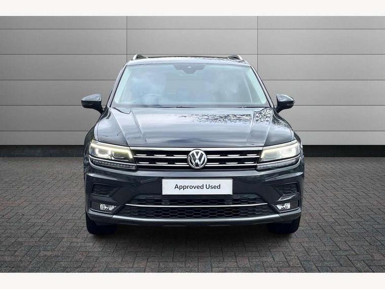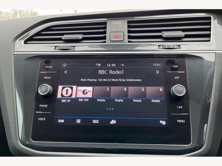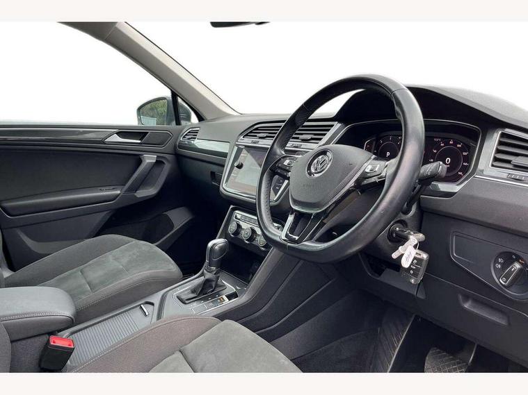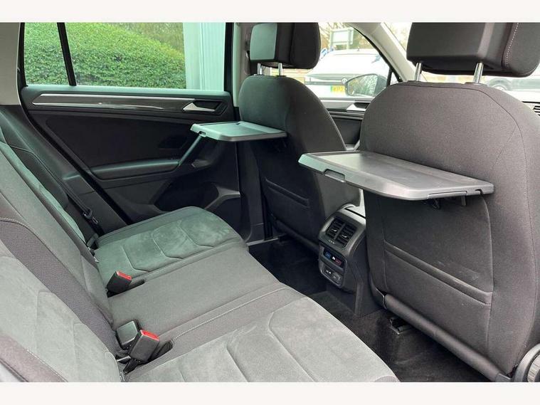 App-Connect, Active information display, Adaptive cruise control, Bluetooth phone integration system, Car-Net Security and Service, Distance control assist, Driver profile selection, Fatigue detection system, Front assist, radar sensor controlled distance monitor, city emergency braking + predictive pedestrian protection, Instrument cluster, Lane assist, Low washer fluid warning light, Multifunction colour display, Outside temperature display, Service interval indicator, Speed limiter, Start/Stop function, Warning lights, Diesel particulate filter, Misfuel prevention device for diesel engine, XDS electronic differential lock, 2x USB sockets in front, 4 X 20 watt output, DAB Digital radio, MP3 compatible single CD player, SD card slot, Simultaneous pairing of 2 compatible mobile devices, SMS functionality - read, compose and send SMS messages using touch-screen display, Title and cover art display, 3D effect cherry red LED rear tail lights, Auto dimming interior mirror, Automatic activation of hazard warning lights, Black door protector with chrome inserts, Body colour door handles, Body colour door mirrors, Body coloured bumpers, Chrome side body trim, Chrome side window surrounds, Chrome trimmed radiator grille, Coming/leaving home lighting function, Dusk sensor + auto driving lights, Electric folding door mirrors, Electric heated + adjustable door mirrors, Electric panoramic sunroof with sunblind, Front air intake with chrome strip, Front and rear electric windows, Halogen clear headlights with integrated indicators and range adjustable, Heated rear window, Heated windscreen washer jets, High level 3rd brake light, LED headlights with dynamic light assist daytime running lights and cornering front fog lights, LED rear number plate lights, Rain sensor windscreen wipers, Rear windscreen washer and wiper with interval delay, Side door sills with chrome inserts, Side skirts and rear bumper with chrome insert, Silver rear diffuser trim, Silver roof rails, Silver under body guard, Tinted windows (B pillar backwards), Windscreen wipers/ intermittent wipe + 4 position delay, 12V Accessory socket in centre console, 3 rear headrests, 3 zone climate control, 4 load lashing points, 40:20:40 split folding rear seats, Bag hook in luggage compartment, Driver + front passenger lumbar support, Foldable passenger seatback, Front + rear carpet mats, Front centre armrest with 12v socket, Front centre armrest with storage + rear 2 air vents + cupholders, Front seat back storage pockets, Front seatback folding tables, Height/reach adjust steering wheel, Illuminated driver/passenger vanity mirrors, Illuminated scuff plates, Instrument lighting white adjustable panel illumination, Interior light with delay, Isofix Preparation 2 Rear child seats, Leather gear knob, Load through provision with 2 cupholders when folded, Lockable cooled glovebox, Luggage compartment lighting, Luggage compartment side storage, Map pockets on front seats, Passenger seat height adjuster, Passenger underseat drawer, Rear cupholders, Removable luggage cover, Sliding/reclining rear seats, Storage compartment in driver's door, Storage compartment in passenger's door, Storage compartment in rear doors, Storage tray on dashboard, Sunglasses storage, Variable boot floor, Ambient lighting pack - Tiguan, 3 rear 3 point seatbelts, ABS+EBD+Brake assist, Active bonnet, Active pedestrian safety system, Curtain airbags, Driver/Front Passenger airbags, Driver/Passenger whiplash optimised head restraints, Drivers knee airbag, DTC - Drag torque control, Electronic parking brake with auto hold, ESP with EDL + ASR, First aid kit, Front side airbags, Front ventilated disc brakes and rear disc brakes, Head airbag system, Height adjustable front 3 point seatbelts + pretensioners, Hill hold control, Passenger airbag deactivate switch, Passenger knee airbag, Pre crash system, Rear side airbags, Rigid safety cell with front and rear crumple zones, Seatbelt warning lamp and buzzer, Two tone horn, Warning triangle, Alarm with interior protection, Electronic engine immobiliser, Remote central locking with 2 remote folding keys, Chrome door trim inserts, Piano black interior trim, Steel space saver spare wheel,