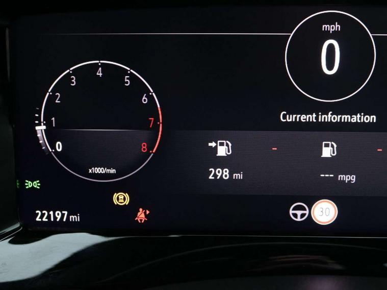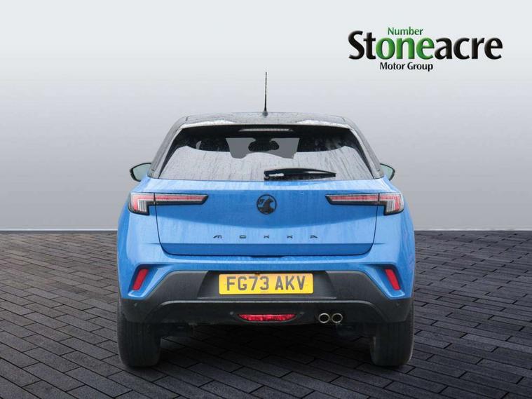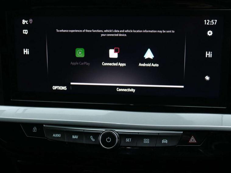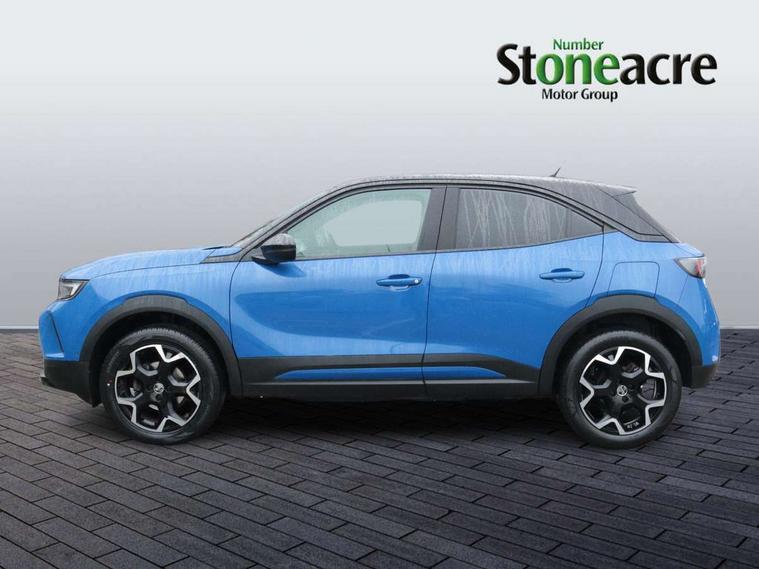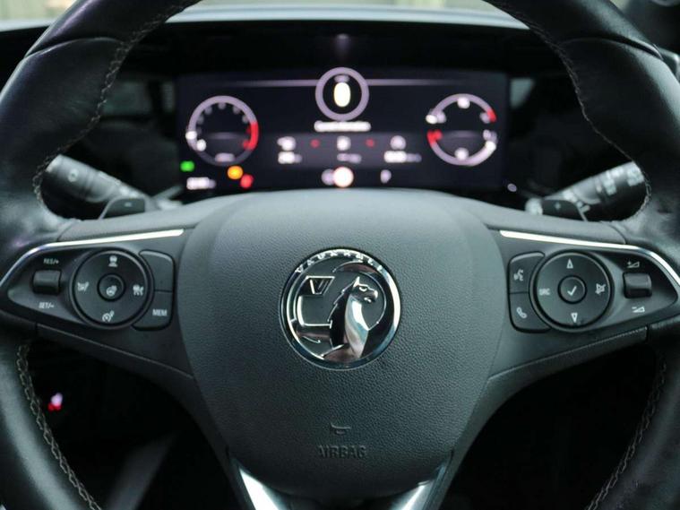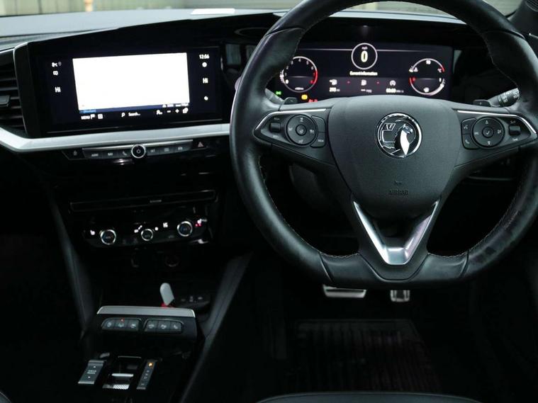 12" digital instrument cluster, Adaptive cruise control with speed limiter, Advanced Park Assist, Digital instrumentation with digital speedometer, rev counter, fuel and water temperature gauge, Driver information display with multi function trip computer, audio info, digital clock and outside air temperature with ice warning function, Engine start/stop button, EV information display, Extended traffic sign recognition, Front and rear parking distance sensors, Front camera and radar system, Lane keep assist system (LAS) with Lane departure warning system (LDWS), Lane positioning assist, Lights on audible warning, Panoramic rear view camera, Power assisted speed sensitive steering, RDS with traffic programme, Side blind spot alert and flank guard, Smartphone integration compatible with Apple CarPlay and Android Auto, Sports switch with engine sound enhancement, Start/stop system, Vauxhall connect with e-Call, Wireless charging for smartphone, 8 speed automatic transmission, 6 speakers, AM/FM stereo radio with 36 station presets, DAB Digital radio, Flexible Roof Mounted Radio Aerial, Front USB connection, Mobile phone portal - bluetooth connect, vehicle microphone, handsfree calls, SMS read out and reply, phone book access, Multimedia Navi Pro with 10" colour touchscreen, Steering wheel mounted controls, Two rear USB sockets, Adaptive brake lights, Automatic headlamp levelling, Automatic lighting control with tunnel detection, Automatically dimming anti dazzle rear view mirror, Black door mirror housings, Black front and rear bumper inserts, Black Griffin logo and vizor frame, Black upper window moulding, Body colour door handles, Body colour front and rear bumpers, Dark tinted rear side windows + tailgate window, Electric adjustable/heated/folding door mirrors + puddle lights, Electrically operated front and rear windows with safety auto reverse and one touch up/down facility, Hazard warning lights, Heated rear window+rear wash/wipe, High beam assist with anti glare, Integrated black tailgate spoiler, IntelliLux Matrix LED headlights with adaptive forward lighting, LED 3rd brake light, LED daytime running lights, LED front fog lamps, LED side repeat indicators, LED tail lights, Rear foglight, Rear side wing doors, Reversing light, Solar heat absorbing windscreen and windows, Two speed rain-sensitive windscreen wipers with variable intermittent wipe, Windscreen and side window demist vents, 12V Accessory socket, 3 seat bench in 2nd row, 3 spoke flat bottomed leather steering wheel with satin chrome bezel, 4 speed fan with illuminated controls, 6 way manual adjustable driver fore/aft, up/down with reclining seatback, 6 way manual adjustable front passenger fore/aft, up/down with reclining seatback, 60/40 split folding rear seat, Air recirculation system, Alcantara/leather upholstery, Alloy sports pedals, Black headliner, Cabin particulate filter - removes dust, airborne particles and pollen, Centre console with two cup holders at front and one in rear, Chrome effect interior door handles, Door pockets with two litre capacity, Driver and passenger sun visors with vanity mirror, Driver seat with lumbar and massage function, Electronic climate control (ECC), Four adjustable facia vents, Four load restraint lashing eyes, Front centre armrest with storage, Front head restraints, Front map reading lights, Front seat back storage pockets, Fully carpeted load area, Heated front seats, Heated steering wheel, Interior courtesy light, Interior tailgate handle, Luggage compartment cover, Luggage compartment lighting, Movable boot floor, Reach + rake adjustable steering column, Single front passenger seat, Steering wheel mounted paddle shift, Three height adjustable rear seat head restraints, Twin gas assisted tailgate struts, Black Pack with badge - Mokka, 2x Isofix child seat fitting on outer rear seats, 3x3 point rear seat belts, Anti-lock braking system (ABS), Child proof locks on rear doors, Cornering brake control, Deactivation switch for front passenger front and side impact airbags, Drag torque control, Driver and front passenger airbags, front seat side impact airbags, full size curtain airbags, Driver drowsiness alert system, Electronic brake force distribution, Electronic Stability Programme (ESP), Emergency brake assist, Enhanced automatic emergency braking with pedestrian detection, Forward collision alert at all speed, Hill start assist, Inertia reel lap and diagonal seatbelts for all seats, Seatbelt unfastened audible warning and warning light, Straight line stability control, Traction control, Tyre pressure monitoring system, Electronically protected audio equipment, Engine deadlock immobiliser, Freewheeling door locks, Key left in ignition audible warning, Keyless entry and start, Locking wheel nuts, Remote control central locking, Remote control ultrasonic security alarm system, Visible vehicle identification number, Atlantis black trim inserts of front doors, Black facia with silver trim insert, Instrument panel bar in polar silver, 18" bi colour alloy wheels,