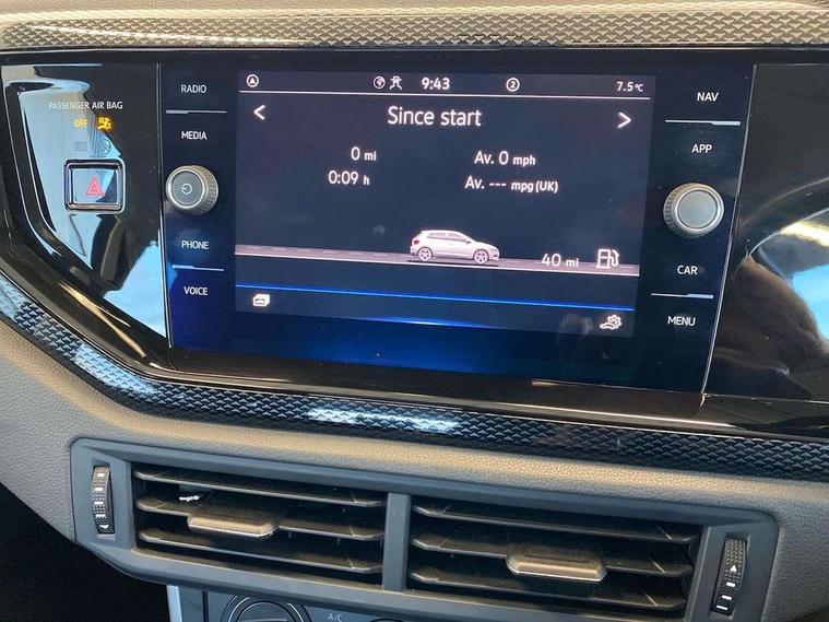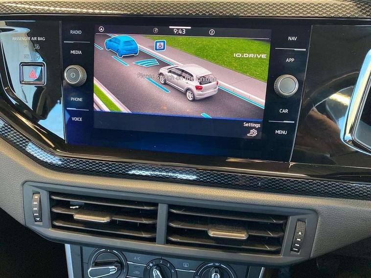 Adaptive cruise control without follow-to-stop and speed limiter, Bluetooth mobile phone interface, Driver alert system, Emergency call service, Front assist system, Power assisted speed sensitive steering, Preparation for We connect and We connect plus, Speedo and rev counter, electronic odometer, trip, service interval display and fuel gauge, Standard rear axle, Travel Assist - Lane keeping system and traffic jam assist, Travel assist including emergency assist, Trip computer, Warning signal and warning light for front and rear seatbelts not fastened, Washer fluid level indicator, Wireless app connect, Front wheel drive, Rear shock absorpion, Start-stop system with battery regeneration (recuperation - energy recovery during braking), DAB Digital radio, Diversity antenna for FM reception, Front and rear 6 speakers, Automatic dimming interior rear view mirror, Body colour bumpers, Body colour door handles, Body colour door mirrors, Electric front windows, Heat insulating darkened glass in side and rear windows, Heat insulating glass windscreen, Power folding adjustable/heated exterior mirrors and front passenger exterior mirror lowering function, Rain sensor, Rear electric windows, Rear fog light, Rear side wing doors, Rear windscreen washer and wiper with interval delay, Third brake light, 12V power socket in centre console, 2 front and 2 rear reading lights, 2 USB-C ports in the front, 2 USB-C charging sockets on the center console in the rear, 3 rear head restraints, 60/40 split folding rear seat and rear seat bench not split, Ceramique headliner, Chrome plated radiator grille inserts, air vent surrounds and light switch surrounds, Door and side trim panel, Driver and front passenger seat height adjustment, Driver/passenger sunvisors with illuminated vanity mirrors, Front centre armrest, Front seat backrest storage pockets, Front standard seats, Handbrake lever handle in leather, Hartley/Thomas cloth upholstery, Isofix child seat preparation easy-fit (for two outer rear seats, and front passenger seat) compatible with I-size, Leather trimmed gear knob, Luggage compartment cover, Luggage compartment floor, Luggage compartment lighting, Multifunction steering wheel, Single front passenger seat, Standard pedal cluster, Light and vision pack - Polo, 3 point height adj front seatbelts + pretensioners, 3x3 point rear seatbelts, ABS, Driver and front passenger airbag with front passenger airbag deactivation, Drivers and front passengers safety optimised head restraints, ESC (Electronic stability control) + EDL (Electronic Differntial lock) and ASR (Traction control), Extended and predictive pedestrian/ cyclist protection, Front curtain and side airbags with center airbag, Front disc brakes, Hill hold control, Manual child lock in rear doors, Rear drum brakes, Single tone horn, Tyre pressure loss indicator, Alarm with interior protection, Anti-theft alarm system with interior monitoring, backup horn, and towing protection, Anti-theft wheel bolts, Electronic engine immobiliser, Lava stone black gloss/matt decorative inserts in dash and front door panels, Low rolling resistance tyres,