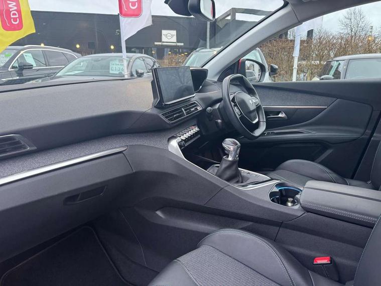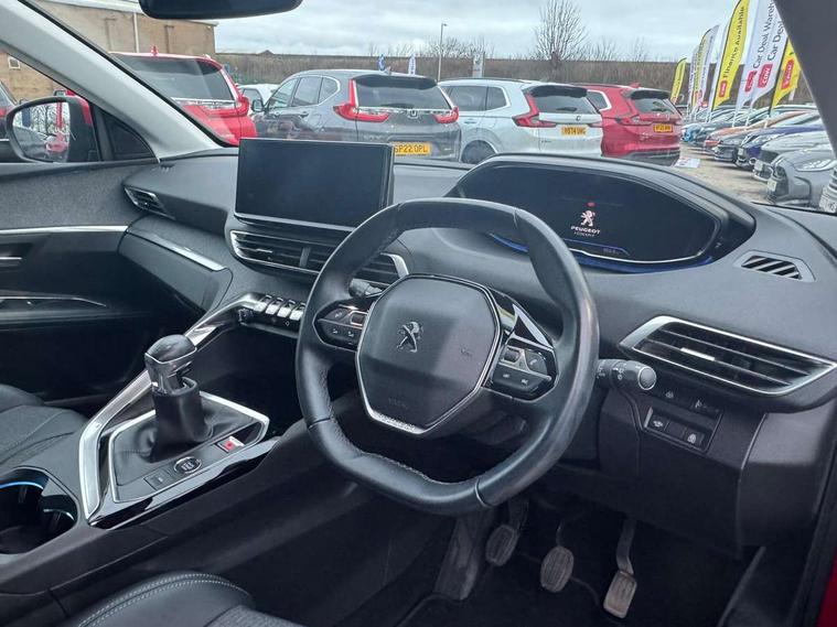 3D connected navigation with 10" HD touchscreen + voice recognition system, Bluetooth telephone facility, Driver attention alert system, Extended traffic sign recognition, Exterior temperature indicator with ice warning, Front parking sensors, Lane departure warning system, Mirror screen with mirror link, apple carplay and android auto, Multi function trip computer, Passive blind spot monitoring without Steering correction, PEUGEOT i-Cockpit with 8.0" capacitive touchscreen in centre console, Peugeot i-cockpit with compact multi-function sports steering wheel, PEUGEOT i-Cockpit with configurable 12.3" Head-up digital instrument panel, PEUGEOT SOS and assistance, Programmable cruise control and speed limiter, Rear parking aid, Speed limit recognition and recommendation, Dynamic stability control and electronic anti-skid system, Stop/start function, 6 speakers radio with mp3 compatible, DAB Digital radio, USB socket, Aluminium longitudinal roof bars, Automatic hazard light activation upon heavy brake application, Automatic triggered rear windscreen wiper in reverse gear, Black rubber side window trim, Body colour door handles, Body colour door mirror shells, Body colour rear roof spoiler with stainless steel edging trim, Body protectors (bottom of front and rear bumpers + wheel arches + protection at bottom of doors) in black, Chrome front wing trim, Chrome rear bumper facia, Dark tinted rear side windows + tailgate window, Eco LED headlights, Electric folding door mirrors, Electric operated/heated door mirrors, Front and rear door and sill protectors with polished stainless steel insert, Front windscreen wiper with magic wash cleaning system, Gloss black B and C pillar and aerodynamic deflector trim, Gloss black front bumper air scoops, Gloss black rear cluster connecting strip, Headlights left on audible warning, Heated rear windscreen with integrated antenna, LED daytime running lights, LED rear number plate lighting, LED side indicator lights integrated into door mirrors, LED third brake light, One touch electric front/rear windows with pinch protection, Radiator grille in chrome edge trim and facets, Rear LED Peugeot signature 'Claw Effect' lights, Rear side wing doors, Stainless steel roof arches, 1/3 to 2/3 split folding rear seats, 12V Sockets in dashboard, rear cabin and load area, 2 cupholders in front centre console, 2x Rear coat hooks, 3x Isofix child seat fittings in the front passenger and outer rear seats, 4 Grab handles retractable and damped, Blue ambient lighting for connecting zone, Blue ambient lighting to front door panels, central storage and cupholders, Brumeo fabric trimmed door armrests, Centre front armrest with butterfly wing opening and illuminated storage compartment, Dual zone automatic climate control, Electric power steering with reach and rake adjustable steering column, Flocked glovebox interior, Foldable front passenger seat, Footwell illumination, Front interior light with 2 reading spotlights and rear interior light with timer, Front seat back map pockets, Gear shift indicator, Height adjustable front seats, Illuminated glovebox, Individual left and right controls in boot for seat folding, Leather steering wheel with detail stitch, LED interior lighting in storage spaces and load area, Rear bench seat with central armrest and ski hatch, Rear centre console ventilation system, Roof lining - Salin light grey, Satin chrome dashboard trim, Satin chrome digital instrument panel and touchscreen trim, Satin chrome front door panel recess trim, Satin chrome interior door handles, Satin chrome scorpion's tail and toggle switch trim, Seatbelt not fastened audible and visual alert for front seats, Seatbelt unfastened on the move audible and visual alert for front and rear seats, Sunvisors with illuminated vanity mirrors, Two position boot floor, Safety pack with emergency braking system - 3008, Safety plus pack with high beam assist - 3008, Visibility pack - 3008, 3x Rear three-point retractable seatbelts with force limiters in the outer rear seats, ABS (Anti-lock Braking System) with EBD (Electronic Brakeforce Distribution) and EBA (Emergency Braking Assistance), Adaptive driver and front passenger airbags with passenger airbag deactivation function, Driver and front passenger side airbags, Electric child locking functionality on rear windows and doors, Electric parking brake, Front and rear curtain airbags, Front optimised safety headrests and 3 x rear retractable headrests with height adjustable, Front three point retractable seatbelts with pre tensioners and force limiters, Front ventilated disc brakes and rear disc brakes, Hill start assist, Two tone horn, Automatic door locking when moving off, Electronic immobiliser, key operated exterior door lock from the left hand door, Perimetric and volumetric alarm with lift and tilt sensor, Peugeot Open and Go System, Remote control central locking with two plip keys, Brumeo fabric Dashboard, front and rear door panel finish, Puncture repair kit including compressor, sealant cartridge and towing eye,
