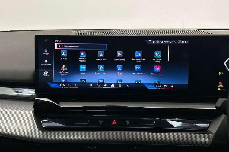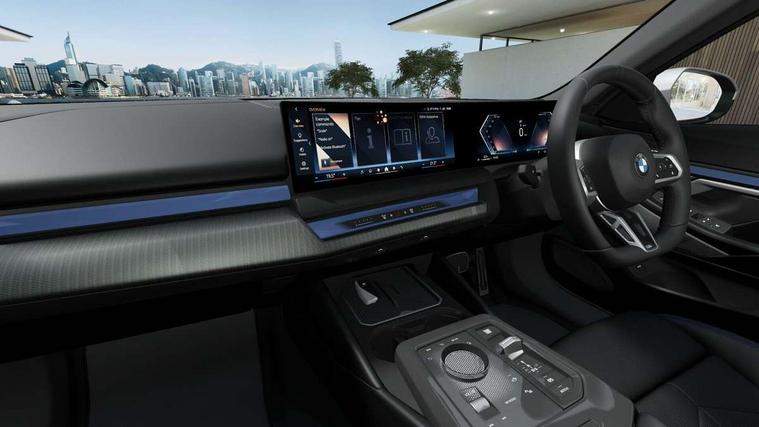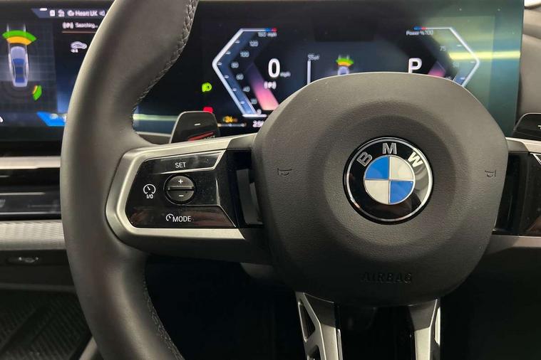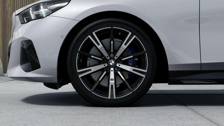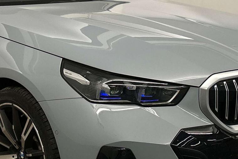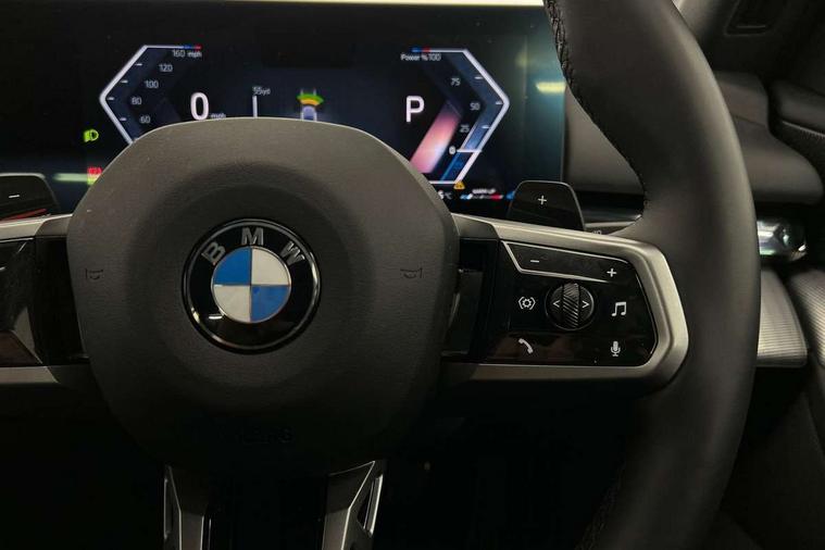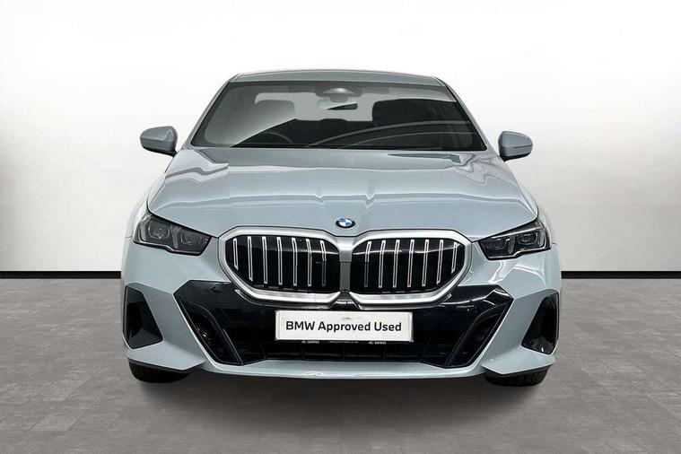 BMW ConnectedDrive online services, BMW legal emergency call, BMW Teleservices, Brake pad wear indicator, Cruise control with brake assist, Driving Assistant Plus Preparation, Front collision warning with brake intervention, Lane departure warning with active return, Left turn warning with brake function, Multifunctional instrument panel, Oil sensor for level and grade, On board computer inc. average speed, fuel consumption, liquid crystal Info display, journey computer, outside temperature display, personal profile, On-board diagnosis - OBD, PAS, Personal e-SIM, Powered by Operating System 7.0, Run flat indicator, Service interval indicator, Speed limit Info with manual speed limit assist, Stop/start button, 8 speed automatic steptronic transmission with gearshift paddles, DAB tuner, Acoustic glazing, Adaptive LED Headlights, Automatic cornering lights, Automatic windscreen wipers and automatic headlight, BMW selective beam, Body colour door handles, Body coloured bumpers, Dynamic brake lights with LED technology, Electric adjustable door mirrors, Electric front and rear windows with fingertip open/close + anti-trap facility and comfort closing function, Follow me home headlight function, Headlight elements in blue, Heated windscreen washer jets, LED daytime running lights, LED third brake light, Light colour close to that of ordinary daylight, Optimum, homogeneous illumination of the road, Rear boot, Rear side wing doors, 2 zone automatic air conditioning, 3 seat bench in 2nd row, 3 spoke leather M steering wheel in BMW M specific design with M badge, Armrest - front and rear integrated door trim, centre console includes storage compartment, rear centre includes 2 cupholders, Child seat ISOFIX attachment with rear outer seats includes top tether, Coat hook on upper B-pillar panel, Electric adjustable steering column, Electrically adjustable lumbar support for driver and front passenger, Heated driver and front passenger seats, High-gloss black door switch cluster, power window switch and tailgate button on first and second row seat, M Anthracite headlining, M Sport pedal covers in stainless steel, Rear headrests, Single front passenger seat, Through loading system with 40/20/40 rear seat backrest split, Velour floormats, Wireless charging tray, Ambient lighting pack - 5 Series/I5, Connected package professional - 5 Series/I5, Driving assistance pack - 5 Series/I5, Expanded exterior mirror package - 5 series/I5, M high gloss shadow line pack - 5 Series/ I5, M Sport exterior styling pack - 5 Series/I5, 3 rear three point seatbelts, Active protection, Airbag deployment is controlled with respect to the intensity and scope, Anti-lock braking system (ABS), Brake assist, Brake energy regeneration, Cornering brake control (CBC), Crash sensor activating central locking release, hazard warning lights, fuel cut off and interior lighting, Driver and front passenger airbags, Driver central airbag, Driver/front passenger side airbags, DSC - Dynamic Stability Control, Dynamic brake control, Dynamic Traction Control - DTC, Electromechanical parking brake with automatic drive away release and auto hold function, Electronic brake force distribution, Engine drag torque control, Front and rear brake discs with interior ventilation, Front and rear curtain airbags, Front head restraints with anti-whiplash, Head airbags for first and second row seats, Hill start assist, Locking of doors after driving off, M Sport brake in blue high gloss painted brake callipers with monochrome logo on front calliper, Mechanical child proof lock on rear doors, PC iBrake PostCrash approach control warning with light braking function, Side impact protection, Trailer stability control, Two tone horn, Tyre pressure monitoring system, Warning triangle and first aid kit, Alarm system, Locking wheel bolts including wheel bolt adapter, Tyre repair kit plus,