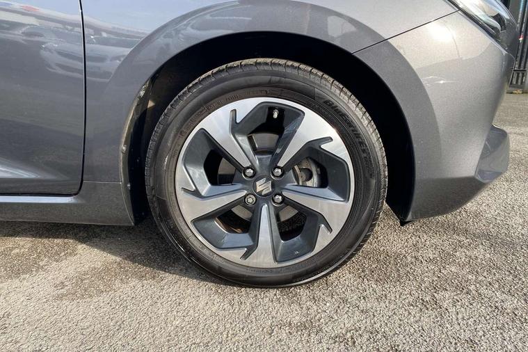 Adaptive cruise control with Stop and Go, Automatic start/stop system, Blind spot monitoring, Colour LCD information display, Digital clock, Driver monitoring system, eCall, Fuel consumption display (average/instantaneous) and range display, Intelligent speed control support, Lane departure prevention, Lane departure warning system, Lane keeping assist (LKA), Low fuel level warning light, Navigation system, Outside temperature display, PAS, Rear cross traffic alert, Rear parking camera, Rear parking sensors, Remote fuel cap release, Smartphone integration with Apple CarPlay and Android auto, Suzuki connect, Tailgate, Traffic sign recognition, Weaving alert, 4 speakers + 2 tweeters, 9-inch infotainment display, Auxiliary input socket, Bluetooth audio streaming, DAB Digital radio, Steering wheel audio controls, USB Type A and C, 'Guide me home' headlamps, 1 speed with intermittent rear wiper + washer, 2 speeds front wiper with intermittent + washer, Automatic headlights, Black coloured A & B pillars, Black Upper and lower front grille, Body colour door mirrors and handles, C pillar trim moulding, Door mirrors with built-in turn signal lamp, Electric door mirrors, Electric folding door mirrors, Electric front windows, Electric rear windows, Green tinted glass, Heated door mirrors, High beam assist, LED daytime running lights, LED High mounted stop light, LED number plate light, LED position lamps, LED projector headlamps, LED rear combination lamp, Manual headlamp level control, Rain sensor, Rear fog lights, Rear privacy glass, Rear side wing doors, Rear spoiler, Side spoiler, 1 cup holder in rear, 12V Accessory socket in front console, 2 cup holders in front, 2 Isofix seat anchors, 3 bench rear seats in 2nd row, 3 rear head restraints, 3 spoke leather covered steering wheel, 60/40 split rear seats, Accessory socket, Automatic air conditioning, Centre console storage, Centre lower box, Child seat tether anchorages x 2, Chrome handbrake release button, Chrome interior door handles, Cloth upholstery, Door pockets with bottle holder, Driver/passenger sunvisors with ticket holders + vanity mirrors, Front cabin lights, Front headrests, Front map light, Front passenger side assist grip, Gearshift paddles, Glovebox, Heated front seats, Heater, Height adjustable driver's seat, Luggage area lamp, Painted interior door trim ornament, Parcel shelf, Passenger seat back pocket, Pollen filter, Rear assist grips x2, Rear heater duct, Single front passenger seat, Tilt adjustable steering wheel, Tilt/telescopic adjustable steering wheel, 3 point ELR seatbelts for centre seat, 3 point ELR seatbelts front and rear, ABS+EBD+Brake assist, Curtain airbags, Driver airbag, Dual sensor brake support, ESP + traction control, Front and rear seatbelt reminder, Front passenger airbag, Front passenger airbag deactivation, Front seat seatbelts shoulder height adjuster, Front seatbelt pretensioners with force limiters, Hill hold control, Rear child proof door locks, Rear seatbelts with pre-tensioners and load limiters, Side airbags with incorporated into front seats, Tyre pressure indicator, Deadlocks, Freewheeling key cylinders, Immobiliser, Keyless entry and start, Light - on and Key in reminder, Locking wheel nuts, Remote central locking, Painted instrument panel ornament, 16" Polished alloy wheels, Emergency flat tyre repair kit,
