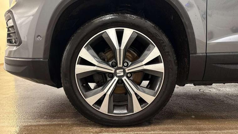 8" Digital cockpit, Colour multi-function on board computer display, Cruise control system with speed limiter, E-call, Outside temperature gauge, PAS, Self parking functionality (includes front and rear parking sensors), Start/stop system, Tailgate, Trip computer, Wireless full link smartphone integration, Wireless phone charger, Steering wheel mounted audio/phone controls, Black wheel arch surrounds, Body colour bumpers, Chrome front grille frame, Chrome roof rails, Chrome side window trim, Daytime running lights, Door mirrors with welcome light silhouette, Dynamic headlight range control with self adjusting whilst driving, Electric adjustable/heated/folding door mirrors, Front and rear electric windows, Full LED headlamps with lens and LED front fog lamps with cornering function, LED rear tail lights with dynamic indicators, Rear fog lights, Rear side wing doors, Rear wash/wipe, Simulated exhaust pipes, Third brake light, Variable front intermittent wipers, 12V socket in front, 3 seat bench in 2nd row, 60/40 split folding rear seat, Cloth upholstery with front comfort seats, Drawer under right front seat, Dual zone climate control, Front and rear head restraints, Front centre armrest, Front seat back storage pockets, Height adjustable driver and passenger seat with lumbar adjustment, ISOFIX points in outer rear seats with top tether anchorage points, Leather steering wheel and gear knob, Rear armrest and easy back seat release mechanism from boot, Single front passenger seat, Interior lighting pack - Ateca, Navigation system pack with DAB - Ateca, 3x3 point rear seatbelts, ABS, Traction control system (TCS), Electronic stability control (ESC) and Electronic differential lock system (XDS), Airbags - Driver and front passenger airbag with deactivation, front side, two curtain and driver's knee airbags, Electric parking brake with auto hold function, Front and rear seatbelt reminder, Front assist with autonomous emergency braking, Hill hold control, Manual rear child locks, Single tone horn, Tiredness recognition system, Traction control, Tyre pressure monitoring system, Alarm, Keyless entry, Locking wheel bolts, Remote central locking, Chrome interior detailing, 18" Performance machined alloy wheels 36/2 in nuclear grey,
