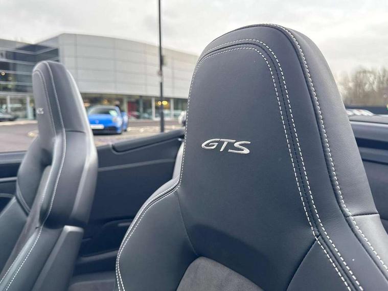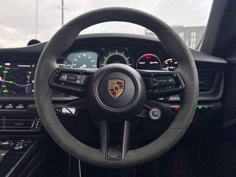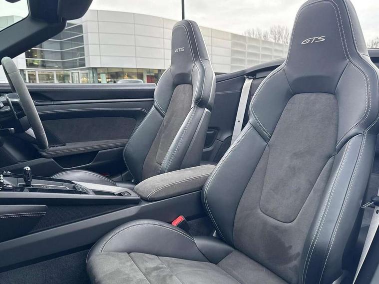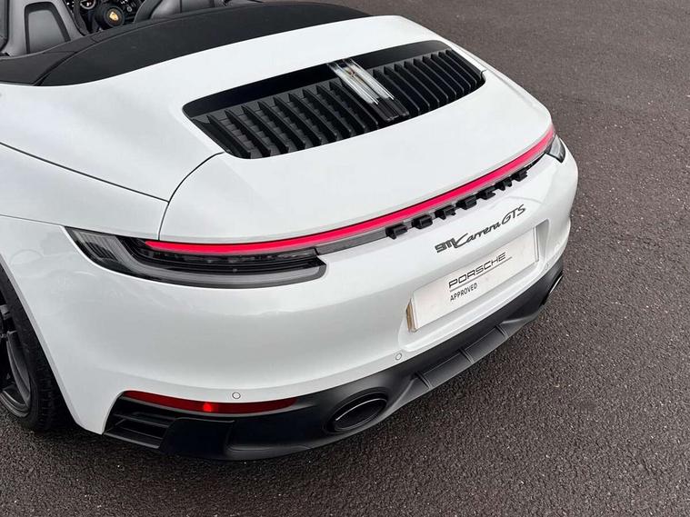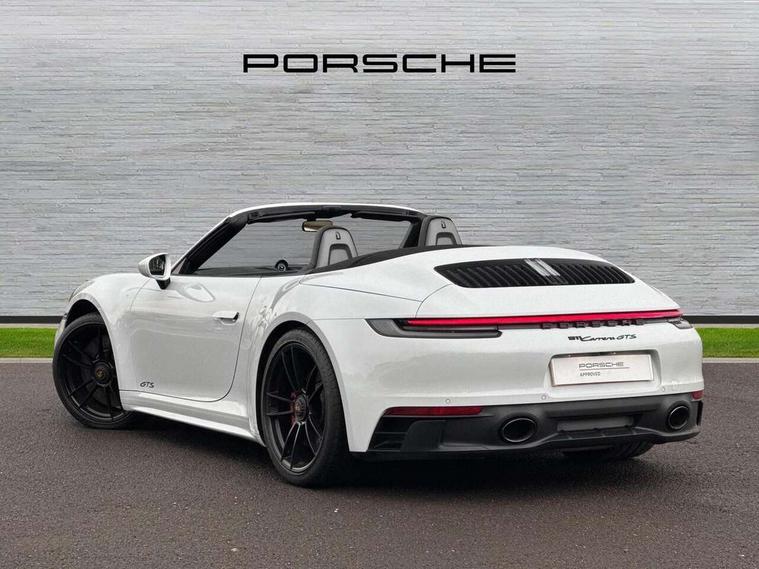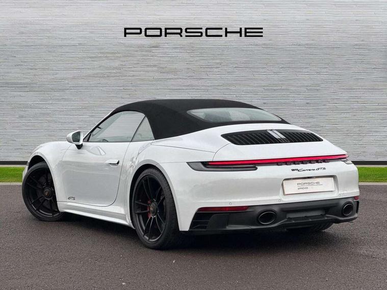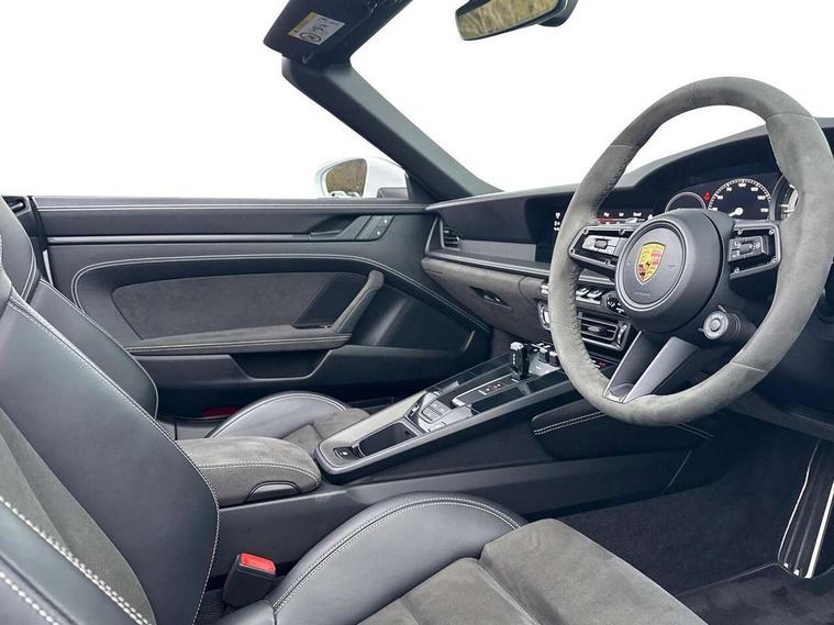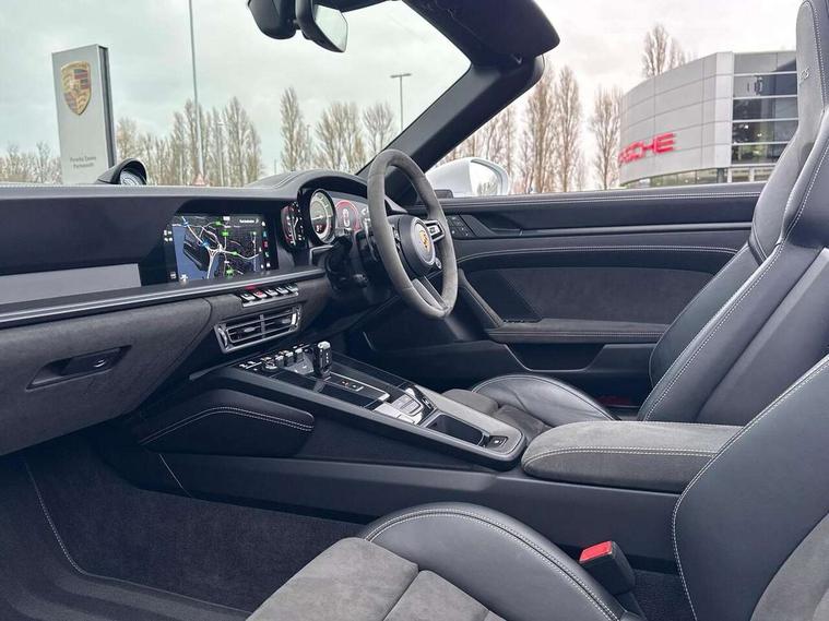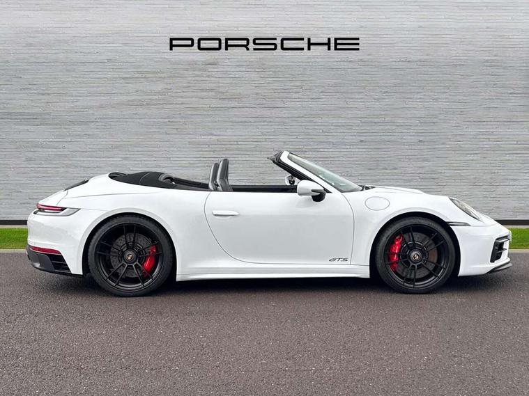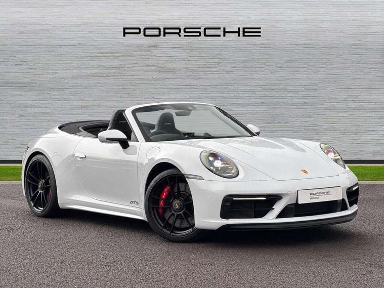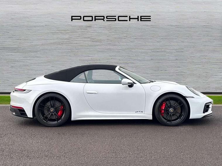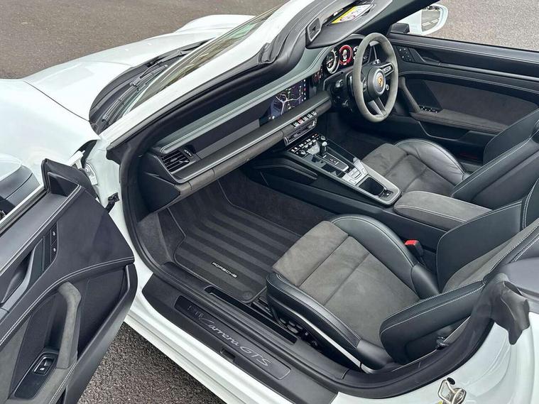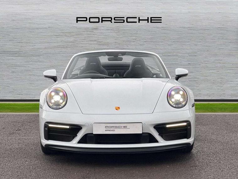 10.9 inch centre display, Apple car play and Android auto, Automatic start/stop system, Digital display for selected gear in rev counter, eCall emergency system, Gear indicator in rev counter, Instrument cluster with central analogue rev counter and two 7-inch TFT displays, Porsche Communication Management (PCM) including online navigation module, mobile phone preparation, audio interfaces and voice control system, Porsche connect plus, Apple carplay, LTE telephone module with Sim card reader, wireless internet access and other Porsche connect services, Service indicator, Stationary management with HOLD function, Trip computer, Warn and Brake Assist with intergrated front cameras, 7 speed manual gearbox with sport chrono pack, Aluminium block and cylinder heads, Catalytic converters, Direct fuel injection (DFI), Dry sump lubrication, Expansion intake manifold, Four valve per cylinder, McPherson-strut suspension with anti-roll bar at front, PASM sport suspension 10mm lowered with helper springs added to rear, Porsche Stability Management (PSM), ABS with extended brake functions, Porsche Torque Vectoring Plus (PTV Plus) inc electronically regulated rear differential lock and fully variable torque distribution, Rear wheel drive, Twin turbocharger intercooled, Two gasoline particulate filter, VarioCam Plus variable valve timing and switchable valve lift, Water-cooled engine with thermal management, 4 valves per cylinder, 2 USB-C connectivity and charge ports in the centre console storage compartment, DAB Digital radio, Auto deploying rear spoiler, Automatic headlight activation including welcome home lighting, Body coloured bumpers, Electrically adjustable heated exterior mirrors on door waist rails, aspherical on driver's side, Engine compartment cover grille with vertical slats in black (high-gloss), Fully automatic fabric hood, electrically operated heatable glass rear screen, operable approx 30 mph and convenient operation by key remote, Green tinted heat insulating glass, Heated rear windscreen, Integral electrically powered wind deflector, Intelligent lightweight body in Aluminium/Steel composite construction, LED auxiliary light units in the front end with position lights, direction indicators and side indicators, PORSCHE black lettering integrated in taillight strip, Power rear windows, Power windows with one touch operation and door seal protection, Rear lid grille with vertical slats in satin black, Side skirts trim in black, Taillight strip with clear LED taillights including integrated parking lights and rear fog light, Trims on sideskirts in black, Windscreen washer system with aero wiper blades and washer jets, 12V socket in front passenger footwell, 2+2 seater with rear engine, Ascending centre console with storage compartment, Black race-tex on steering wheel rim, seat centres, door handles, door panel armrests, gear lever, centre console storage compartment lid partially, Dashboard trim strip, centre console trim, door panel trim strips in black and black brushed aluminium inlays, Driver and front passenger illuminated vanity mirrors, Front and rear head restraints, Heated front seats, Hood lining in black fabric, ISOFIX child seat mounting points on passenger seat, LED door lights, LED footwell lights, LED glove compartment lighting, LED ignition light, LED luggage compartment lighting, LED orientation light, LED reading lights, Lockable glove compartment, Luggage compartment lid release, Particle/pollen filter with active carbon filter, Split folding rear seats, Storage compartments in each doors, Two individual cupholders 1x as inlet in centre console and 1x passenger side, Two zone auto climate control with separate temperature settings for driver/front passenger, automatic air recirculation mode incl air quality sensor, Sport Design pack - 911 GTS, Auto deploying roll over protection system, Electric parking brake, Electromechanical power brake, Full size two stage airbags for driver and front passenger, Pedestrian protection, Porsche side impact protection system (POSIP) includes side impact protection in doors, head/thorax airbags for driver and front passenger, Tyre pressure monitoring system, Engine immobiliser with remote central locking and alarm system with ultrasonic sound based interior surveillance, Porsche vehicle tracking system (PVTS Plus),
