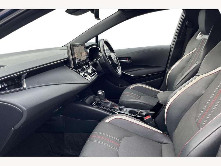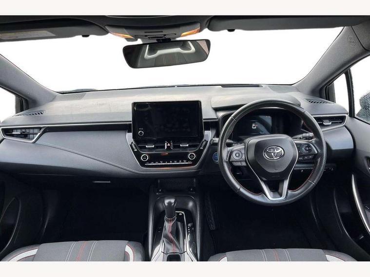 7" Multi information display screen, Bluetooth telephone connectivity, Connected car functionality upgrade, tracker, remote status and e-care, E-call, Electrically assisted power steering, EV drive indicator, Head up Display, Intelligent park assist, Lane Departure Alert (LDA) switch on steering wheel, Memory on adjustable speed limiter, Push button start, Reversing camera, Smartphone integration with Apple CarPlay and Android auto, Gasoline particulate filter, Vehicle Stability Control (VSC), 6 speakers, 8" Touchscreen with MM19 Multimedia system and voice recognition, AM/FM radio, DAB Digital radio, Toyota touch 2 with go navigation system, USB and Aux in connectors + 12V front outlet, Anti-jam protection on power windows, Auto dimming inside rear view mirror, Auto up and down function on all power windows, Automatic folding mirrors, Automatic headlights with high beam assist, Black toyota logo in front, Black window frames, Body colour rear spoiler, Body coloured bumpers, Body coloured door mirrors, Body coloured outside door handles, Follow me home headlights, LED daytime running lights, LED front fog lights, LED Headlights, LED High mounted stop light, LED rear combi lights with LED lightguide, Piano black surround on lower front grille with dark chrome mesh effect, Power adjustable heated door mirrors, Power front windows, Power rear windows, Privacy glass, Rain sensing wipers, Rear bumper with satin chrome plated inserts, Rear side wing doors, Rear window defogger, Rear window wiper, Reverse tilting door mirrors, Shark fin antenna, Time adjustment on intermittent wiper, Turning signal integrated indicators in door mirrors, Unique lower skirt, Unique side rocker with black insert, UV-filter on driver and passenger windows, 3 rear headrests, 3 seat bench in 2nd row, 3 spoke leather steering wheel + gear knob, 60/40 split folding rear seat, Adjustable speed limiter switch on steering wheel, Alcantara/partial leather upholstery, Audio, multimedia and telephone switches on steering wheel, Boot light, Centre room light, Clean air filter, Driver and front passenger personal light, Driver and passenger assist grip, Driver and passenger seatback pockets, Driver and passenger sun visor with mirror and light, Dual zone automatic air conditioning with ECO mode switch, Dynamic rador cruise control (with RSA) switch on steering wheel, Fabric armrests, Front and rear cup and bottle holders, Front door pockets, Front head restraints, Front passenger seat, Heated driver and front passenger seats, Illuminated entry system in room lamp, ISOFIX seat fixing (2 fixings on rear outer seats), Leather gear shift with satin chrome on gear shift console, Manual height adjustable for driver and front passenger seat, Parcel shelf, Pollen filter, Power adjustable lumbar support on driver seat, Power window switches with satin chrome inserts, Rear armrest with 2 cupholders, Rear passenger coat hooks (2), Satin chrome inside door handles, Shopping bag hooks in luggage compartment, Sliding armrest on centre console box, Slow opening glovebox with lights, Sports seats, Tilt/telescopic steering column, Voice recognition switch on steering wheel, WIL - Whiplash Injury Lessening seats, Parking pack - Corolla, Toyota safety sense 2 pack - Corolla, 3x3 point rear seatbelts, Adjustable driver and front passenger seat belt extender to top anchor point, Anti lock braking system + Electronic brake force distribution, Brake assist function, Child locks on rear doors, Downhill Assist Control (DAC), Electronic parking brake, Emergency brake light signal (EBS), Front passenger airbag on/off switch, Front seatbelt reminder, HAC-Hill-start Assist Control, Rear seat belt reminder, Seatbelt pretensioners and force limiters, Supplemental restraint system (SRS) 7 airbags - dual driver, dual side curtain, side impact and driver knee airbags, Traction control, Tyre pressure warning system, Acoustic vehicle alert system (AVAS), Alarm with motion sensor and immobilizer, Remote central locking + deadlocks, Smart entry, Satin chrome dash trim, Soft touch texture on uppder dashboard, Tyre repair kit, Unique wheel finish with red wheel cap,