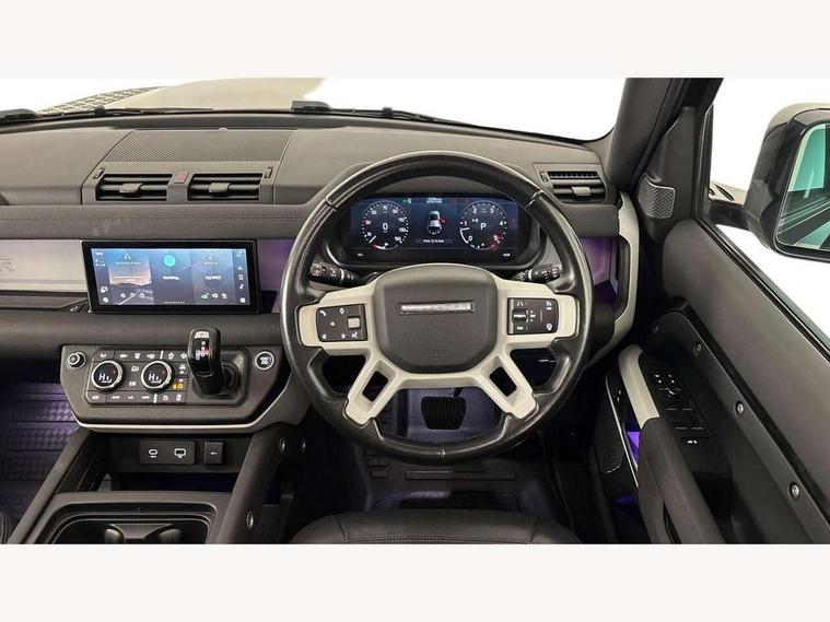 11.4" touchscreen, 360 degree parking aid, 3D Surround Camera with 360 View, 180 Rear View, Front Traffic Detection, Forward Vehicle Guidance, Tow Hitch Assist and clear sight Ground View, Android Auto, Apple CarPlay, Assisted tailgate with soft close, Blind spot assist, Bluetooth system, Brake pad wear indicator, Clear exit monitor, Connected navigation pro, Cruise control + speed limiter, Driver condition monitor, Electric power assisted steering (EPAS), Interactive driver display, Lane keep assist, Push button start, Rear traffic monitor, Traffic sign recognition with adaptive speed limiter, Trip computer, Wade Sensing, Wireless device charging with phone signal booster, Adaptive dynamics, DAB Radio (Digital Audio Broadcasting), Meridian 400w sound audio system with 11 speakers and subwoofer, Pivi pro connected, Automatic headlight levelling, Automatic headlights, Body coloured roof, Centre high mounted stop light, ClearSight interior rear view mirror, Electric heated/power fold door mirrors with approach lights and auto dimming driver side, Electric windows with one touch open/close and anti-trap, Follow me home lighting, Front fog lights, Heated rear window with timer, Heated windscreen, Illuminated metal treadplates with brand name script, LED tail lights, Privacy glass, Puddle lights, Rain sensing windscreen wipers, Rear fog lights, Rear side wing doors, Rear wiper, Signature graphic (with interior storage), Sliding panoramic roof, Trailer stability assist, 12 way heated and cooled electric memory front seats with 2 way manual headrests, 12V power socket in loadspace, 3 seat bench in 2nd row, 40:20:40 folding rear seats with centre armrest, Durable rubber cabin flooring, Durable rubber loadspace flooring, Electric cabin pre conditioning, Electric reach + rake adjustable steering column, Footwell lights, Front centre console refrigerator compartment, Front passenger isofix child seat attachment, Grained Leather upholstery, Heated steering wheel, Leather gearshift, Light oyster morzine headlining, Loadspace cover, Loadspace Hook, Multifunction steering wheel, Overhead stowage for sunglasses, Premium cabin lighting, Rear headrests, Rear ISOFIX, Rear reading lights, Single front passenger seat, Standard leather steering wheel, Storage glovebox, Sunvisors with illuminated vanity mirrors, Twin front cupholders with cover, Non-smoker package, Online pack with data plan - Defender, XS Edition exterior pack - Defender, 5 x 3 point seatbelts, ABS, Brake hold function, Cornering brake control (CBC), Cross car beam in Light Grey Powder Coat, Customer configurable autolock, Driver and passenger airbags, DSC - Dynamic Stability Control, EBD - Electronic brakeforce distribution, Electric parking brake (EPB), Emergency braking, ESP + traction control, Front airbags with passenger seat occupant detector, HDC - Hill descent control, Hill launch assist, Low traction launch, Power operated child locks, Remote for (e-Call, Optimised assistance call, InControl app, Climate, beep and flash and door), RSC - Roll stability control, Seat belt reminder, TPMS (Tyre pressure monitoring system), Alarm, Immobiliser, Intrusion sensor, Keyless entry, Locking wheel nuts,