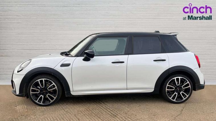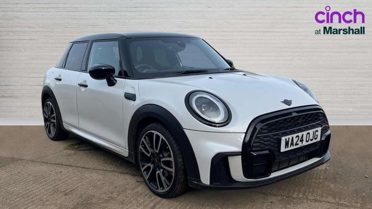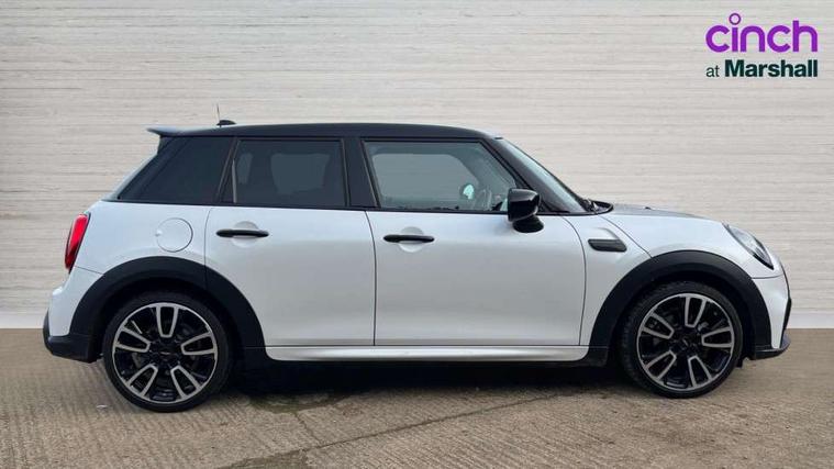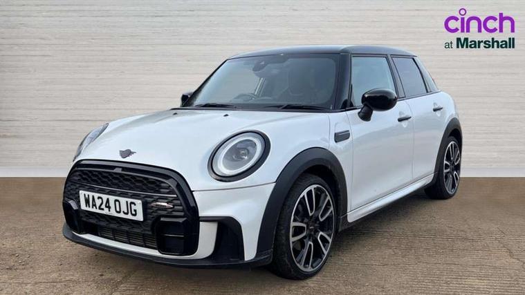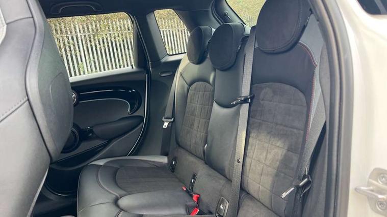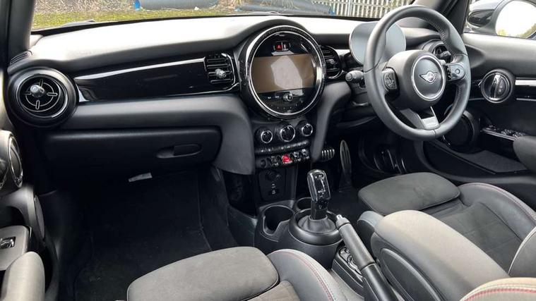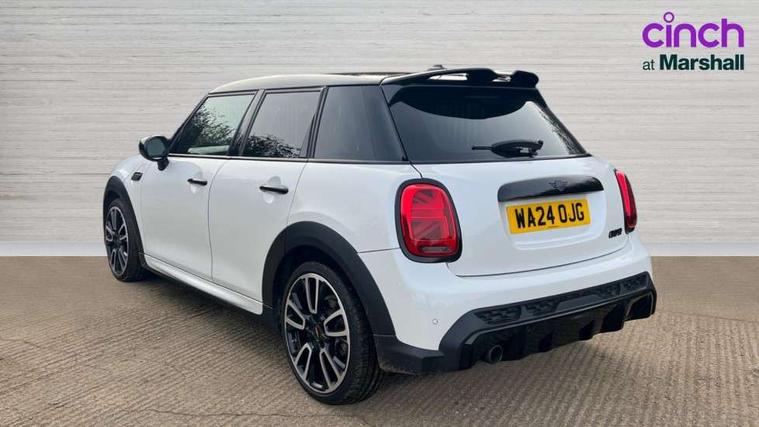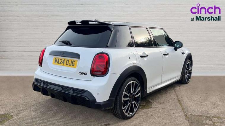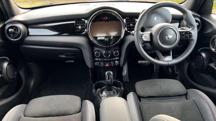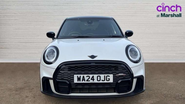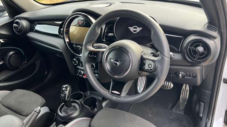 Apple CarPlay, Automatic start/stop function with brake energy recuperation, Compatible mobile phone bluetooth with audio streaming, Electro-mechanical speed dependant steering assistance, Flexible car sharing preparation, MINI Driving Modes - centre toggle switch to control driving setting (sport, mid and green), Mini E-call, MINI TeleServices, On board computer, Rear park distance control, Service interval indicator, Adaptive suspension, Double Vanos system, Fully variable valve control, Gear change indicator display, High precision injection, Performance Control, Steptronic transmission with double clutch, 8.8" touchscreen with LED ring, FM tuner and DAB digital radio, 3rd brake light, Automatic headlight activation switch, Body colour fuel filler cap, Chrome border high gloss black slats radiator grille, Dynamic brake lights, Electric front+rear windows, Exhaust tailpipe on left with chrome finisher, Heated rear window, Heated windscreen washer jets, JCW Aerodynamic kit - Front and rear bumpers with sporty JCW styling and part-painted side sills with MINI John Cooper Works door sill finishers, John Cooper Works rear spoiler, Metal door sill strips with MINI imprint, Model logo Cooper on right of tailgate, Rain sensor window wipers, Rear fog lights, Rear LED lights with union jack design, Rear side wing doors, Rear window wiper, Side scuttle panel with integrated indicator, Sun/heat protection glass, White indicator lenses, 12V Accessory socket in centre console, 3 seat bench in 2nd row, 4 lashing eyes in luggage compartment, 60/40 split folding rear seat, Anthracite headliner including grab handles and clothes hooks, Carbon black colour line - Knee roll and door armrest, Chrome interior highlights, Cupholders, Front and rear isofix with front passenger airbag deactivation, Front and rear velour floor mats, Glove compartment, Height and length steering column adjustment, Interior lighting with 12 different colours across the dashboard, underneath door bezel with illuminated laser-engraved design on central display, JCW Sport seats with integrated headrests, adjustable thigh support and John Cooper Works logo, Leatherette gearshift lever and handbrake gaiters, LED reading lights, vanity mirror lights, front foot well light and spotlight on front seats, Mechanical seat adjustment - forward/back & backrest for front seats and driver seat height adjust, Multifunction steering wheel, Single front passenger seat, Storage compartments in doors, Sunvisors with vanity mirrors, Walknappa leather steering wheel with grey seam and John Cooper Works badge on Piano Black lower steering wheel spoke, Piano black exterior pack - Mini Hatchback Cooper, 3 point seatbelts on all five seats, 6 Airbags - front, side, head and seat belt tensioners, Anti-lock braking system (ABS), Child locks on rear doors, DSC - Dynamic Stability Control, Front and rear disc brakes, Hill start assist, Single tone fanfare horn, Tyre pressure monitoring system, Alarm system with tilt sensor, monitoring doors, bonnet interior and tailgate, Electronic vehicle immobiliser, Start/stop toggle with keyless go, Piano black interior trim, Tool kit,