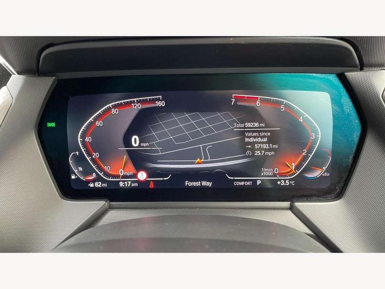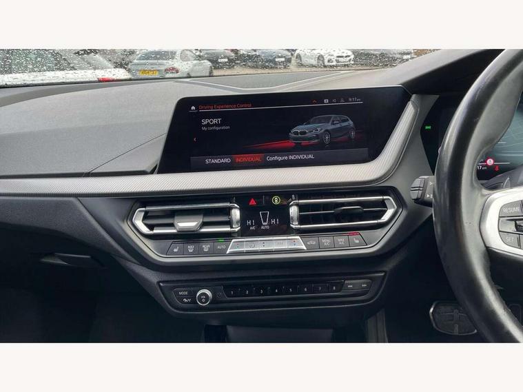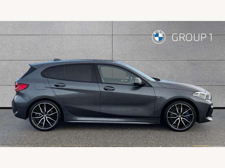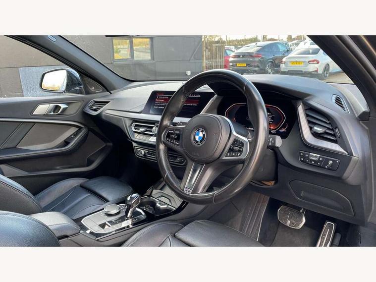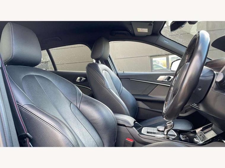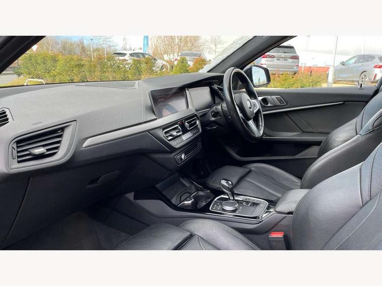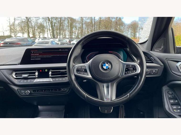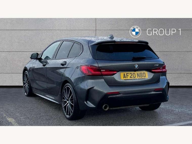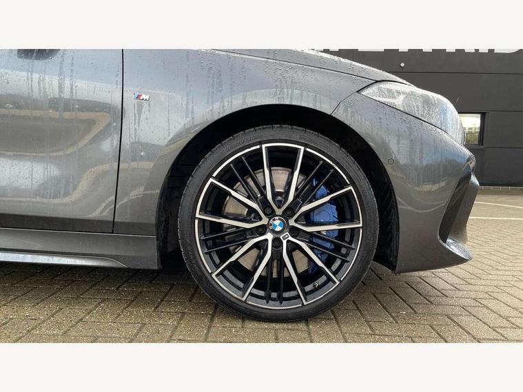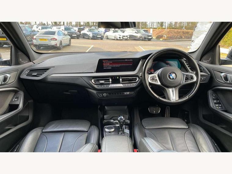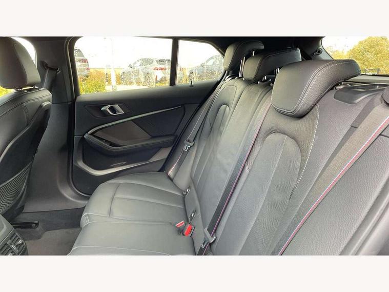 Active guard plus, Attentiveness assist, BMW Online services, BMW Teleservices, Check Control warning system for monitoring of lights and door/luggage compartment open warning, Connected eDrive Services, Eco pro mode, Electric power steering with Servotronic steering optimised at all speed ranges, Integrated owners handbook, Oil sensor for level and grade, On board computer, Optimum shift indicator, Personal Profile, Pull away assistant, Speed limiter, Aluminium lightweight construction, Anti roll bar front and rear, Balancer shaft, Double VANOS, Drive Performance Control, Electronic differential lock, High precision injection, M sports suspension + self levelling, Petrol Particulate Filter, VALVETRONIC engine management, Bluetooth audio streaming, DAB Digital radio, Auto dimming rear view mirror, Automatic headlight beam throw control, Body colour door handles, Body colour mirror caps, Chrome 'M' logo side designation, Chrome exhaust tailpipe in single, round (Exhaust tailpipe, stainless steel - single, round), Chrome kidney grille frame with Satin Aluminium struts, Direction indicator side lights in exterior mirrors, Electric folding and anti dazzle exterior mirrors, Fading support, Follow me home headlights, Front and rear electric windows with open and close fingertip control, anti trap facility and comfort closing, Front door sill finishers in black plastic with BMW designation, Green tinted heat protection glazing, Heated, electrically adjustable exterior mirror aspheric on driver side, convex on passenger side, High gloss shadow line exterior trim, High gloss shadowline window frame, Recess cover mirror frames and B/C pillar embelisher trim, High level third brake light, LED daytime running lights, LED eyebrow turn indicators, LED front fog lights, Lightweight engineering, Matt black air guide grilles, Model designation on right side of tailgate, Nearside reverse light in rear light cluster, Rain sensor including auto headlights activation, Rear fog lights, Rear window wiper, Shark fin antenna, Visible VIN plate, Welcome lighting, Windscreen wipers with integrated washing jets, 12V power socket in centre console, 2 cupholders in front centre console, 3 rear seat head restraints, 3 spoke M sports design leather steering wheel finished in nappa leather with specific M badge, Anthracite headlining, Anthracite Velour floor mats, Child seat ISOFIX attachment for two outer rear seats and front passenger seat with anchorage points, Conditioned based service, Dakota leather upholstery with perforation and contrast stitching, Driver and front passenger seat heating, Driver side folding compartment in instrument panel, Folding rear clothes hook, Folding rear seats, Four grab handles integrated in roof lining, Front and rear door pockets, Front and rear side armrest integrated into door trim, Front armrest foldable with integrated storage compartment, Front sports seats with electric side bolster adjustment, Glove compartment, Height adjustable front head restraints, Manual adjust steering wheel, Multi-function controls for steering wheel, Rear seat backrest with manual 60:40 split folding with 3 top tether clips integrated on rear of seat panels, Storage compartment in centre console, Sun visors with vanity mirrors and insert tab, Two zone automatic air conditioning, Extended Lighting pack - 1 Series, Extended storage pack - 1 Series, Interior lights pack - 1 Series, Luggage compartment pack - 1 Series, M Sport exterior styling aerodynamics pack - 1 Series, 2 tone horn, 3 point seatbelts on all seats, front pyrotechnic belt tensioners, stopper and belt force limiters, rear coded belt buckles, Airbags - Front driver and passenger, front and rear head, front side, curtain head protection, Anti lock braking system (ABS) with brake assist, BMW emergency call, Brake drying, Braking readiness, Crash sensor activating central locking release, hazard warning lights, fuel cut off, interior lighting + activation of safety battery terminal clamp, Driver and front passenger seat belt security check, Dynamic stability control + (DSC+), Dynamic Traction Control - DTC, Electrically operated hand brake, Front and rear disc brakes, Front passenger manual airbag deactivation, Rear child proof door locks, Seatbelt warning, Side impact protection, Tyre pressure monitoring system, Warning triangle and first aid kit, Automatic drive away locking facility, Central locking switch for all doors, fuel filler cap and luggage compartment, Deadlocking function system to all doors, Locking wheel bolts, Remote control with integrated key with High-gloss Black inlay and M designation and 1 button for open/ close lock, window, open luggage compartment, Start/stop button with comfort go keyless engine start and auto start stop deactivation button, Thatcham Cat.1 alarm and immobiliser, Contrast stitching on instrument panel, Reduced rolling resistance tyres,