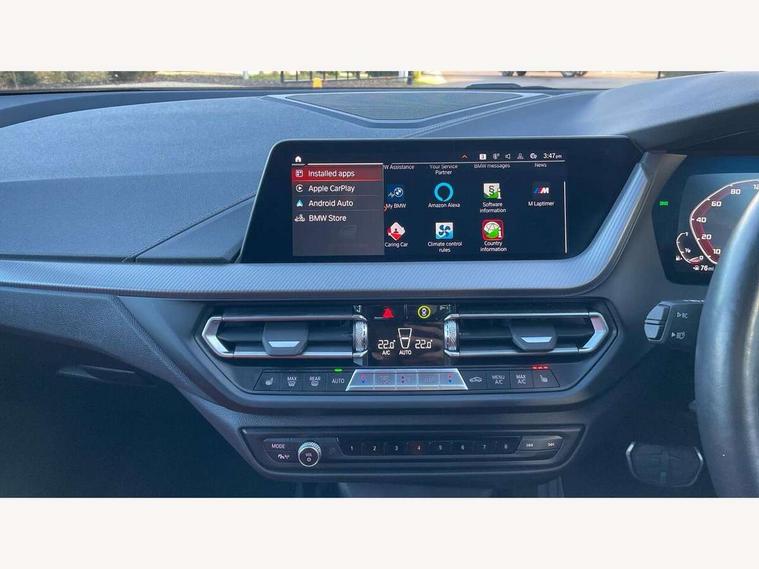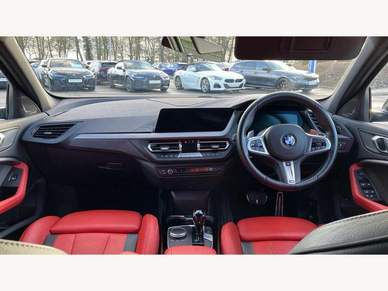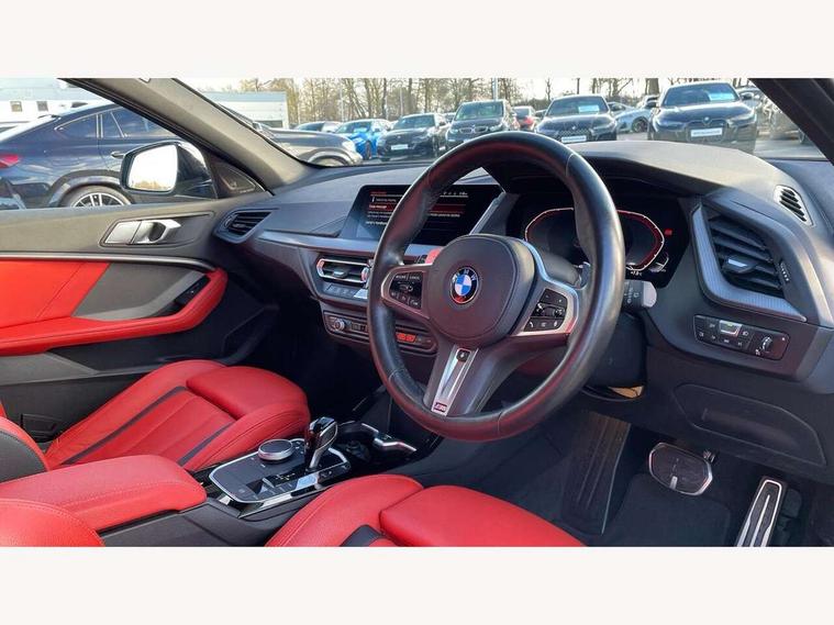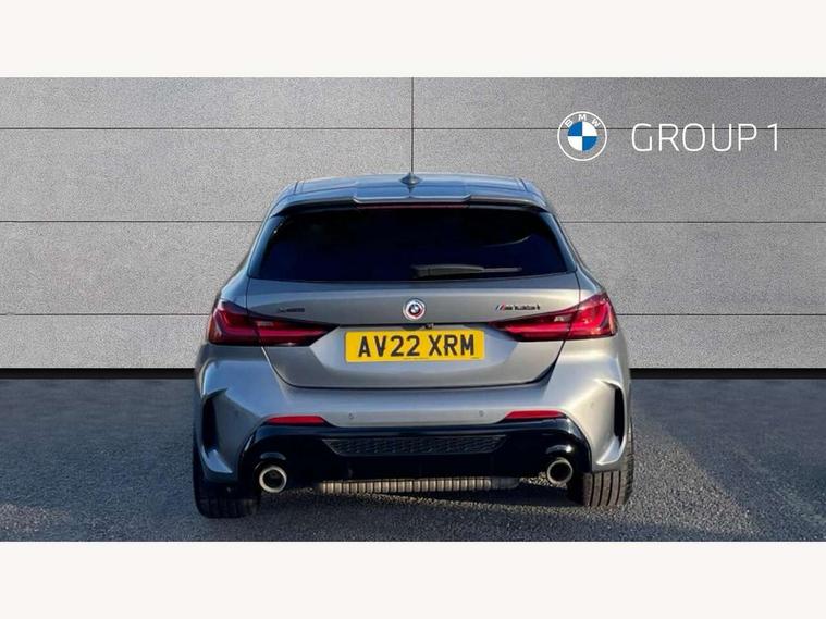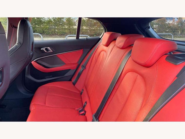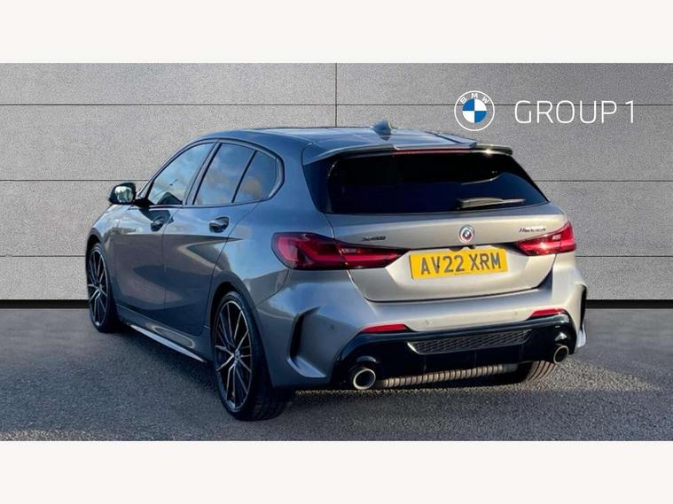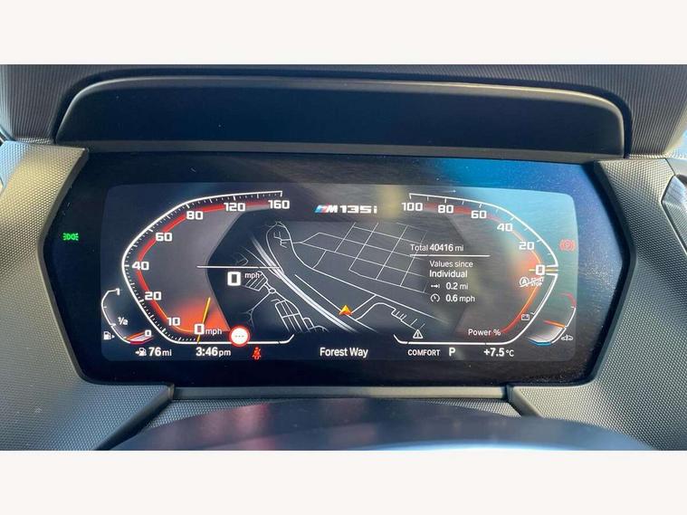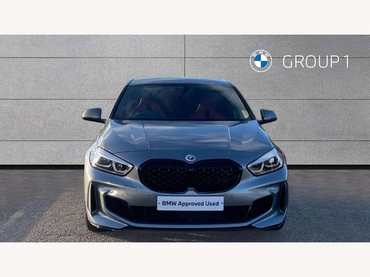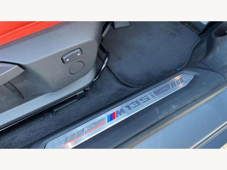 Active guard plus, Attentiveness assist, BMW ConnectedDrive online services, BMW Teleservices, Check Control warning system for monitoring of lights and door/luggage compartment open warning, Cruise control with brake assist, Eco pro mode, Electric power steering, Electro hydraulically controlled multi-plate clutch transfers drive to rear axle and with power take-off device located on the front differential., Energy efficient operating strategy, Front axle single joint with specific axle kinematics to minimise drive influences on steering + provide increased rigidity agile driving behaviour, Gearshift time display in manual mode, Integrated owners handbook, Lane departure warning system, M Sports steering with M135i xDrive specific settings, Oil sensor for level and grade, On board computer, Optimum shift indicator, Personal Profile, Pull away assistant, Rigidly mounted rear subframe - Multi link construction with separate spring / damper configuration and excellent driving characteristics, Speed limit Info including no-overtaking indicator, Speed limiter, Sporty fast gear shifting in sport mode, Aluminium lightweight construction, Anti roll bar front and rear, Balancer shaft, Double VANOS, Drive Performance Control, Eight speed sport automatic transmission with gearshift paddle switches, Electronic differential lock, Electronic selector lever, Engine cover with M performance designation, High precision injection, Larger fuel tank capacity (50 litres), Launch control, M135i specific heavily de-throttled engine intake air guide, M135i specific high-performance cooling package, M135i specific larger turbocharger with integrated divert-air valve, Petrol Particulate Filter, Twin tube gas filled shock absorbers with degressive characteristic curve, VALVETRONIC engine management, Variable, stepless and infinitely adjustable distribution of drive torque between the front and rear axles, xDrive intelligent all wheel drive with M135i specific reinforced components, DAB Digital radio, Auto dimming rear view mirror, Automatic headlight beam throw control, Automatic windscreen wipers and automatic headlight, Body colour door handles, Body colour roof trims, Cerium grey exterior mirror caps, Direction indicator side lights in exterior mirrors, Exhaust tailpipe, Cerium Grey with bevelled finish - twin, round 100mm, left and right split, Fading support, Folding side mirrors with auto dimming/folding wing mirrors with auto dimming, Follow me home headlights, Front and rear bumper system with replaceable deformation elements, Front and rear electric windows with open and close fingertip control, anti trap facility and comfort closing, Front door sill finishers with M135i designation, Green tinted heat protection glazing, Heated, electrically adjustable exterior mirror aspheric on driver side, convex on passenger side, High gloss shadowline window frame, Recess cover mirror frames and B/C pillar embelisher trim, High level third brake light, Integrated front windscreen with washer jets, Kidney grille frame in Cerium Grey with Mesh design, LED daytime running lights, LED eyebrow turn indicators, LED front fog lights, Lightweight engineering, M logo designation side in cerium grey, M Performance exhaust system with valve control and minimised exhaust back pressure, M Performance specific setup, M Sport spoiler, Matt black air guide grilles, Matt black wheel arch trim, Model designation on electric bootlid includes xDrive designation for M135i xDrive, Nearside reverse light in rear light cluster, Preparation for high beam assistant, Rear fog lights, Rear side wing doors, Rear window wiper, Reinforced crank drive, new pistons and adapted con rods, Shark fin antenna, Trailer stabilisation logic, Visible VIN plate, Welcome lighting, 12V power socket in front centre console with blanking plug, 3 rear seat head restraints, 3 seat bench in 2nd row, 3 spoke sports leather steering wheel with black leather and stitching, pearl chrome decorative finish, specific M Badge, Ambient interior lighting, Anthracite headlining, Black boot net with lashing eyes, Cargo function on 2nd seat row, Child seat ISOFIX attachment for two outer rear seats and front passenger seat with anchorage points, Conditioned based service, Driver and front passenger seat heating, Folding rear clothes hook, Four grab handles integrated in roof lining, Front and rear door pockets with bottle holders, Front and rear side armrest integrated into door trim, Front armrest, Front integrated head restraints, Front M sports seats, Glove compartment, Luggage compartment for bag hooks on left and right, foldable luggage compartment liner and four lashing eyelets, Manual adjust steering wheel, Multi-function controls for steering wheel, Single front passenger seat, Storage compartment in centre console, Sun visors with vanity mirrors and insert tab, Two front centre console cupholders, Two zone automatic air conditioning, Velour floor mats, Additional interior lighting pack - 1 Series M135i, BMW live cockpit professional pack- 1 Series, Connected pack professional - 1 Series, Interior lights pack - 1 Series, M Sport exterior styling aerodynamics pack - 1 Series 135i, 2 tone horn, 3 point seatbelts on all seats, front pyrotechnic belt tensioners, stopper and belt force limiters, rear coded belt buckles, Airbags - Front driver/passenger, front and rear curtain head protection, front side, manual deactivation of front passenger airbag, Anti lock braking system (ABS) with brake assist, BMW emergency call, Brake drying, Braking readiness, Child proof locking system in rear door, City braking function, Comfort modes, Cornering brake control, Crash sensor activating central locking release, hazard warning lights, fuel cut off, interior lighting + activation of safety battery terminal clamp, Driver and front passenger seat belt security check, Dynamic stability control + (DSC+), Dynamic Traction Control - DTC, Electrically operated hand brake including automatic ho