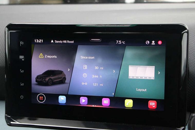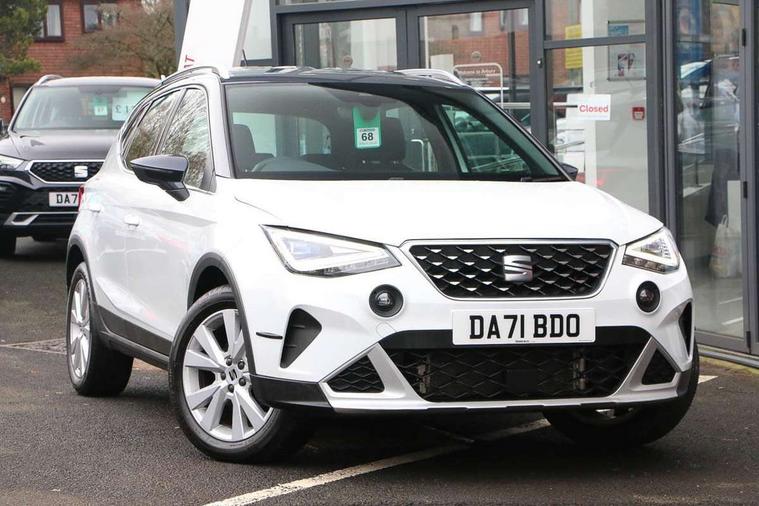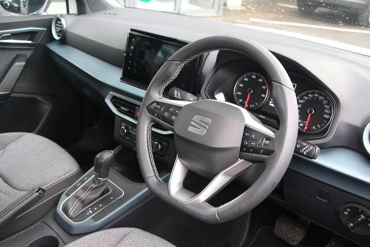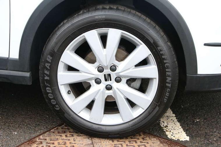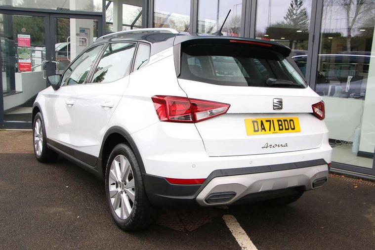 'Lights On' Reminder warning buzzer, Digital clock, Electric speed sensitive power steering, Full Link Smartphone Integration with Mirror Link, Apple Car Play, Google Android Auto with USB Type C cable for Apple and Android compatibility, Lane keeping system, Low fuel warning light, Outside temperature display, Rear parking sensor, RPM counter, Seat connect with safety, service, remote and online, Trip computer, Bluetooth interface for hands free and audio streaming, DAB digital radio and AM/FM radio, Steering wheel mounted audio controls, Anti theft roof antenna, Auto dimming interior rear view mirror, Automatic activation of hazard warning lights, Body coloured bumpers, Body coloured door handle inserts, Chrome roof rails and window surrounds, Chrome window trim, Electric front/rear windows, Electrically adjustable, heated and folding door mirrors, FULL LED automatic headlights with dynamic headlight range control, coming and leaving home, LED daytime running lights, Hidden exhaust pipe, LED rear tail lights and licence plate lights, Protective side mouldings, Rain sensing wipers, Rear spoiler, Rear window wash/wipe, Roof colour door mirrors, Visible VIN plate, Windshield wiper with intermittent control and potentiometer, 2 cupholders, 60/40 split folding rear seat, Aircare filter, Aran green Illuminated coloured air vent, Black interior roof, Cloth upholstery, Double boot floor, Driver sunvisor with covered mirror + card holder, Dual zone climate control, Flat bottomed leather steering wheel/gear knob/handbrake, Front courtesy light with 2x front and 2x rear reading lights, Front seat back storage pockets, Gear shift indicator, Height adjustable front seats, Height/reach adjustable steering column, Illuminated boot, Instrument lighting with brightness control, Interior ambient lighting, Interior light in footwell, central console and door panel, ISOFIX points in outer rear seats with top tether anchorage points, Passenger sunvisor with vanity mirror, Storage net on centre console, Two front and three rear height adjustable headrests, Connectivity pack plus - Arona, Interior chrome pack - Arona, Safety and driving pack (M) - Arona, Storage pack - Arona, 3 point seatbelts on all rear seats, ABS, Active front headrests, Child locks on rear doors, Driver and front passenger airbags with front passenger airbag de activation, front side and curtain airbags, Electronic stability control, Emergency Brake Assist (EBA) and front assist, Front and rear seatbelt reminder, Hill hold control, Multi-Collision braking, Tiredness recognition system, Traction control, Tyre pressure monitoring system, Alarm with back-up horn, Electronic engine immobiliser, KESSY Keyless entry and go, Locking wheel bolts, Remote central locking + deadlocks, Tow away protection, Titan black dashboard, 17" Dynamic alloy wheels,