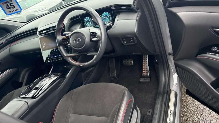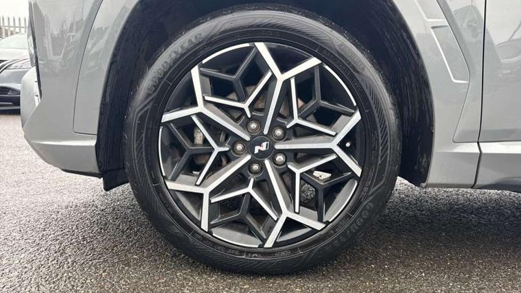10.25" super vision instrument cluster, 10.25" touchscreen satellite navigation with mapcare and live services, Apple car play/Android Auto, Bluetooth system, Cruise control, Digital clock, Drive mode selector, Driver attention warning, E-call, Emergency stop signalling system, Forward Collision Avoidance Assist (FCA) - Car, Pedestrian and Cycle, Front and rear parking sensors, Intelligent speed limit assist, Lane follow assist, Lane keep assist, PAS, Rev counter, Reversing camera, Tailgate open warning light, Trip computer, Trip odometer, Voice recognition, Water temperature gauge, Windscreen washer fluid sensor and warning indicator, Wireless phone charging pad, Shift by Wire Gear Selector (SBW), 2 front and 2 rear speakers with 2 tweeters, DAB Digital radio, Steering wheel mounted audio/phone controls, USB connections in front and rear, Adjustable intermittent front windscreen wipers with aero wiper blade, Auto dimming rear view mirror, Automatic defog system, Automatic headlights with dusk sensor, Automatic windscreen wipers with rain sensor, Black headlamp bezels, Body colour bumpers, Body colour door mirrors with integrated indicators, Body colour exterior door handles, Body coloured wheel arches, Dark chrome effect radiator grille, Electrically adjustable, heated and power folding door mirrors, Follow me home headlights, Front and rear electric windows with anti-trap mechanism and one touch control, Front fog lights, Gloss black door frame moulding, High beam assist, High level third brake light, LED daytime running lights, LED rear lights, MFR - LED headlight with static bending light, N Line body coloured side mouldings, N Line design front grille, N Line Exclusive front and rear bumpers, N Line rear spoiler with fins, Positioning Lights - LED, Privacy glass - Rear windows and tailgate, Rear side wing doors, Rear wash/wipe with intermittent wipe setting, Roof rails, Silver front and rear skid plate, Sports twin tip exhaust and diffuser, Tinted glass with windscreen shade band, Trailer stability assist, 12V power outlets in front console and luggage compartment, 3 seat bench in 2nd row, 40/20/40 split folding rear seat, Adjustable head restraints (Up and down), Alloy pedals, Ambient lighting, Black headliner, Cupholders in rear armrest, Door courtesy lights, Driver and passenger sunvisors with illuminated LED vanity mirrors, Driver's seat electric lumbar support, Driver's seat manual height adjust, Dual zone climate control, Front and rear door pockets, Front armrest with storage box, Front door pocket bottle holders, Front passenger seat lumbar adjustment, Heated front seats, Height/reach adjustable steering column, Illuminated/air conditioned glove compartment, ISOFIX child seat anchorage points attached on outer rear seats, Leather wrapped steering wheel, Leather/suede upholstery, Luggage area underfloor compartment, Luggage compartment lighting, Luggage cover, Luggage hooks, Manual height adjustable front passenger seat, Map and reading lights, N Line logo on steering wheel, Reclining rear seats, Retractable load cover, Single front passenger seat, Sunglasses holder, 3x3 point rear seatbelts, Active bonnet, Airbag - Front, front side, curtain and centre front airbags, Anti-lock brake system (ABS), Brake assist function, Childproof rear door locks, Curtain airbag roll over sensor, Downhill brake control, Electric parking brake with auto hold function, Electronic stability control, Front and rear seatbelt reminder, Front passenger airbag deactivation switch, Front seatbelt pretensioners, Hill start assist control (HAC), Multi-Collision braking, Outer rear seatbelt height adjustment, Seatbelt height adjustment for front seats, Traction control, Tyre pressure monitoring system with individual tyre pressure display - TPMS, Vehicle stability management, Alarm, Deadlocks, Immobiliser, Locking wheel nuts, Remote control central locking, Smart key with keyless entry and engine start/stop button, Speed sensitive auto door locking, 19" Alloy wheels, Tyre repair kit,