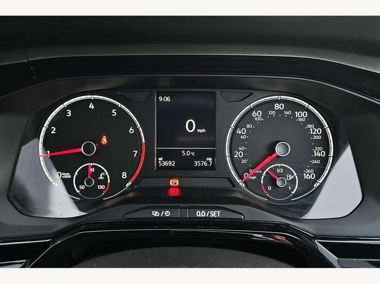 App-Connect, Digital clock, Driver alert system, Multifunction computer plus, Power assisted speed sensitive steering, Speedo and rev counter, electronic odometer, trip, service interval display and fuel gauge, Start/stop system, Volkswagen connect, Warning buzzer and light for front seatbelts unfastened, Battery regeneration during braking, Galvanished body, Black grille with chrome surround, Black radiator grille with chrome louvres, Body colour bumpers, Body colour door handles, Body colour rear spoiler, Body coloured side sills, Electric front windows, Front windscreen washers and wipers with 4 speed intermittent delay, Heat insulating tinted glass, Heated rear window with auto timer, High level 3rd brake light, LED daytime running lights, LED rear number plate lights, Rear electric windows, Rear windscreen washer and wiper with interval delay, reverse activated, 2 bag hooks in luggage compartment, 2 front and 2 rear reading lights, 2 front cupholders and 12 V socket with cover, 3 rear head restraints, 60/40 split folding rear seat, Centre console storage with open storage compartment, Driver and front passenger seat height adjustment, Driver and front passenger sunvisors with illuminated vanity mirrors, Dust/pollen filter, Folding rear seat backrest, Front seat backrest storage pockets, Gear lever gaiter in black trim surround, Glovebox, Handbrake grip button in chrome effect, Height/reach adjustable steering column, Instrument lighting, adjustable panel illumination, Interior light with delay, Isofix Preparation 2 Rear child seats, Jack and tool kit, Leather gear knob and handbrake grip, Leather multifunction steering wheel, Luggage compartment cover, removable, Luggage compartment lighting, Luggage compartment with variable load floor, Lumbar adjustment for front seats, Storage compartment in front doors, Storage compartment in rear doors, Storage compartment under front seats, 3 point height adj front seatbelts + pretensioners, 3x3 point rear seatbelts, ABS, Automatic post collision braking, Driver/front passenger airbag, Drivers and front passengers safety optimised head restraints, ESP with EDL + ASR, Front and rear passenger curtain airbags, Front disc brakes and rear drum brakes, Front passenger airbag deactivation, Front seat side impact airbags, Hill hold control, Hydraulic Brake Assist (HBA), Single tone horn, Tyre pressure monitoring system, Alarm with interior protection and deactivation via infotainment system, Electronic engine immobiliser, Remote central locking with 2 remote folding keys, Air vents in High gloss black, Limestone grey decorative inserts,