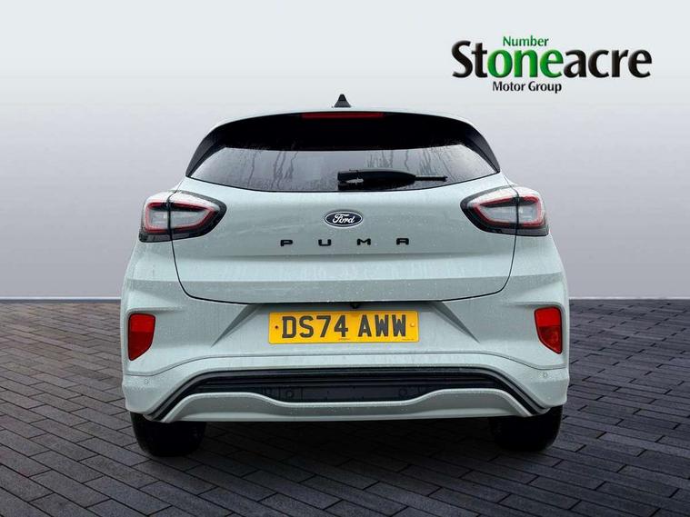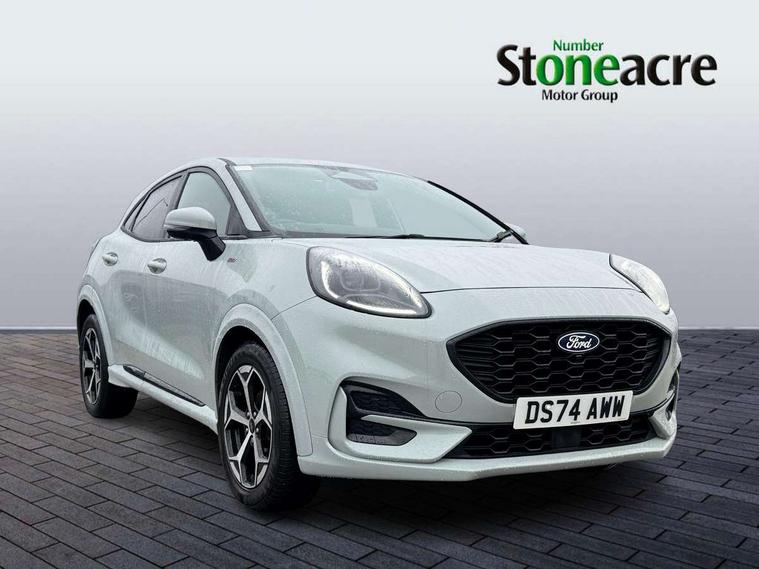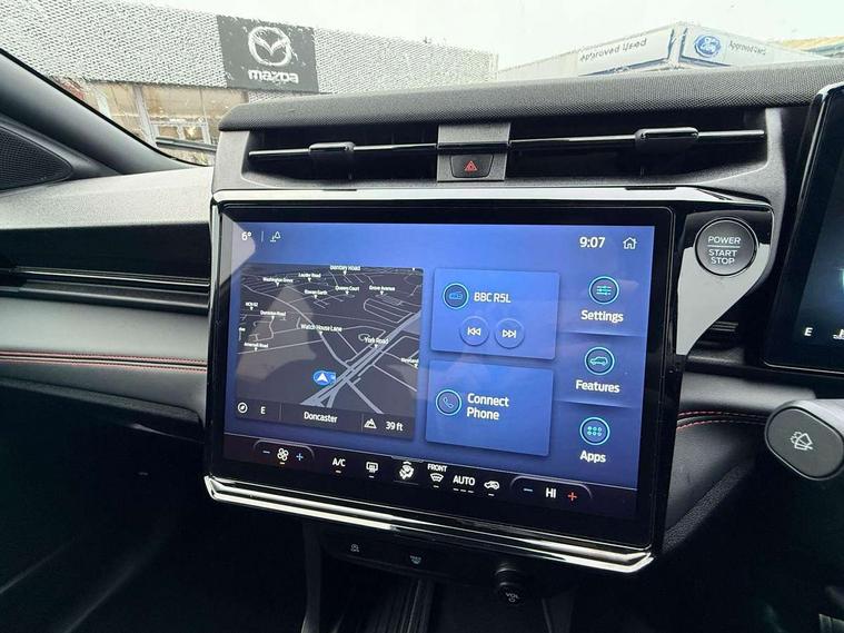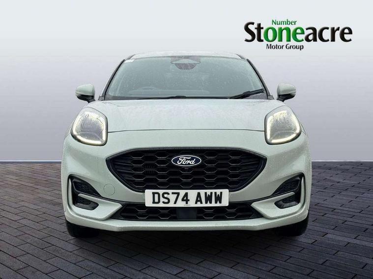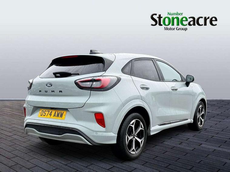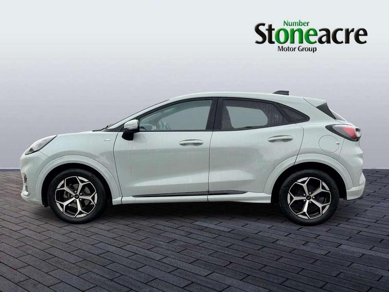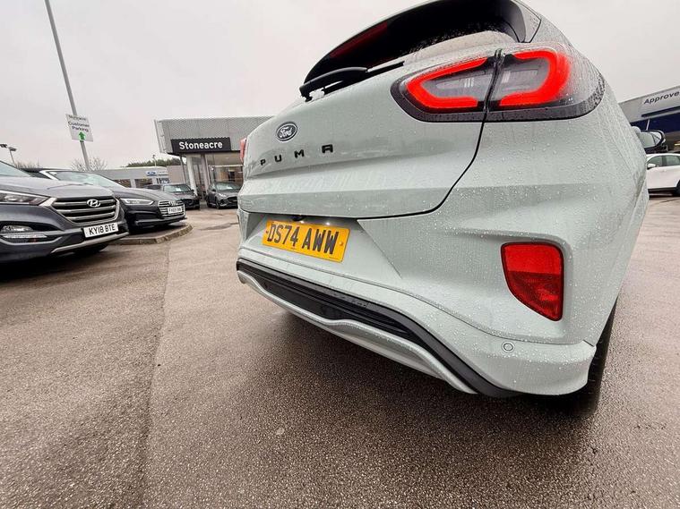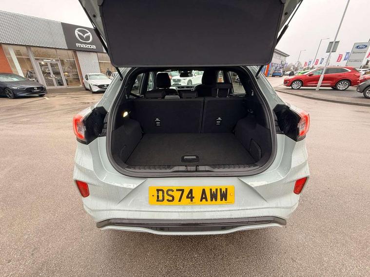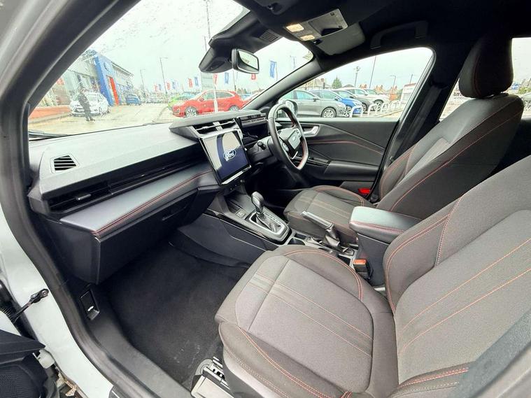 Driver impairment monitor, Emergency call service, Ford easy fuel, Full digital 12.8" instrument cluster, Lane keeping aid with lane departure warning, Power assist steering, Selectable drive modes(Normal, Eco, Sport, Slippery and Trail), Speed sign recognition, Sport suspension, 12" landscape touchscreen display with wireless apple car play and android auto 6 speaker audio system, Ford pass connect and emergency assistance, Ford SYNC4 with connected navigation, Automatic headlights with rain sensing wipers and auto high beam, Front fog lamps, LED daytime running lights, LED rear lamps, LED third brake light, Power foldable heated door mirrors with puddle lamps and puma logo protection, Quickclear heated windscreen, Rear privacy glass, Rear side wing doors, Rear wiper, ST-Line body styling kit with unique grille, 3 seat bench in 2nd row, Centre console with armrest and stowage, Electronic automatic temperature control (EATC), Ford megabox extended bootspace, Front and rear head restraints, Front floor mats, Manual 4 way driver seat adjust with lumbar adjustment, Single front passenger seat, ST- Line cloth trim with red stitching, 3 rear seatbelts, Child safety lock, Electronic stability control (ESC) and hill start assist, Pre-collision assist with autonomous emergency braking, pedestrian/cyclist detection & post-collision braking, Tyre pressure monitoring system (TPMS), Thatcham alarm,