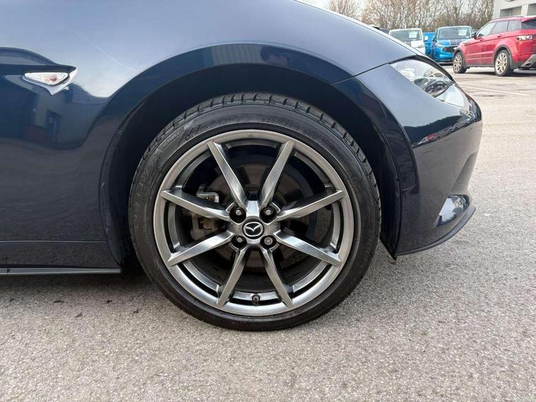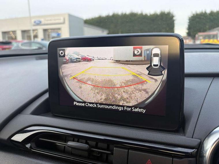 7" colour touch screen with Mazda connect infotainment, Aha and stitcher app, Analogue speedometer, Apple car play/Android Auto, Cruise control + speed limiter, Driver alert system, eCall emergency call system, Emergency stop signalling system, Engine start/stop button, Hands free phone preparation, Integrated bluetooth with hands-free calling, bluetooth audio and easy access to phone contacts, Integrated navigation system, Lane departure warning system, PAS, Rear parking sensor, Service indicator, Traffic sign recognition, Trip computer, Water temperature gauge, Dynamic stability control, I-ELOOP, i-stop, 2 USB/aux input socket, Multimedia Commander including separate volume dial, Premium Bose sound system with 9 speakers with 2 in each front headrest, AM/FM/DAB radio and MP3, Steering wheel mounted audio/bluetooth controls, Adaptive front lighting system, Auto dimming rear view mirror, Automatic headlamp levelling, Body colour bumpers, Body colour co ordinated interior upper door trim, Body coloured electric/heated door mirrors, Coming/leaving home lighting function, Dual exhaust pipes, Dusk sensitive headlamps, Electric front windows/one touch facility, LED 3rd brake light, LED daytime running lights, LED Headlights, LED indicator lights, LED rear lights, Piano Black fashion bars, Rain sensing front wipers, Rear boot, 12V socket, Centre console storage box, Chrome Air conditioning dials, Climate control air conditioning, Coin Box, Driver and front passenger sunvisors with covered vanity mirror and driver ticket holder, Driver seat manual slide, recline and tilt adjustment, Front centre armrest, Front head restraints, Gear shift indicator, Heated front seats, in 3 heat levels, Interior courtesy light, ISOFIX front passenger seat child seat compliance, Leather gear knob, Leather steering wheel, Leather upholstery, Lockable rear centre box with lid, Passenger seat + manual slide/recline adjust, Single front passenger seat, Tilt/telescopic steering column, Two cupholders, 3 point ELR front seatbelts with pretensioners, ABS+Electronic Brake force Distribution, Deployable Hood System (DHS), Driver and front passenger airbags, Driver and passenger seatbelt reminder audible warning, Hill hold assist, Passenger airbag deactivate switch, SCBS - Smart City Brake Support, rear plus front with autonomous emergency braking, Side airbags, Traction control, Tyre pressure monitor, Remote central locking with deadlocking and remote boot release, Smart keyless entry, Superlocking, Thatcham category 1 alarm + immobiliser, Chrome air vent surrounds, 16" Bright Silver alloy wheels,