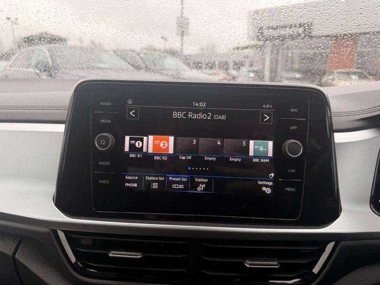 Bluetooth mobile phone interface, Driver alert system with fatigue detection, Driver tips and journey analysis, Emergency call service, Lane keeping system Lane Assist, Modified key software - reduce switch off time for key status change to Long no motion, Online services, Park assist including front and rear parking sensors, Power assisted speed sensitive steering, Service interval indicator, Tailgate/trunk lid release from outside, Think blue trainer driver tips and journey analysis, Warning sound and light for front seatbelts unfastened, Wireless app connect, Battery regeneration during braking, Front shock absorption, Rear shock absorption chassis with increased ride height, Start/stop function with battery regeneration, DAB Digital radio, Diversity antenna for FM reception, Front and rear 6 speakers, Music playback - MP3, WMA and AAC files, Premium USB cable in choice of either Apple or Android smartphone compatibility, SD card slot, Simultaneous pairing of 2 compatible mobile devices, Title and cover art display, We Connect and We Connect Plus functionality, 3rd brake light, Auto dimming interior rear view mirror, Automatic hazard lights activation under emergency braking, Automatic headlight control with LED separate daytime running lights with coming/leaving home function, Black roof rails, Body coloured bumpers and radiator grille with chrome trim and front fog lamps with chrome bezel, Body coloured exterior mirror housings and door handles, Extended roof spoiler, Exterior mirrors aspherical on driver side, convex on front passenger side, External USB type C socket and charging sockets, Front windscreen wiper with intermittent wipe and 4 position delay, Heated rear window, LED Headlights, LED rear combination lamps, LED rear number plate lights, LED tail lamp rear comination lamps, Power windows with comfort operation and circuit breaker, Rain sensor, Rear exhaust tailpipe, Rear fog light on one side and reversing lights on both sides, Rear side wing doors, Rear wash/wipe with intermittent wipe setting, Remote electrically foldable door mirrors, puddle lights and reverse activated passenger's door mirror, 12V power socket in centre console, 3 rear head restraints, 3 seat bench in 2nd row, 4 load lashing points in luggage compartment, Air care climatronic air conditoning system with active combination filter and 2-zone temperature control, Ambient lighting with mirror logo projection, Cloth upholstery, Door and side trim panel in cloth, Drawer under drivers seat, Driver/front passenger seat height adjustment, Front centre armrest, Front comfort sports seats, Front cupholders x 2, Front reading light, Instrument lighting, white adjustable panel illumination, Interior light delay, Isofix child seat preparation, Leather gearshift handle, Load-through provision with cup holder when folded down ('Unsplit rear seat bench, split folding backrest, with centre armrest), Luggage compartment lighting, Lumbar support for driver's and front passengers seat, Non-folding front passenger seat backrest, Single front passenger seat, Storage compartment in left and right luggage area, Storage compartment in rear doors, Storage compartments in driver and front passenger doors, Sunvisors with illuminated vanity mirrors, Variable boot floor, height adjustable and removable, Driver assistance pack without proactive passenger protection - T-Roc, 3 point height adj front seatbelts + pretensioners, 3 point seatbelts in outer rear with ECE label, ABS, Child locks on rear doors, Driver and front passenger airbag with front passenger airbag deactivation, Driver and front passenger safety-optimised head restraints, Drivers seatbelt reminder, Electronic parking brake, Electronic Stability Control (ESC) inc EDL (Electronic Differential Lock) and ASR (Traction Control), Front and rear passengers curtain airbag system including front side airbags, Front assist with city emergency braking and pedestrian monitoring, Front disc brakes, Front seat side impact airbags, Hill start assist, Predictive pedestrian protection, Rear disc brakes, Single tone horn, Tyre pressure loss indicator, Volkswagen roadside assistance, Alarm with interior protection, Anti-theft alarm system with interior monitoring, backup horn, and towing protection, Remote central locking with SAFELOCK, radio remote control with 2 remote control folding keys, Pewter matt decorative inserts for intrument panel, centre console and door panels at the front, Trims for alloy wheels,