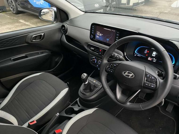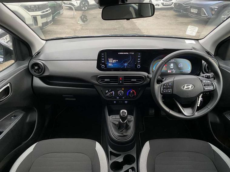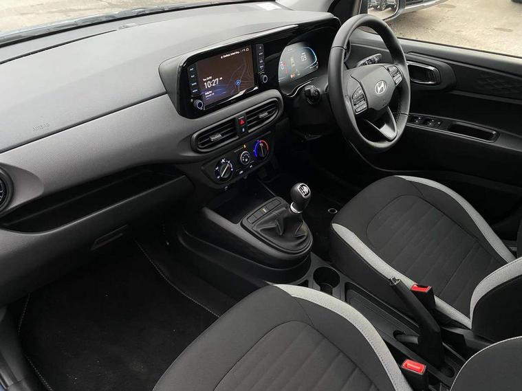 Apple car play/Android Auto, Bluelink mobile remote connectivity, Bluetooth connectivity with voice recognition, Cruise control, Driver attention alert system, eCall emergency call system, Forward Collision-Avoidance Assist (FCA) - Pedestrian/Cyclist, Front USB-C charging and USB-A data, Full-width 4.2" LCD instrument cluster, Intelligent speed limit assist, Lane departure warning system with lane keep assist - LKAS, Lane follow assist, PAS, Rear parking sensors, Rear view camera with guidelines, Roadside assistance, Start/Stop function, Tailgate, Trip computer, 2 front/2 rear speakers, Rear USB-C device charger, Steering wheel audio, phone and cruise controls, 1 speed non intermittent rear windscreen wiper, Black finish on B pillars, Body colour door handles, Body coloured bumpers, Body coloured door mirrors, Electric front windows, Electric rear windows, Electrically adjustable and heated door mirrors, Flat metal emblem, Front grille in matte black, Front intermittent wipers, Halogen daytime running lights, Halogen headlights, Headlights inner with Black Blade design, Heated rear window, High beam assist, Indicator light on door mirrors, Rear roof spoiler with integrated LED brake light, Rear side wing doors, 12v power outlet - front, 3 seat bench in 2nd row, 60/40 split folding flat to floor rear seats, Air conditioning, Auto light control, Bottle holders in front/rear doors + front centre console, Cabin and luggage compartment interior lighting, Cloth upholstery, Driver + passenger vanity mirrors, Driver's seat height adjustment, Driver/passenger sunvisors with ticket holders, Floor mats, Front door pockets, Front Head Restraints - Vertical and Horizontal Adjustment, Glove compartment, Height adjustable steering column, Isofix child seat preparation, Leather multifunction steering wheel, Rear door pockets, Single front passenger seat, Vertical adjustment rear head restraints, 3x3 point rear seatbelts, Airbags - front, front side and curtain airbags, Anti-lock brake system (ABS), Autonomous emergency braking (AEB) with forward collision warning system, Brake assist function, Childproof rear door locks, Electronic stability control, Front and rear seatbelt reminder, Front seatbelt pretensioners, Hill start assist control (HAC), Passenger airbag deactivate switch, Traction control, Tyre pressure monitoring system, Immobiliser, Perimeter alarm, Rear occupant alert, Remote central locking, Second remote key, Speed sensitive auto door locking, 15" Alloy wheels, Tyre repair kit,