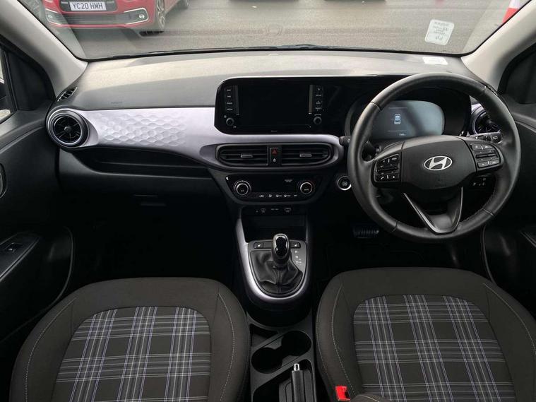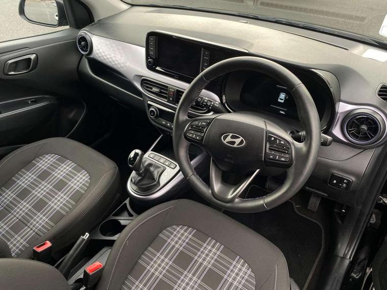 Apple car play/Android Auto, Bluelink mobile remote connectivity, Bluetooth connectivity with voice recognition, Cruise control, Driver attention alert system, eCall emergency call system, Forward Collision-Avoidance Assist (FCA) - Pedestrian/Cyclist, Front USB-C charging and USB-A data, Full-width 4.2" LCD instrument cluster, Intelligent speed limit assist, Lane departure warning system with lane keep assist - LKAS, Lane follow assist, PAS, Rear parking sensors, Rear view camera with guidelines, Roadside assistance, Start/Stop function, Tailgate, Trip computer, Wireless charging pad, 2 front/2 rear speakers, Rear USB-C device charger, Steering wheel audio, phone and cruise controls, 1 speed non intermittent rear windscreen wiper, Black finish on B pillars, Body colour door handles, Body coloured bumpers, Body coloured door mirrors, Electric folding door mirrors, Electric front windows, Electric rear windows, Electrically adjustable and heated door mirrors, Flat metal emblem, Front fog lights, Front grille in glossy black, Front intermittent wipers, Halogen bi-function headlights, Headlights inner with Black Blade design, Heated rear window, High beam assist, Indicator light on door mirrors, LED DRLs diamond mesh design, Privacy glass - Rear windows and tailgate, Rear roof spoiler with integrated LED brake light, Rear side wing doors, 12v power outlet - front, 3 seat bench in 2nd row, 60/40 split folding flat to floor rear seats, Air conditioning, Auto light control, Bottle holders in front/rear doors + front centre console, Cabin and luggage compartment interior lighting, Cloth upholstery, Driver + passenger vanity mirrors, Driver's seat height adjustment, Driver/passenger sunvisors with ticket holders, Floor mats, Front door pockets, Front Head Restraints - Vertical and Horizontal Adjustment, Front LED blue mood lighting, Glove compartment, Heated front seats, Heated steering wheel, Height adjustable steering column, Isofix child seat preparation, Leather multifunction steering wheel, Rear door pockets, Single front passenger seat, Vertical adjustment rear head restraints, 3x3 point rear seatbelts, Airbags - front, front side and curtain airbags, Anti-lock brake system (ABS), Autonomous emergency braking (AEB) with forward collision warning system, Brake assist function, Childproof rear door locks, Electronic stability control, Front and rear seatbelt reminder, Front seatbelt pretensioners, Hill start assist control (HAC), Passenger airbag deactivate switch, Traction control, Tyre pressure monitoring system, Immobiliser, Perimeter alarm, Rear occupant alert, Remote central locking, Second remote key, Smart key with motion sensor, Speed sensitive auto door locking, 16" alloy wheels, Tyre repair kit,