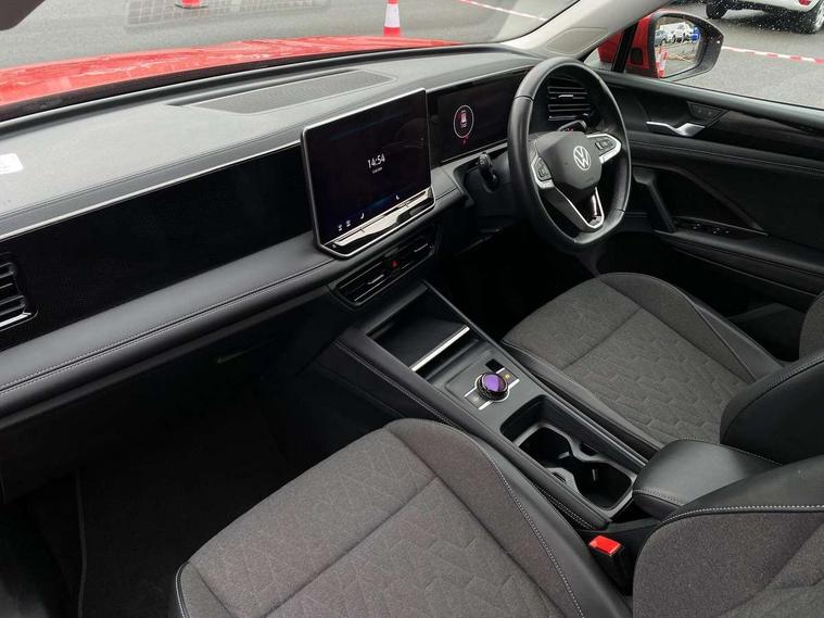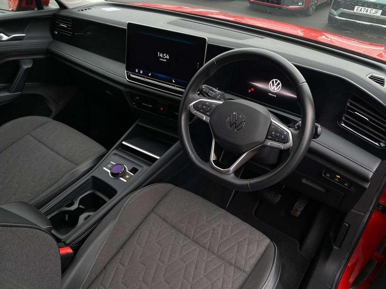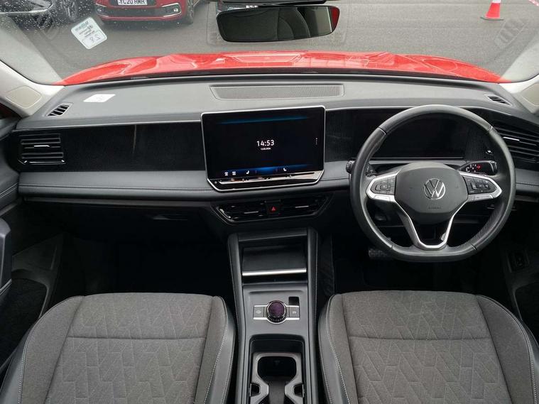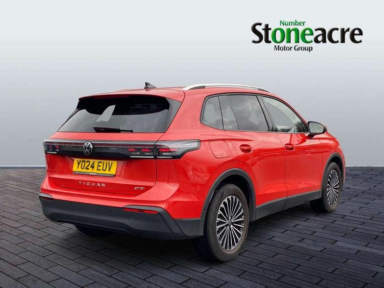 Adaptive cruise control (ACC), Advanced driver attention and drowsiness monitor, Bluetooth mobile phone interface, Car2X technology, Digital Cockpit Pro - 10.25" high resolution dash display screen with customisable menus and information, Dynamic road sign display, E-Sim card for online connectivity, eCall emergency call service, Front Assist - Autonomous emergency braking with pedestrian and cyclist monitoring, Lane change system, Side assist, Rear traffic alert and Exit warning system, Lane keeping system Lane Assist, Multifunction front facing camera, Oncoming vehicle braking when turning including swerve support, Park assistance plus with front and rear parking sensors, Power assisted steering with speed sensitive, Start/stop system with regenerative braking, Warning signal and warning light for front and rear seatbelts not fastened, Wireless App-Connect, Front wheel drive, Digital radio reception (DAB), Diversity antenna for FM reception, Ambient lighting with logo projection, Auto dimming interior rear view mirror, Automatic headlight control system, Body coloured bumpers and air intake with chrome trim, Body coloured door handles, Body-coloured exterior mirror housings, Coming/leaving home lighting function, Heat insulating glass in side and rear windows, Heat insulating windshield, Heated rear window, High level 3rd brake light, Illuminated door handle recesses, Illuminated lightline between headlamps, Rain sensor windscreen wipers, Rear fog light on one side, reversing light on both sides, Rear side wing doors, Rear wiper, 12V outlet in center console rear and in luggage compartment, 12V socket in centre console, 3 bench rear seats in 2nd row, Air care climatronic 3 zone air conditioning system with rear air conditioning control panel, Carpet mats, front and rear, Centre console with illuminated storage compartment with sliding cover and two drinks holders, Ceramique headlining, Door and side trim panel in foam film and woven fabric, Front centre armrest, ISOFIX anchors for child seats on outer rear seats and front passenger seat compatible with i-Size, Mechanical rear seat release, Power adjustable lumbar support in front, Rear bench seat, split folding, longitudinally movable and folding with load-through hatch and centre armrest, Safety optimised front head restraints, Single front passenger seat, Sun visors with illuminated vanity mirrors, Three rear head restraints, Variable luggage compartment floor, Comfort package with park assist plus and Safelock - Tiguan, Design package - Tiguan, 3 point seat belt for centre rear seats, 3 Point seat belts in front with pretensioners, 3 point seatbelts in outer rear with ECE label, Driver and front passenger airbag with front passenger airbag deactivation, Electronic parking brake with auto hold, Front and rear curtain airbags, Front and rear side airbags, Front centre airbag, Front disc brakes, Manual child proof rear door locks, Rear disc brakes, Two tone horn, Warning triangle, Anti theft wheel bolts, Soul instrument panel,