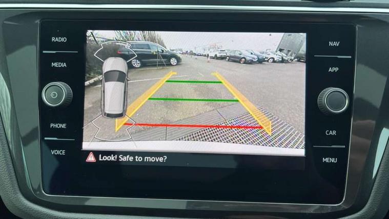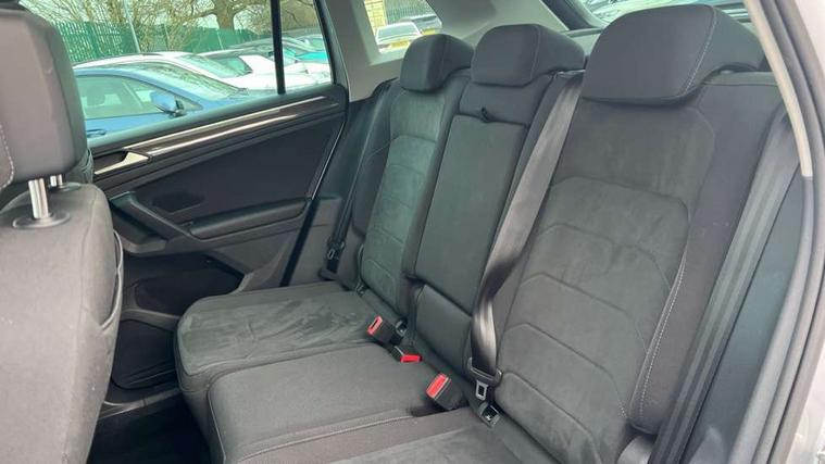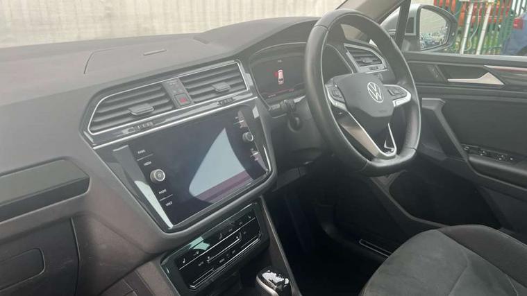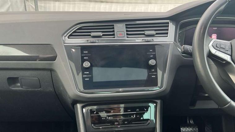 Adaptive cruise control ACC stop and go including speed limiter, App-Connect incl. App-Connect Wireless for Apple CarPlay and Android Auto, Bluetooth phone integration system, Distance control assist, Driver alert system, Driver profile selection, Dynamic road sign display, eCall emergency call system, Electromechanical speed sensitive power steering, Engine start/stop button, Lane keeping system Lane Assist, Lights on warning, Motorised electric tailgate operated via key fob, drivers door and foot movement under tailgate, Multifunction front facing camera, Outside temperature display, Premium multifunction display with multi colour display, Remote control boot opening, Rev counter, Revision / skills operating concept travel assistant, Service interval indicator, Speed limit display, Start/stop system with regenerative braking, Tailgate/trunk lid unlocking from outside, Trip computer, Warning sound and light for doors and tailgate open, Battery regeneration during braking, XDS electronic differential lock for improved traction and handling, 4 X 20 watt output, 8 Speakers, Diversity antenna for FM reception, Radio, SD card slot, Simultaneous pairing of 2 compatible mobile devices, SMS functionality - read, compose and send SMS messages using touch-screen display, Title and cover art display, USB C ports, Aluminium door sill protectors, Auto dimming interior rear view mirror, Automatic headlight control system, Body colour door handles, Body coloured bumpers, Body coloured door mirrors with integrated indicators, Coming/leaving home lighting function, Dynamic headlight range control, Front and rear electric windows, Heated rear window, High level 3rd brake light, IQ light-Adv high beam, Dynamic light assist for LED matrix headlamp+LED separate DRL+DCL, dark red rear LED tech, Poor weather light+ cornering light, Laminated safety glass windshield, heat and sound insulating, LED rear number plate lights, Poor weather light and cornering light, Privacy glass for rear side windows and rear window, Rain sensor windscreen wipers, Rear exhaust tailpipe, Rear fog lamp, Rear side wing doors, Rear windscreen washer and wiper with interval delay, Side and rear windows in heat insulating glass, Tilting and sliding panoramic sunroof with rear panoramic sunroof, Trailer Stability Programme, Windscreen wipers/ intermittent wipe + 4 position delay, 12V outlet in center console rear and in luggage compartment, 12V outlet in front and tray, 2 cup holders in front, 2 LED front reading lights, 2 LED rear reading lights, 3 bench rear seats in 2nd row, 3 rear headrests, 4 load lashing points, 40:20:40 split folding rear seats, Air Care Climatronic 3 zone automatic climate control with enhanced air filter and controls in the rear, Backrest release for left front seat, Climate control unit rear with touch function, Door and side trim panel in foam film and woven fabric, Front centre armrest, Front footwell illumination, Front seats head restraints (x-adjustment), Height adjustable front seats, Height/reach adjust steering wheel, Instrument lighting white adjustable panel illumination, Interior light with delay, Isofix Preparation 2 Rear child seats, Leather gear knob, Lockable cooled glovebox, Luggage compartment lighting, Luggage net, Rear bench seat asymetrically split folding, longitudinally movable and folding with load-through hatch and center armrest, Remote unlocking for rear seat backrest, Removable luggage cover, Removable rear headrests, Safety optimised front head restraints, Single front passenger seat, Sliding/reclining rear seats, Standard rear seat release, Storage compartment in driver's door, Storage compartment in passenger's door, Storage compartment in rear doors, Storage compartments in luggage area left and right, Storage tray on dashboard, Sun visors with illuminated vanity mirrors, Top front comfort seats, Variable boot floor, height adjustable and removable, Easy open and close pack with safelock - Tiguan, 3 point seat belt for centre rear seats, 3 point seat belts with seat belt pretensioners for the outer rear seats, Active bonnet, Curtain airbags for front and rear passengers, Driver/Front Passenger airbags, Drivers knee airbag, Electronic parking brake with auto hold, Electronic Stability Control with driver steering recommendation, ABS, ASR, EDL, EDTC and trailer stabilization, Front assist with autonomous emergency braking (for Adaptive Cruise Control ACC up to 130 mph), Front disc brakes, Front passenger airbag deactivation, Front side airbags, Height adjustable front 3 point seatbelts + pretensioners, Hill hold control, Manual child proof rear door locks, Pedestrian monitoring system, Power assisted brakes, Proactive passenger protection system in combination with front assist, Rear disc brakes, Rigid safety cell with front and rear crumple zones, Two tone horn, Warning sound and light for front seat belts if unfastened, Anti theft alarm system with interior monitoring, backup horn and towing protection, Anti theft wheel bolts, Central locking system with safelock radio remote control and 2 remote control folding keys, Electronic engine immobiliser, Tool kit,