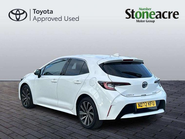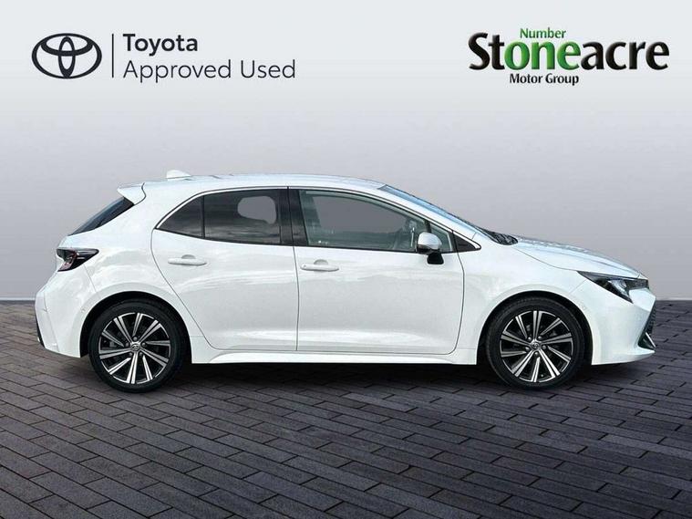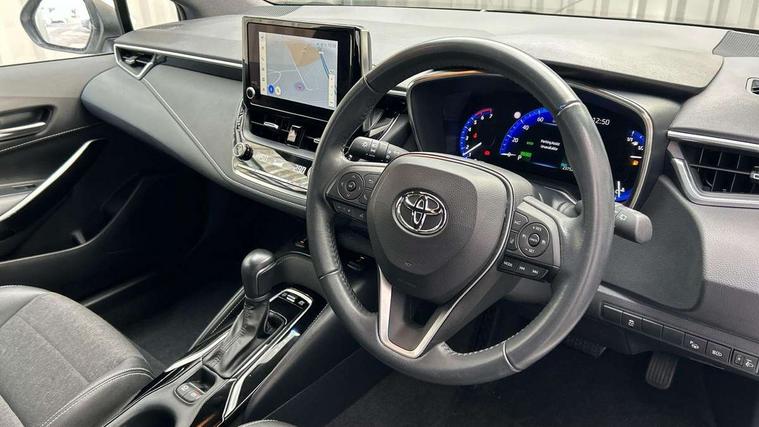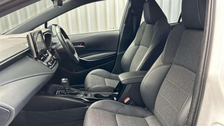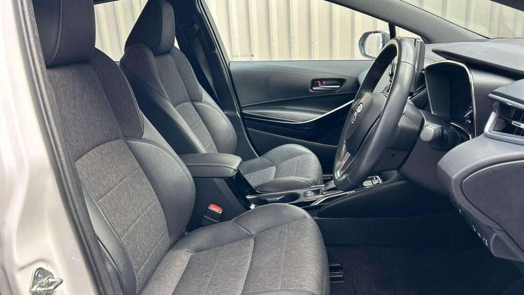 7" Multi information display screen, Bluetooth telephone connectivity, Connected car functionality upgrade, tracker, remote status and e-care, Door trim and centre console material, Dynamic radar cruise control (with RSA) including switch on steering wheel, E-call, Electrically assisted power steering, EV drive indicator, Intelligent park assist, Lane Departure Alert (LDA) switch on steering wheel, Memory on adjustable speed limiter, Push button start, Reversing camera, Smartphone integration with Apple CarPlay and Android auto, Gasoline particulate filter, Vehicle Stability Control (VSC), 6 speakers, 8" Touchscreen with MM19 Multimedia system and voice recognition, AM/FM radio, DAB Digital radio, Toyota touch 2 with go navigation system, USB and Aux in connectors + 12V front outlet, Anti-jam protection on power windows, Auto dimming inside rear view mirror, Auto up and down function on all power windows, Automatic folding mirrors, Automatic headlights with high beam assist, Black metallic surround on lower front grille, Black toyota logo in front, Black window frames, Body colour rear spoiler, Body coloured bumpers, Body coloured door mirrors, Body coloured outside door handles, Follow me home headlights, LED daytime running lights, LED front fog lights, LED Headlights, LED High mounted stop light, LED rear combi lights with LED lightguide, Power adjustable heated door mirrors, Power front windows, Power rear windows, Privacy glass, Rain sensing wipers, Rear side wing doors, Rear window defogger, Rear window wiper, Reverse tilting door mirrors, Shark fin antenna, Time adjustment on intermittent wiper, Turning signal integrated indicators in door mirrors, Unique lower skirt, Unique side rocker with black insert, UV-filter on driver and passenger windows, 3 rear headrests, 3 seat bench in 2nd row, 3 spoke leather steering wheel + gear knob, 60/40 split folding rear seat, Adjustable speed limiter switch on steering wheel, Audio, multimedia and telephone switches on steering wheel, Blue ambient interior illumination to centre tray, front cup holders and front door trim, Boot light, Centre room light, Clean air filter, Driver and front passenger personal light, Driver and passenger assist grip, Driver and passenger sun visor with mirror and light, Dual zone automatic air conditioning with ECO mode switch, Fabric/synthetic leather upholstery, Front and rear cup and bottle holders, Front door pockets, Front head restraints, Front passenger seat, Heated driver and front passenger seats, Illuminated entry system in room lamp, ISOFIX seat fixing (2 fixings on rear outer seats), Leather gear shift with satin chrome on gear shift console, Leather style armrests, Manual height adjustable for driver and front passenger seat, Parcel shelf, Passenger seat back pocket, Pollen filter, Power adjustable lumbar support on driver seat, Power window switches with satin chrome inserts, Rear armrest with 2 cupholders, Rear passenger coat hooks (2), Satin chrome inside door handles, Shopping bag hooks in luggage compartment, Sliding armrest on centre console box, Slow opening glovebox with lights, Tilt/telescopic steering column, Voice recognition switch on steering wheel, Whiplash Injury Lessening (WIL) feature (active headrest) for seats, Parking pack - Corolla, Toyota safety sense 2 pack - Corolla, 3x3 point rear seatbelts, Adjustable driver and front passenger seat belt extender to top anchor point, Anti lock braking system + Electronic brake force distribution, Brake assist function, Child locks on rear doors, Downhill Assist Control (DAC), Electronic parking brake, Emergency brake light signal (EBS), Front passenger airbag on/off switch, Front seatbelt reminder, HAC - Hill start assist control, Rear seat belt reminder, Seatbelt pretensioners and force limiters, Supplemental restraint system (SRS) 7 airbags - dual driver, dual side curtain, side impact and driver knee airbags, Traction control, Tyre pressure warning system, Acoustic vehicle alert system (AVAS), Alarm with motion sensor and immobilizer, Remote central locking + deadlocks, Smart entry, Satin chrome dash trim, Soft touch texture on upper dashboard, Unique wheel finish with red wheel cap,