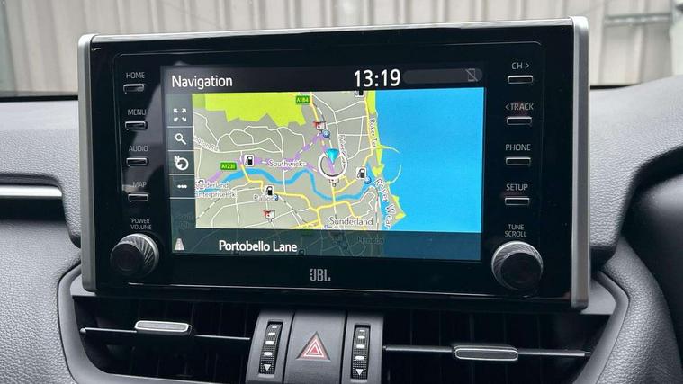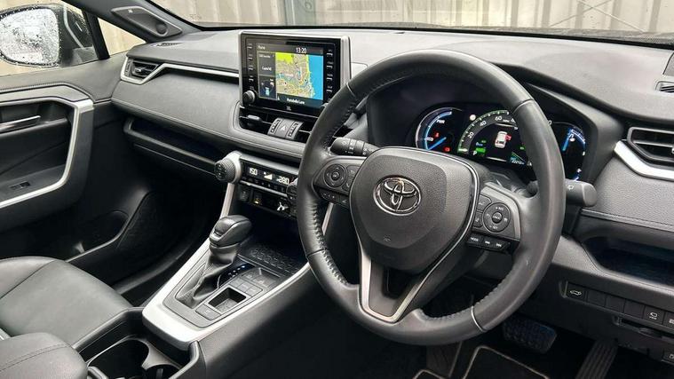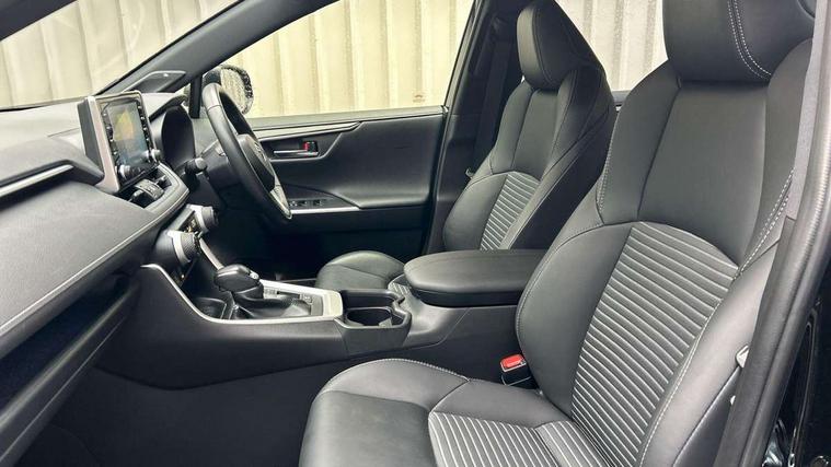 Piano black centre console with silver insert, Soft-touch black lower dashboard, Soft-touch black upper dashboard with silver insert, 19" 10 spoke black alloy wheels, Tyre repair kit, Glass-breaking alarm sensors, Immobiliser, Intrusion alarm, Light - on and Key in reminder, Motion sensor alarm, Remote central locking, Smart entry + Smart start, Speed sensitive auto door locking, Tilt detection sensors, 8" Multimedia display touch screen, Auxiliary socket for external MP3 player, DAB audio, JBL premium sound system with 9 speakers, 800W amplifier, 2 tweeters, 4 wide dispersion and 2 full range speakers, subwoofer, panoramic view monitor, Toyota touch media system, USB connection, 3x3 point rear seatbelts, ABS/EBD, Acoustic vehicle alerting system, Adjustable front driver and passenger seat belt extender, Brake assist function, Brake hold function, Child proof door locks, Collision mitigation braking system, Driver/Front Passenger airbags, Driver/front passenger side airbags, Drivers knee airbag, Electronic parking brake, Electronic Stability Programme (ESP), Front and rear curtain airbags, Front and rear seatbelt reminder, Front passenger airbag detector, Hill start assist, Pedestrian detection, Pre collision system, Seatbelt pretensioners with load limiters, Toyota safety sense, Traction control, Tyre pressure warning, Adaptive automatic high beam, Automatic headlamp levelling, Automatic headlights, Automatic wipers, Automatically retractable door mirrors, Black front under-run, Black painted rear Garnish, Black radiator grille, Black rear under-run, Black roof rails, Body colour door handles, Body colour rear spoiler, Body colour roof, Body coloured Shark-fin antenna, Door mirror puddle lights, Dual exhaust pipes, Electric adjustable door mirrors, Electrochromatic rear view mirror, Emergency brake-light signal (EBS), Follow me home headlights, Front and rear black skid plates, Front fog lights, Glass black protection moulding on side doors, Gloss black door mirrors, Gloss black front and rear bumper, Heated door mirrors, LED daytime running lights, LED High mounted stop lamp, LED rear combination lights, Metallic paint, Power front windows, Power rear windows, Privacy glass, Projector LED headlights, Rear screen wiper - intermittent, Rear windscreen defogger, Trailer Sway Control, Turning signal integrated indicators in door mirrors, 3 rear headrests, 60/40 split fold rear seat back, Black roof lining, Boot light, Clean air filter, Driver and front passenger personal light, Driver and front passenger Whiplash Injury Lessening seats, Driver and passenger sunvisors with illuminated vanity mirrors, Dual sided deck board in boot, Dual zone automatic air conditioning, Dynamic sports seats, Floor mats, Folding rear centre armrest, Front and rear bottle holders, Front centre armrest, Front footwell lights, Front headrests, Front seat and rear pockets, Front/rear roof mounted assist grips, Heated driver and front passenger seats, Illuminated entry system, Isofix child seat preparation, Leather gear shift with chrome surround, Light blue ambient lighting on front cupholders and open tray, Manual telescopic and tilt 3-spoke leather steering wheel with Chrome insert, Manually reclining and sliding front passenger seat, Multimedia switches on steering wheel, Pollen filter, Power height-adjustable sliding reclining and lumbar support for driver seat, Rear coat hooks, Rear door armrests, Rear passenger air vents, Rear view display in display audio screen with dynamic guide lines, Reclining rear seats, Satin chrome interior door handles, Synthetic leather upholstery, Telephone and voice recognition switches on steering wheel, 7" TFT multi information display, Analog tachometer, Apple car play and Android auto, Blind spot monitoring with rear cross traffic alert, Bluetooth system, Cyclist Detection, Drive mode selector, eCall emergency call system, ECO-driving indicator, Electric power steering, EV audible alert, Full range intelligent adaptive cruise control, Hybrid system indicator, Intelligent front parking sensors with clearance sonar and automatic braking, Intelligent rear parking sensors with clearance sonar and automatic braking, Lane departure warning system, Lane trace assist, Lights on warning, Memory on adjustable speed limiter, My T Connected services, Night Time Pedestrian Detection, Power boot opening and closing, Push button start, Rear parking camera, Remote boot door release in cabin, Remote boot door release in key, Road sign assist - RSA, Touch 2 Go navigation system including 3D maps and voice control, Traffic sign recognition, Trip computer, Voice control system, Vehicle Stability Control (VSC),