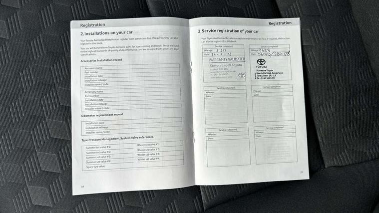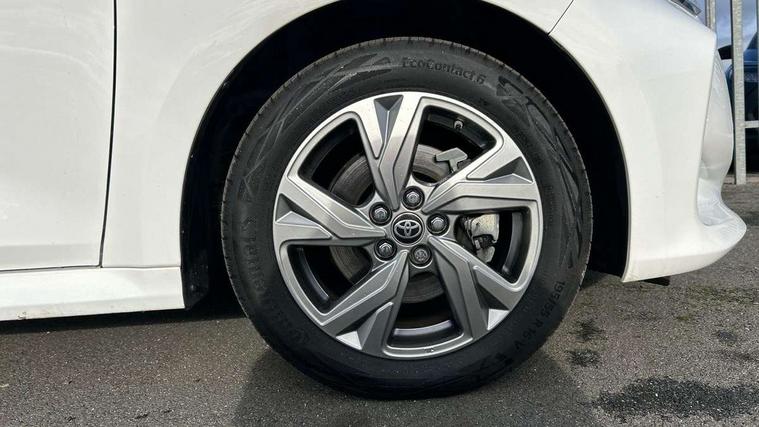4.2" coloured TFT multi information display with analogue speedometer, Adaptive cruise control, Adjustable speed limit with speed warning, Bluetooth connectivity, E-call, Electric power steering, Hybrid energy display, Multi information display switches on steering wheel, Reversing camera, Smartphone integration with Apple CarPlay and Android auto, Smartphone integration with Apple CarPlay/Android Auto, Tailgate, Voice recognition, Vehicle Stability Control (VSC), 4 speakers, 9" Multimedia touch display, Toyota Touch 3 system with DAB radio, USB connection, Acoustic windscreen glass, Auto windscreen wipers, Automatic headlights, Body coloured door mirrors, Bulb indicators, Chequered front grille, Daytime running lights, Electric adjustable heated door mirrors, Follow me home headlights, Front auto power windows with anti jam protection, Front halogen fog lights, Halogen projector headlights, LED High mounted stop lamp, Manual headlight levelling, Rain sensor, Rear auto power windows with anti jam protection, Rear side wing doors, Rear spoiler, Rear wiper, Shark fin antenna, Turning signal integrated indicators in door mirrors, Variable front intermittent wipers, 3 adjustable rear headrests, 3 seat bench in 2nd row, 3 spoke leather steering wheel, 60/40 split folding rear seat, Active headrests, Adjustable boot height, Auto air conditioning, Coat hooks in rear grab handles, Cup holders (2 front & door), Data Communication Module (DCM) connected services, Fabric upholstery, Front armrest, Glovebox, Grey roof lining, Height adjustable driver's seat, Isofix seat fixing, Leather gearshift, Pollen filter, Shopping bag hooks, Single front passenger seat, Tilt/telescopic steering column, 3 point seatbelts on all rear seats, ABS+EBD+Brake assist, Electronic parking brake, Emergency brake light system (EBS), Front passenger airbag on/off switch, Front seatbelt reminder, Hill start assist control (HAC), Rear child proof door locks, Rear seat belt reminder, Supplemental Restraint System (SRS) 8 airbags: Driver & passenger's airbags, dual side curtain airbags, side impact airbags, front centre airbag, Toyota Safety Sense 3 with over the air updates, Tyre pressure warning system, 2x Master key, Alarm/immobiliser, Remote powered central double locking doors, Soft touch instrument panel, Space saver spare wheel,