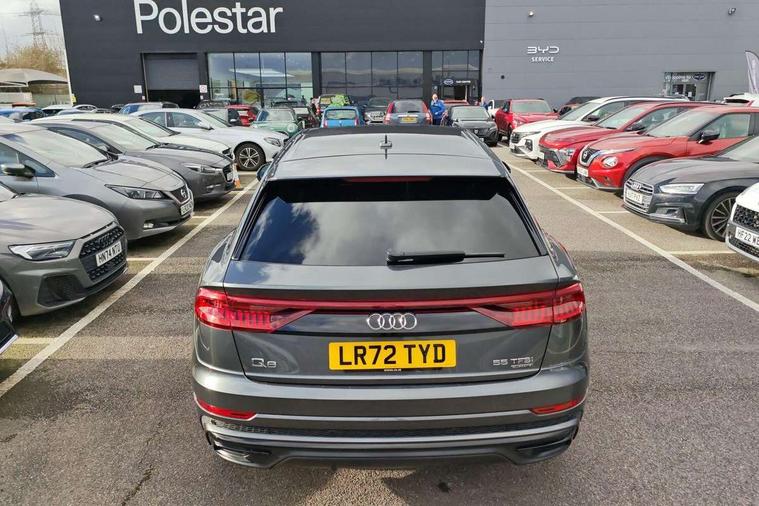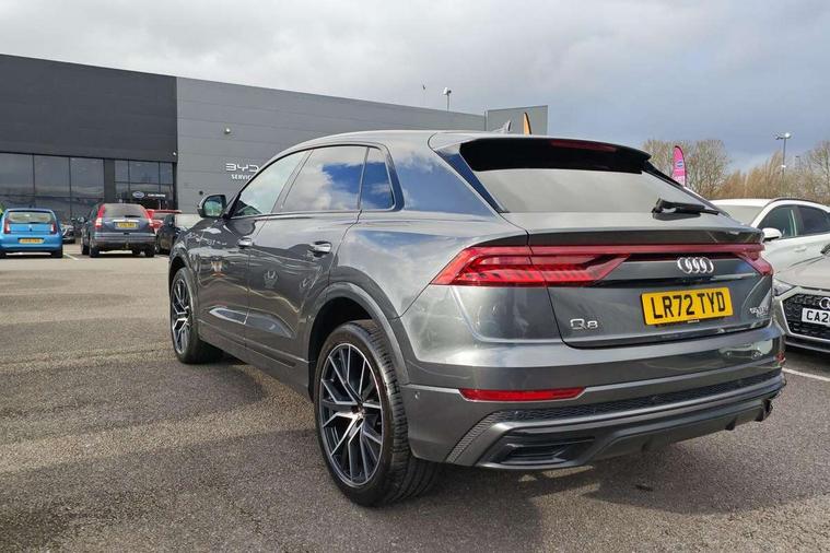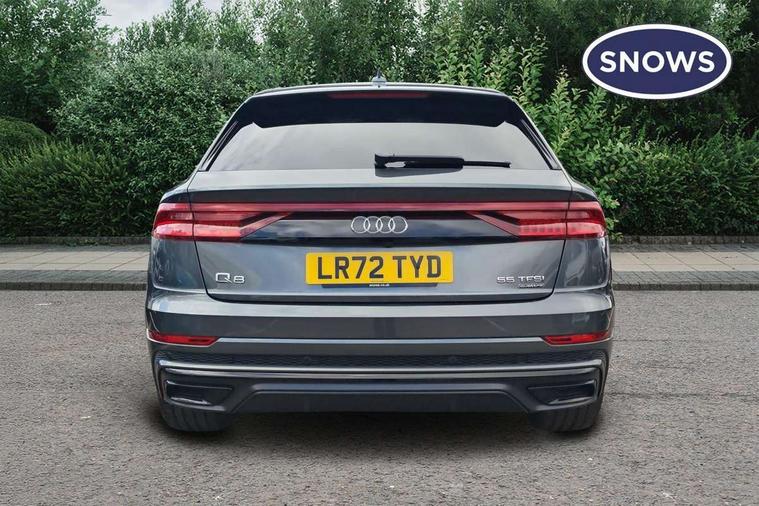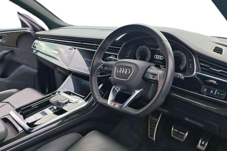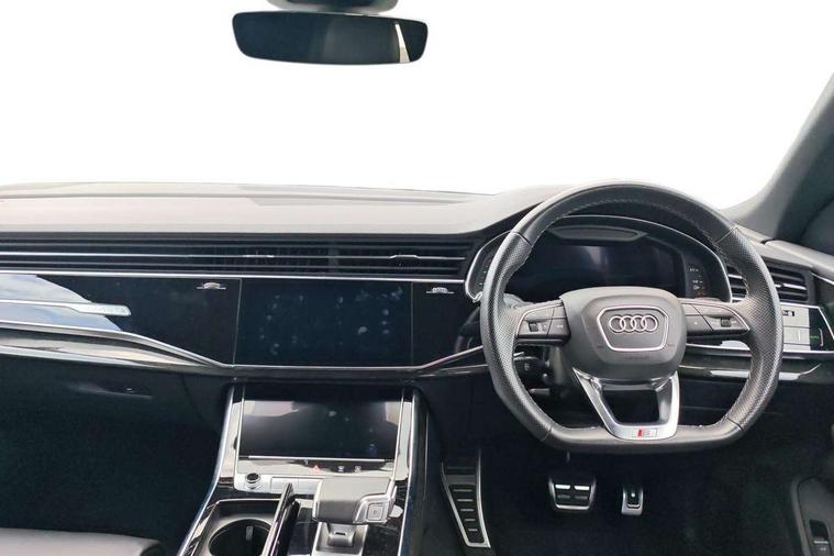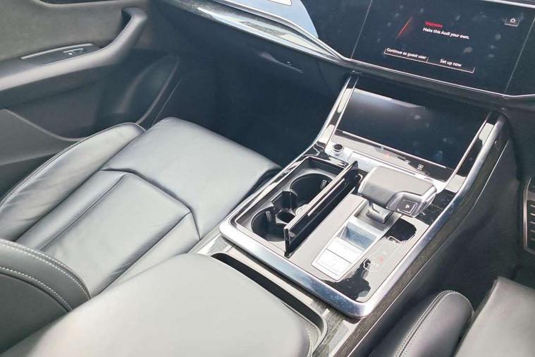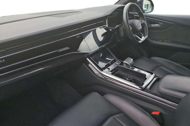 10.1" and 8.6" Dual colour touchscreens, Audi connect safety and service (e-call), Audi connect with Amazon Alexa Integration, Audi drive select, Audi parking system plus includes 360 degree display with front and rear sensors, Audi virtual cockpit - 12.3" high resolution LCD display with fully customisable instrument cluster, Automatic start/stop system, Electro-mechanical PAS, Low washer fluid indicator, MMI - Multi Media Interface control system, MMI navigation plus with MMI touch, Natural voice recognition, On board computer, Operating buttons in black, glass look with haptic feedback, Power operated tailgate, Rear view camera, Service interval indicator, Smartphone interface includes wireless Apple carplay/Android Auto, 48V Mild hybrid technology, 85 litre fuel tank, Adaptive sport air suspension, Quattro all wheel drive with self locking centre differential, Audi music interface with 2 USB ports with charge and data functions, Audi sound system with 6 channel amplifier, 180 watt amplifying capacity and 10 loudspeakers including subwoofer, Aux-in socket, DAB Digital radio, 3rd brake light, Acoustic windscreen, Audi HD Matrix LED headlights with dynamic front and rear indicators, Auto dimming frameless rear view mirror, Coming/leaving home lighting function, Electric front+rear windows, Electrically folding auto dimming/adjustable/heated door mirrors with memory function, LED side indicators and kerb view function for passenger side, Headlight washers, Heat insulating glass in windshield, LED signature daytime running lights, Platinum grey front spoiler lip and diffuser insert, Privacy glass - dark tinted rear and rear side windows from B-pillar backwards, Rain and light sensors, Rear side wing doors, Rear wiper, 3 bench rear seats in 2nd row, 4 zone deluxe automatic climate control, 4-way lumbar support for front seats, 40:20:40 split folding rear bench seat, Black cloth headlining, Comfort front centre armrest, Driver seat memory function, Electrically adjustable front seats, Front head restraints, Front/rear floor mats, Heated front seats, ISOFIX child seat mounting for front passenger seat and 2 outer rear seats with top tether child seat mounting for all 3 rear seats, LED interior ambient lighting, Luggage compartment sill protection in stainless steel, Rear centre armrest with 2 cupholders, Rear headrests, Single front passenger seat, Stainless steel pedals, Sunvisors with illuminated vanity mirrors, Titanium Black Styling Pack - Q8, 3 point seatbelts on all seats, Audi pre sense front, Child locks on rear doors, Driver and front passenger, front side and curtain airbags, Electromechanical parking brake, Electronic Stability Control (ESC) including ABS, ASR and EDL, Front passenger airbag deactivation, Hill descent control, Hill hold assist, Predictive pedestrian protection, Seatbelt monitoring, Traction control, Tyre pressure loss indicator, Warning triangle and first aid kit, Anti theft alarm with tow away protection, Anti-theft wheel bolts and wheel loosening detection, Immobiliser, Keyless go with remote central locking, Polished oak trim with grey finish inlay, Tool kit, Tyre repair kit,