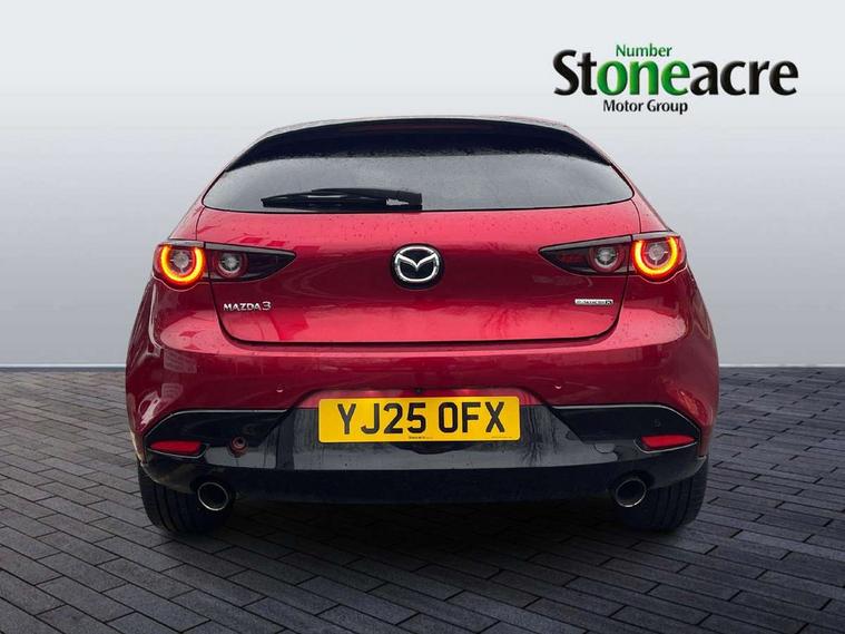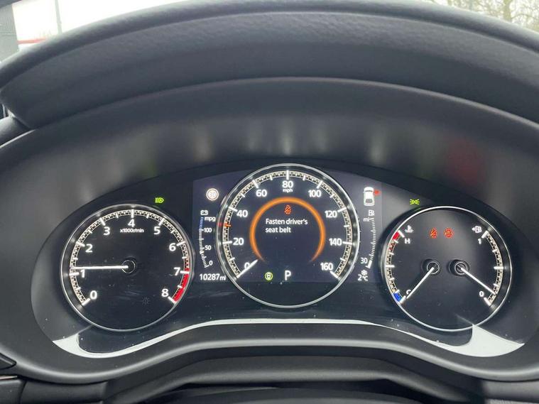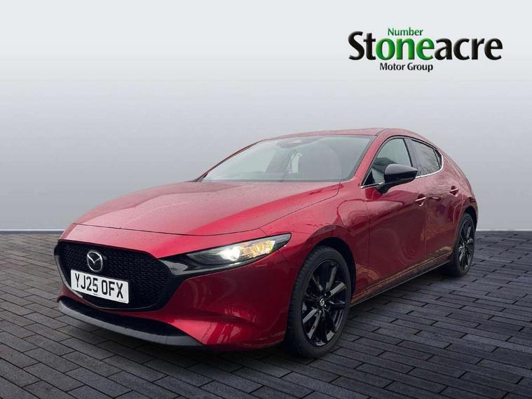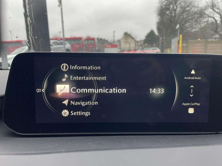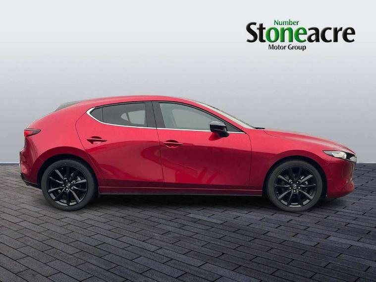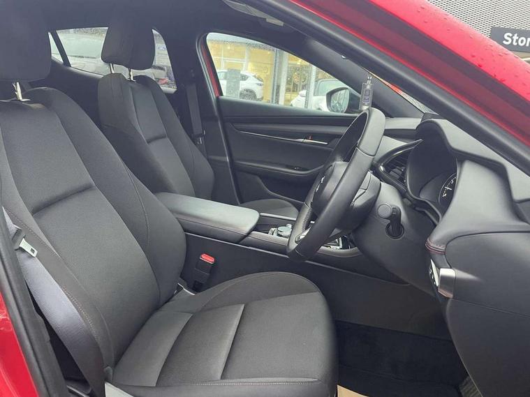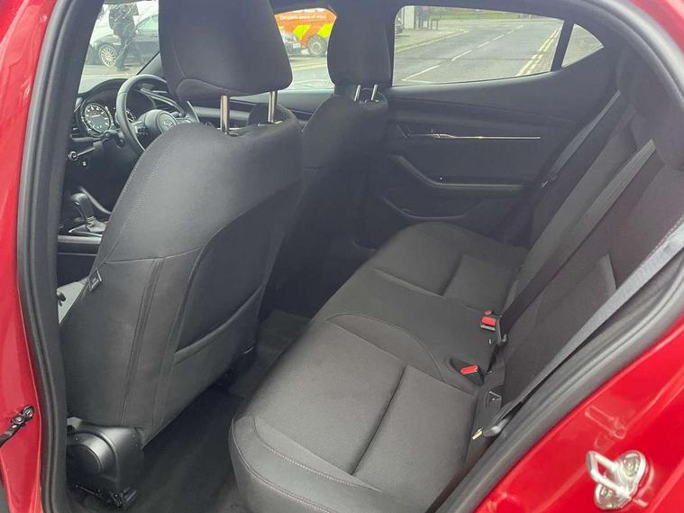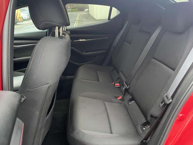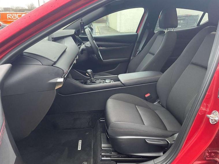 10.25" display with Mazda Connect infotainment, 7" colour TFT display, Adjustable speed limiter, Advanced E-call with GPS, Alexa in-car voice assistant, Audio transfer from bluetooth devices, Blind spot monitoring with rear cross traffic alert, Car finder, Colour active driving display inc Windscreen projected, Traffic Sign Recognition, turn-by- turn navigation and Mazda Radar Cruise Control information, Digital instrument cluster, Driver attention alert system, Emergency stop signalling system, Engine start/stop button, Front and rear parking sensor with audible and visual warning, Head up Display, Integrated bluetooth with steering wheel mounted controls, Intelligent speed assist, Lane keep assist system (LAS) with Lane departure warning system (LDWS), Mazda connected services, Mazda Navigation System with european mapping, Mazda Radar Cruise Control, Mobile App interface, Multimedia Commander, PAS, Qi wireless charging, Reversing camera, Service indicator, Tailgate, Traffic sign recognition (TSR), Trip computer, Wireless Apple CarPlay/Android Auto, i-stop, 2 USB-C ports in the front, Mazda Multimedia System with AM / FM / DAB radio with 8 speakers, Auto dimming rear view mirror, B-pillar garnish in piano black, Black door mirrors, Coming/leaving home lighting function, Dark metallic finish signature wing, Dual chrome tailpipes tip, Dusk sensing headlights, Electric front/rear windows with one touch/auto up/down, Electrically adjustable, heated auto power folding door mirrors, Front body coloured bumper with black lower bezel, Front kodo turn signal, Gloss black finish front grille, Gloss black rear roof spoiler, High beam control, LED daytime running lights, LED front fog lights, LED headlamps with auto levelling, LED indicator lights, LED rear combination lights, LED third brake light, Power tilt and slide sunroof, Rain sensing front wipers with adjustable sensitivity and speed, Rear colour coded bumper with gloss black lower moulding, Rear fog lights, Rear side wing doors, Speed adjustable rear wash wiper with intermittent wipe, 12v electrical power outlet, 3 seat bench in 2nd row, 60/40 split fold down rear seats, Black with red stiching steering wheel, gearshift gaitor, dashboard panel, armrest, Cloth upholstery, Dark cloth door panel inserts, Dark roof headlining, ceiling and pillars, Driver seat manual slide, recline, height and seat tilt adjust, Driver, front passenger and two rear door pockets, Driver, Front passenger and two rear grab handles with coathooks, Driver/passenger sunvisors + vanity mirrors (drivers side with ticket holder), Dual zone climate control air conditioning, Folding rear centre armrest with two cup holders, Front and rear courtesy lamps, Front armrest, Front centre storage with two cupholders, Front head restraints, Front passenger seatback pocket, Front passengers seat manual slide, recline and height adjustment, Gear shift drive selection switch sport mode, Heated front seats with 3 stage setting, Illuminated glovebox, Interior colouration dashboard and doorcards in black with dark stitching, ISOFIX child seat anchorage points attached on outer rear seats, Leather wrapped gear shift knob, Leather wrapped steering wheel, LED interior light, LED light in luggage compartment, Power outlet in luggage compartment, Roof mounted sunglasses holder, Single front passenger seat, Three height adjustable rear head restraints, Tilt/height adjustable steering wheel, 3 point ELR front seatbelts with pretensioners, 3 rear 3 point seatbelts with ELR, Anti-lock braking system (ABS), Drivers knee airbag, DSC - Dynamic Stability Control, Dual stage driver and single stage passenger airbags, EBD - Electronic brakeforce distribution, Electronic parking brake with auto disengage function and auto hold function, Front and rear curtain airbags, Front passenger airbag cut-off switch, Front side airbags, Front smart city brake support, G-Vectoring control plus, Hill launch assist, Intelligent Traction Control system, Manual child lock in rear doors, Mild Hybrid system with regenerative braking, Seatbelt reminder audible warning for driver, passenger and rear seats, Tyre pressure monitoring system (TPMS), Auto door lock when driving, Remote central locking + deadlocks, Smart keyless entry, Thatcham accredited alarm and immobiliser, 18" Black alloy wheels, Emergency tyre repair kit,