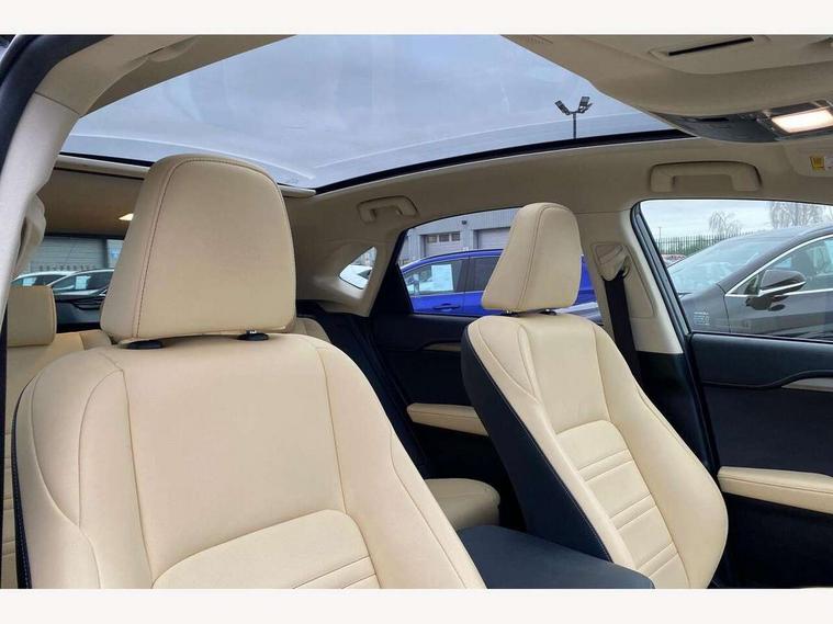 4 driving modes EV/Eco/Normal/Sport, 4 front and 4 rear park assist sensors, 8" display screen with remote touch interface, Analogue clock, Apple car play/Android Auto, Bluetooth telephone connectivity, Electric speed sensitive power steering, Lane change flasher function, Lexus link connected services with available optional wifi, Lexus navigation system, Push button starter, Reversing camera, All wheel drive system, Vehicle Dynamics Integrated Management (VDIM), Vehicle Stability Control (VSC), 2 USB ports, 8 Speakers, AUX socket with VTR compatibility, CD player, DAB Digital radio, Auto dimming interior rear view mirror, Bi LED headlight with Auto high beam, Body adhesive, laser screw welding and laser brazed roof structure, Front and rear one touch power windows, with anti-jam protection, Heated and auto folding door mirrors with turn indicators, Hidden exhaust pipe, LED brake lights and rear lights with emergency brake signal, LED daytime running lights, LED front and rear sequential indicators, Rain sensor windscreen wipers, Roof rails, 12V accessory port centre console and luggage compartment, 2 cupholders in front centre console, 2 map pockets in the rear, 2 x fixed shopping bag hooks in boot, 2 x sun visors with vanity mirror and lamp, 6 tie down hooks in boot, 60/40 split folding rear seat, 8 way driver/passenger electrically adjustable front seats, Adjustable rear seat backrest, Card holder installed in driver and passengers sun visors, Centre armrest with storage box, Dual climate control air conditioning system, Front and rear head restraints, Front and rear textile carpet mats, Heated front seats, Leather gear lever, Leather steering wheel with paddle shifts, LED interior illumination, Rear air vents, Rear centre armrest with 2 cupholders, Self charging hybrid, Tahara leather upholstery, Whiplash Injury Lessening (WIL) feature (active headrest) for seats, 2 x Isofix child rear seat restraints, 3 point ELR front seatbelts with pretensioners, 3x3 point rear seat belts, ABS, Adjustable seat belt anchor points, Driver and front passenger 2 stage airbag, Driver/front passenger side airbags, Drivers knee airbag, EBD + Brake Assist, ECB (Electronically Controlled Brake System), Electronic parking brake, Front and rear curtain shield airbags, Front passenger seat cushion airbag, Hill start assist, Hybrid automatic with 6 stage sequential shift and kick down switch, Lexus safety system - dynamic radar cruise control, pre collision system day and night, lane tracing assist, road sign, automatic high beam, OTA, Passenger airbag cut-off device, Traction control, Tyre pressure warning, 2 x remote key fobs, Anti-theft system with siren, alarm, intrusion sensor, glass breakage sensor, tilt sensor and engine immobiliser, Locking wheel nuts, Speed sensitive auto door locking, Two motion door lock with double lock, VIN Window etching, Silver inlays, Space saver spare wheel,